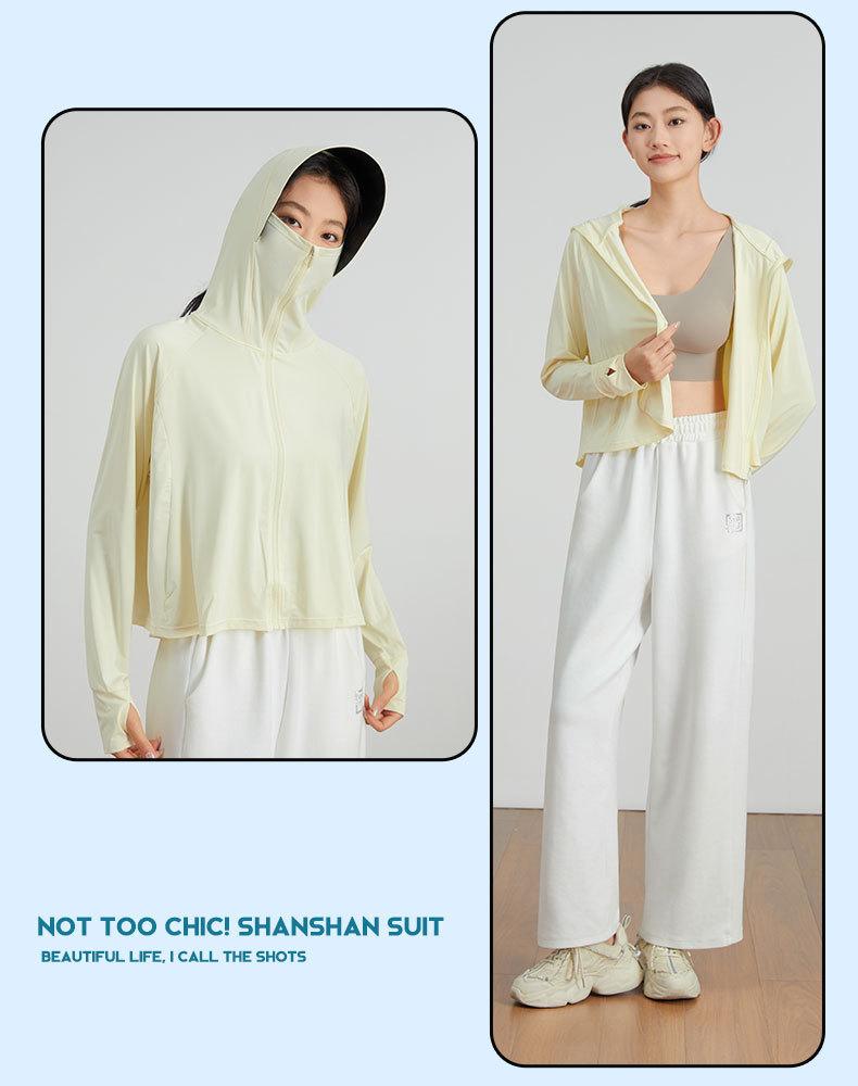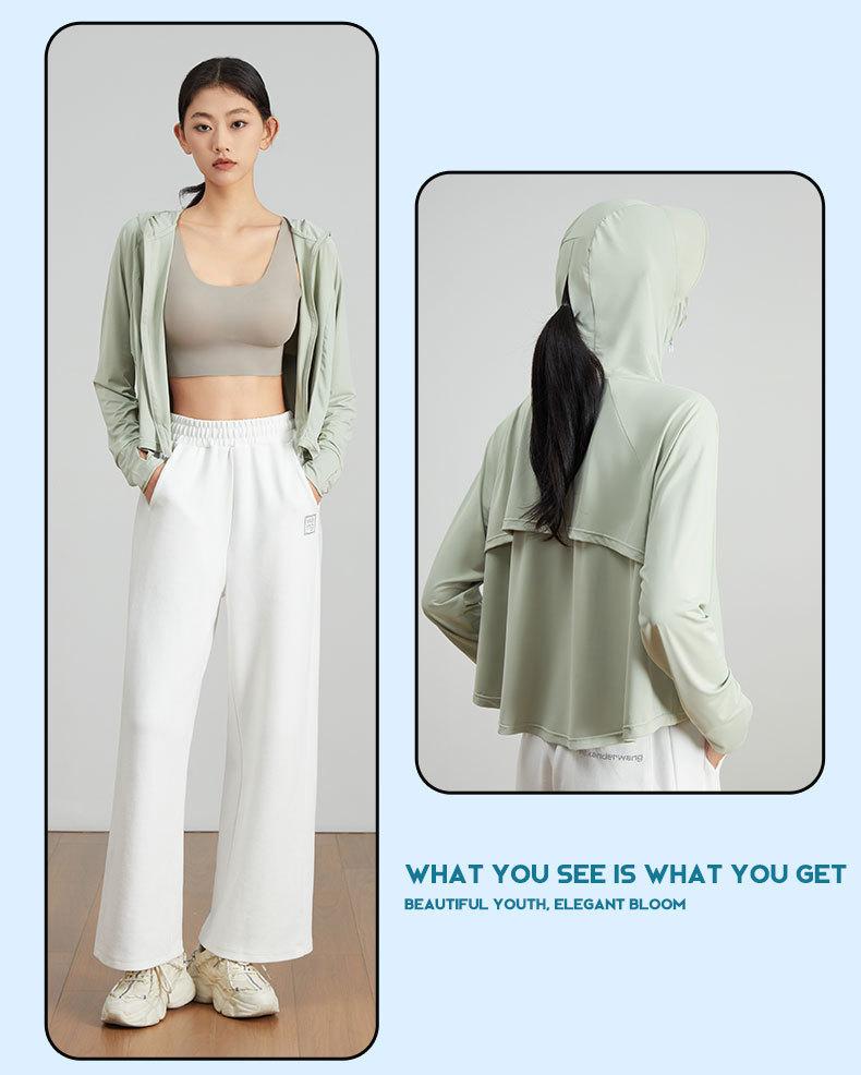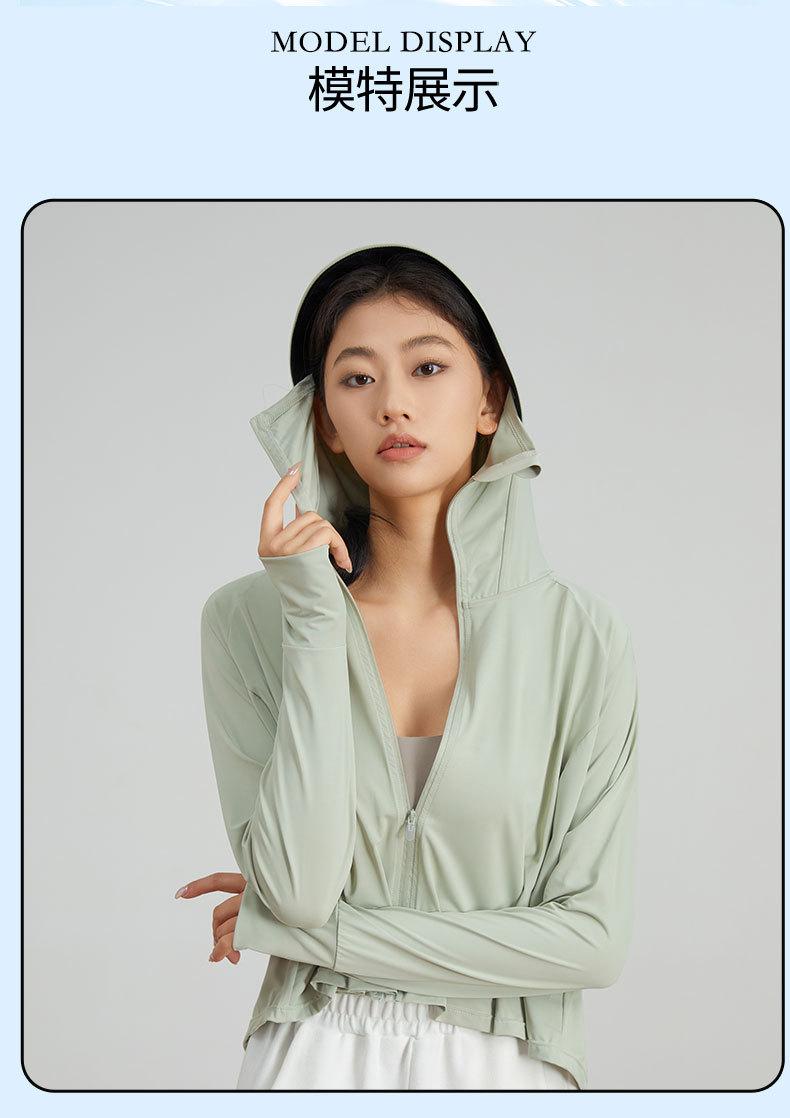 Ropa de protección solar para exteriores, ropa de verano para mujer con capucha de seda helada, protección solar UV, transpirable, ultrafina, abrigo de protección solar.