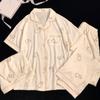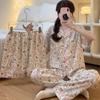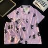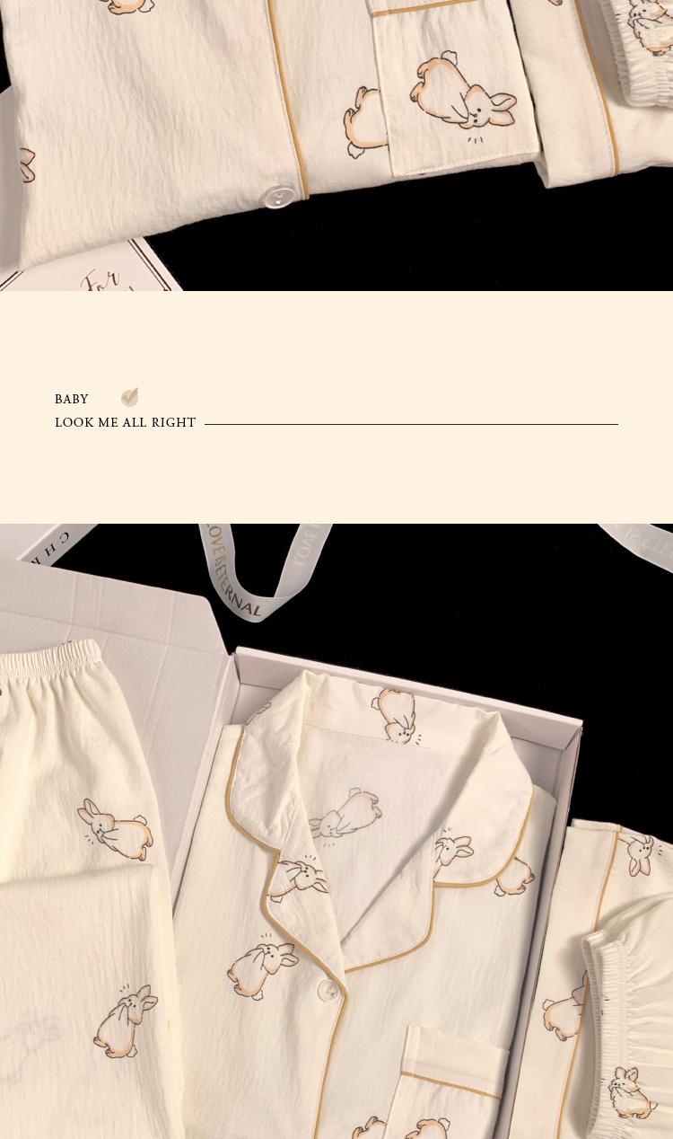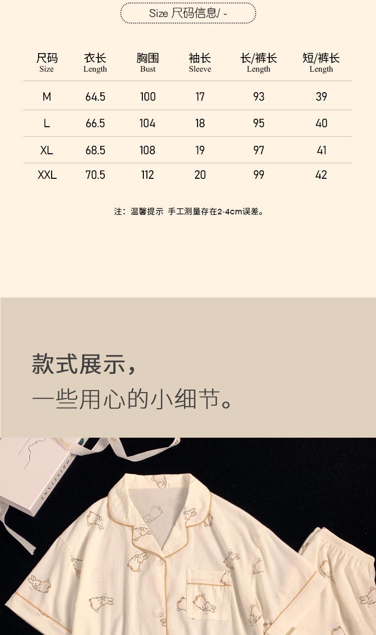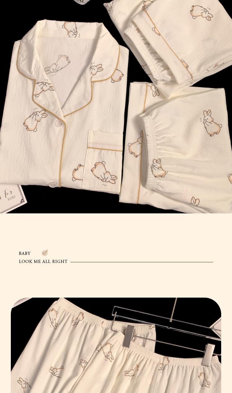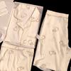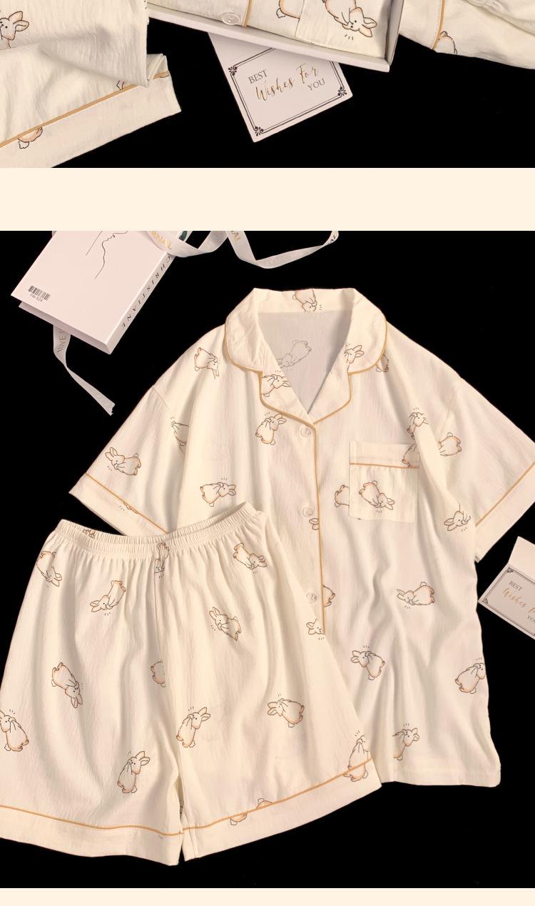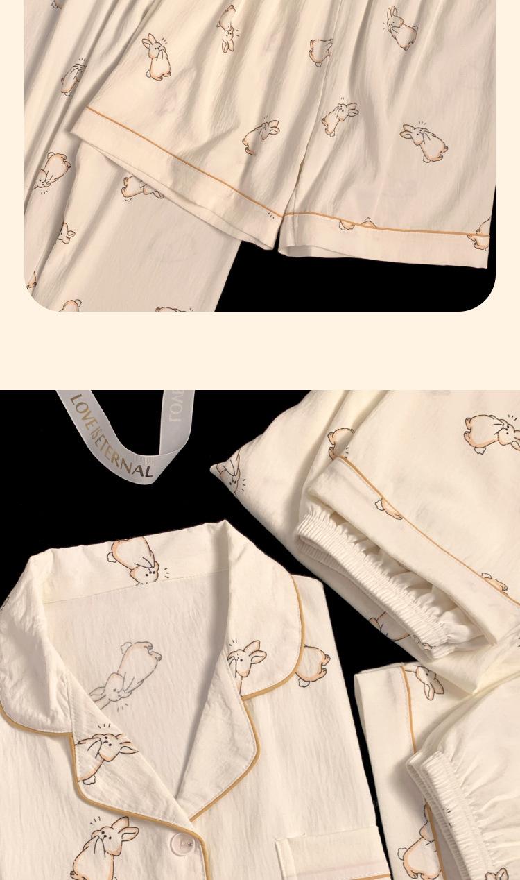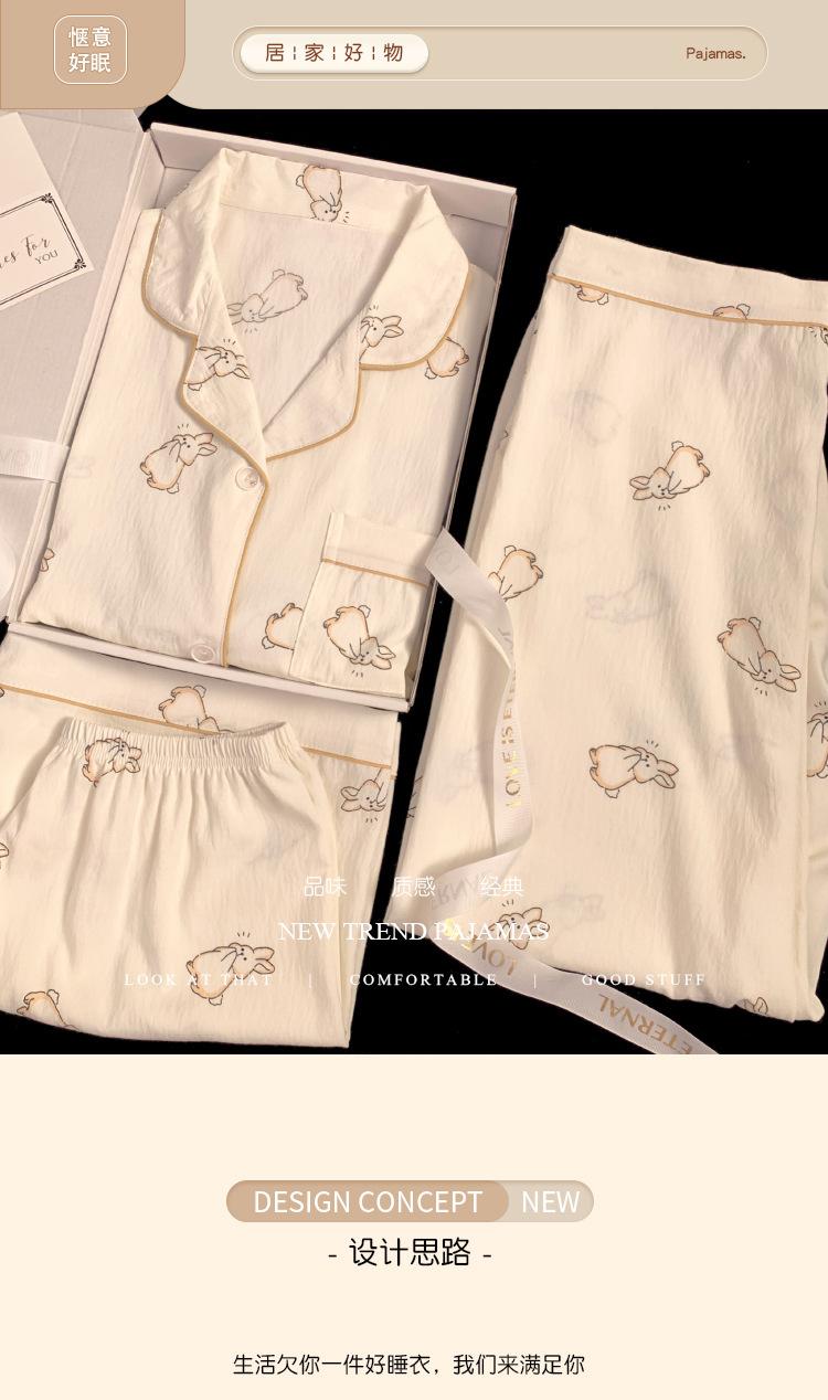 Pijamas con estampado de conejo sencillo coreano transfronterizo, primavera y verano, algodón de nube, de tres piezas, ropa de hogar perezosa de moda al por mayor