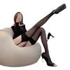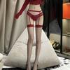 Medias de seda roja pura con tirantes sexys y calientes para mujer, con contraste de color, borde rojo, seda negra, pantimedias de seda ultrafinas y anti-gancho.