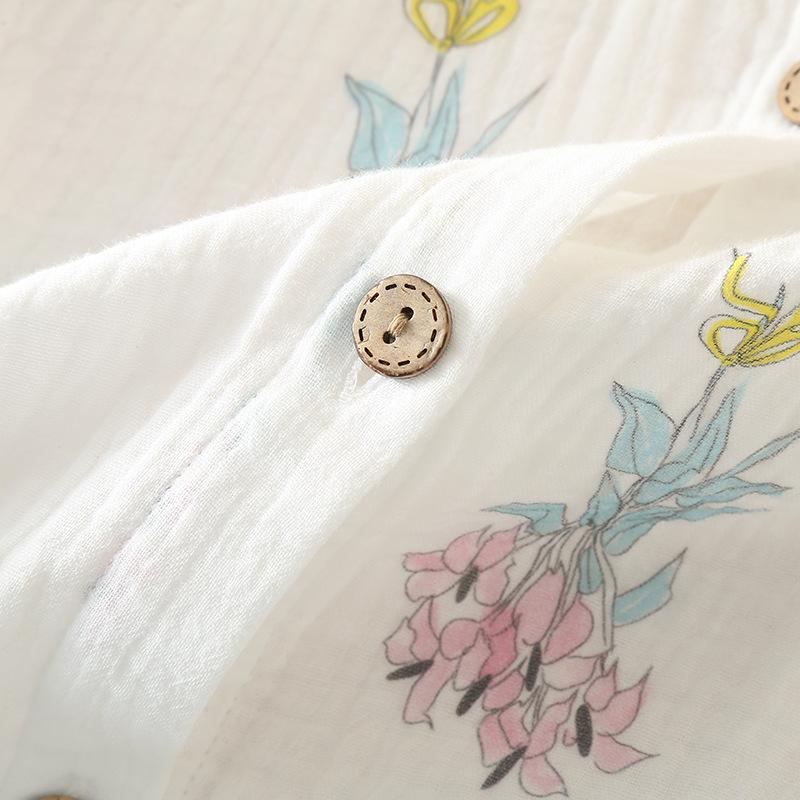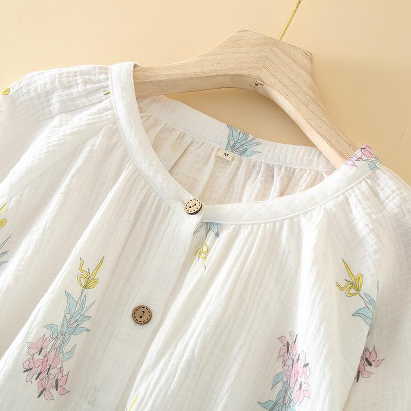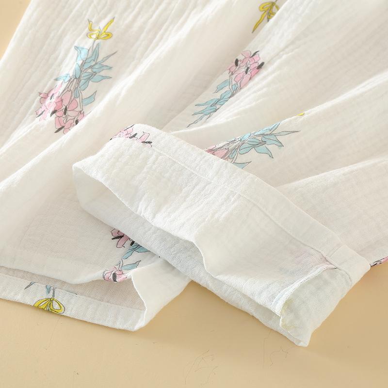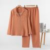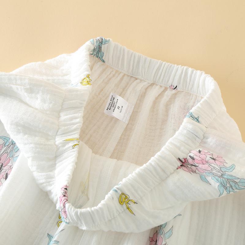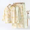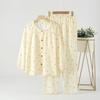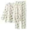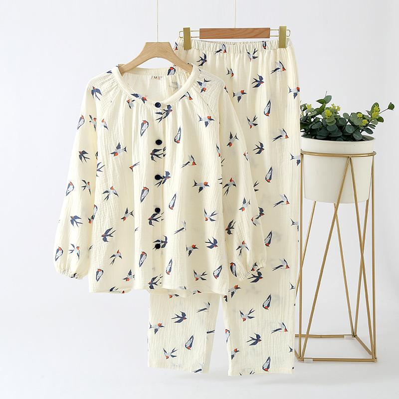 Pijama de algodón de manga larga con cuello redondo sencillo de estilo japonés para primavera y otoño, traje holgado fino de verano para mujer con hilo de algodón para el hogar