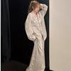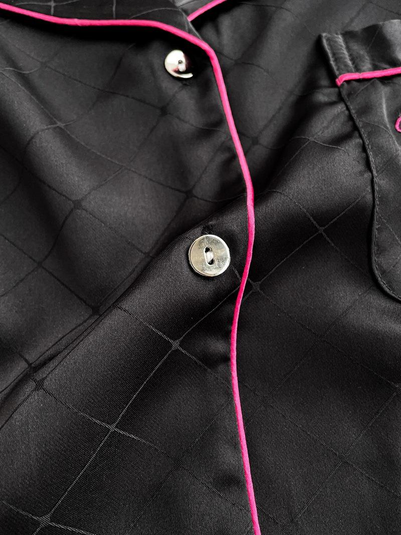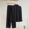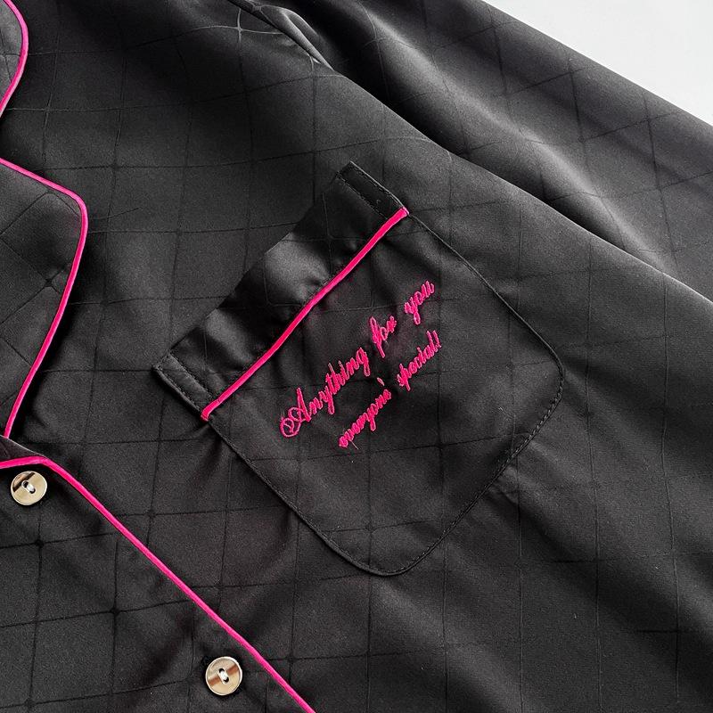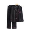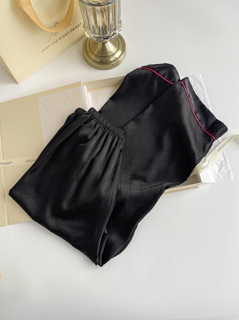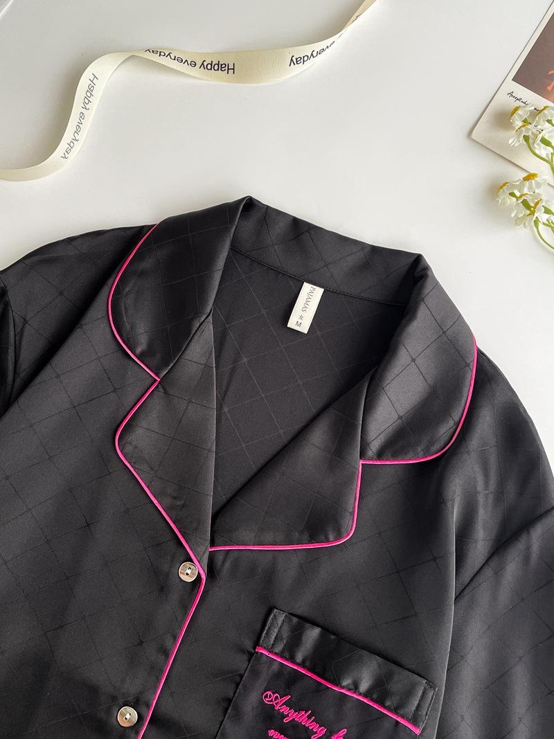Pijama de color contrastante para mujer, primavera y otoño, seda de hielo, manga larga, fino, de alta gama, cárdigan negro, ropa de casa de seda, traje