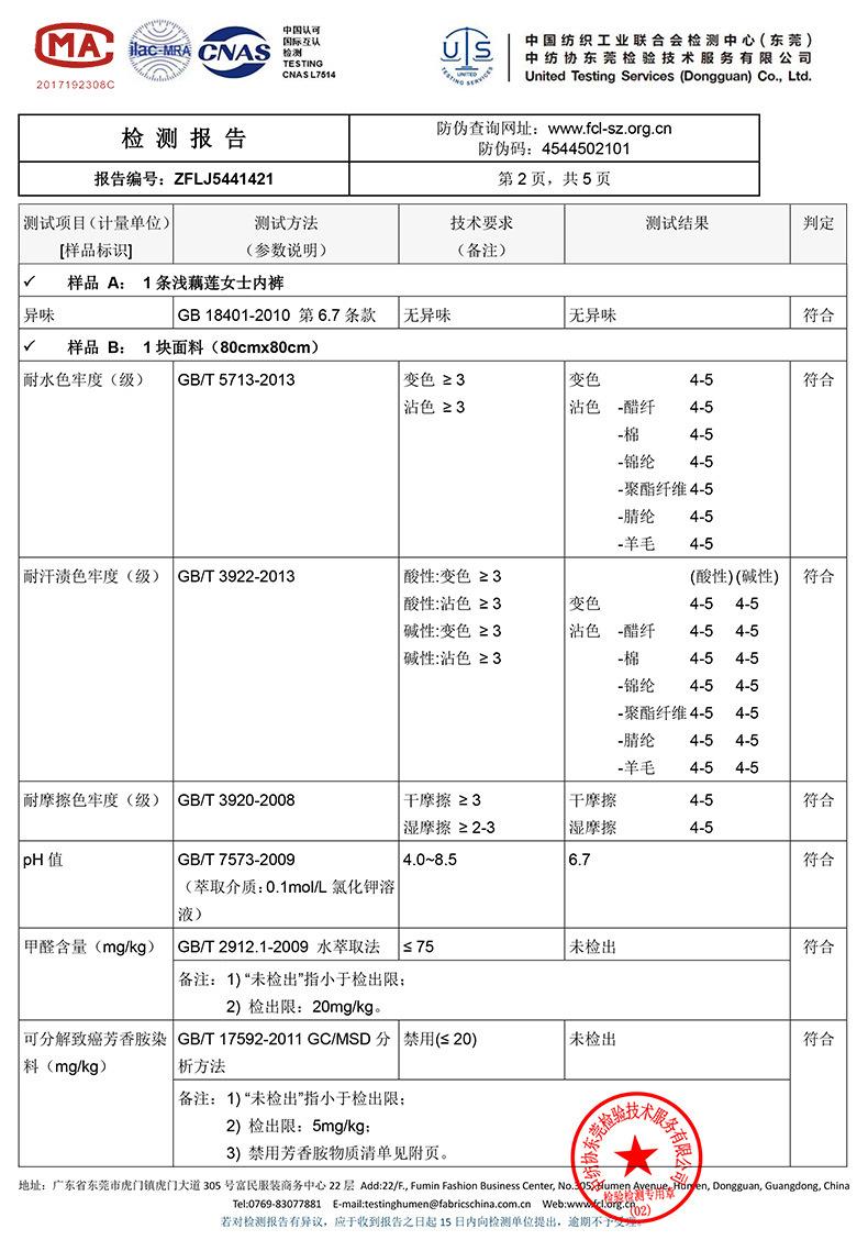Contenido de los ingredientes del forro de la entrepierna