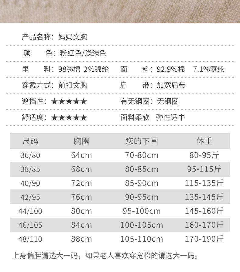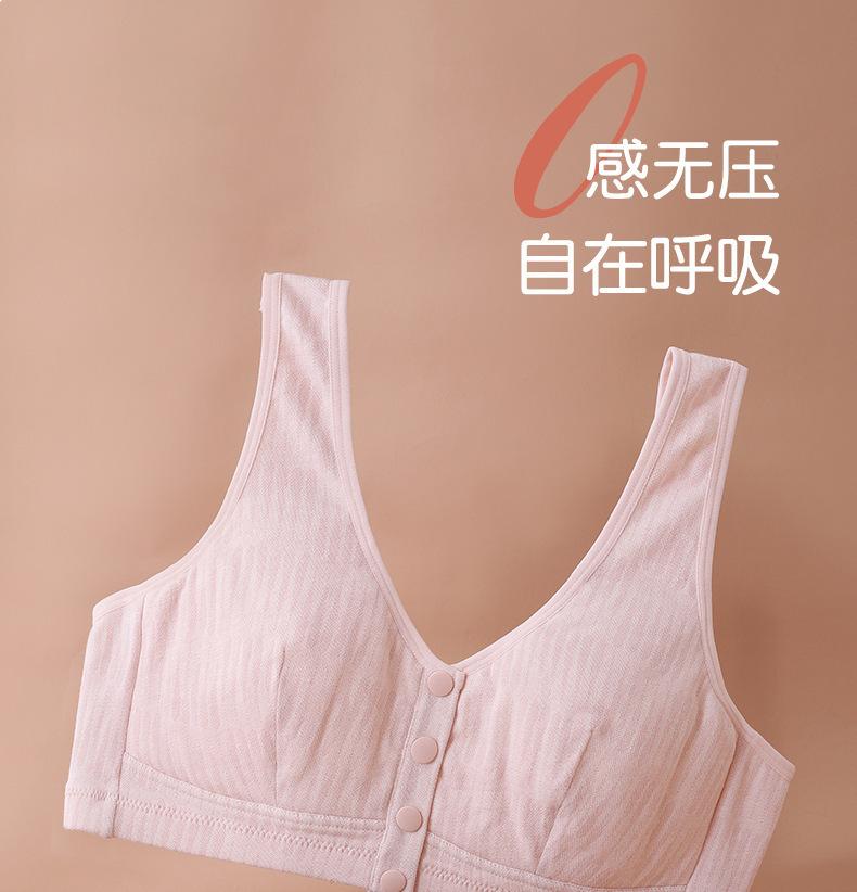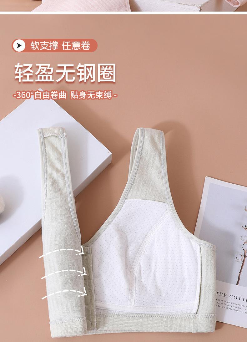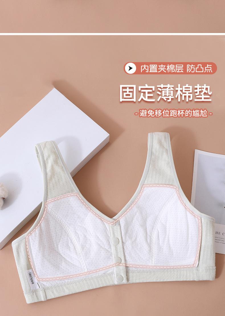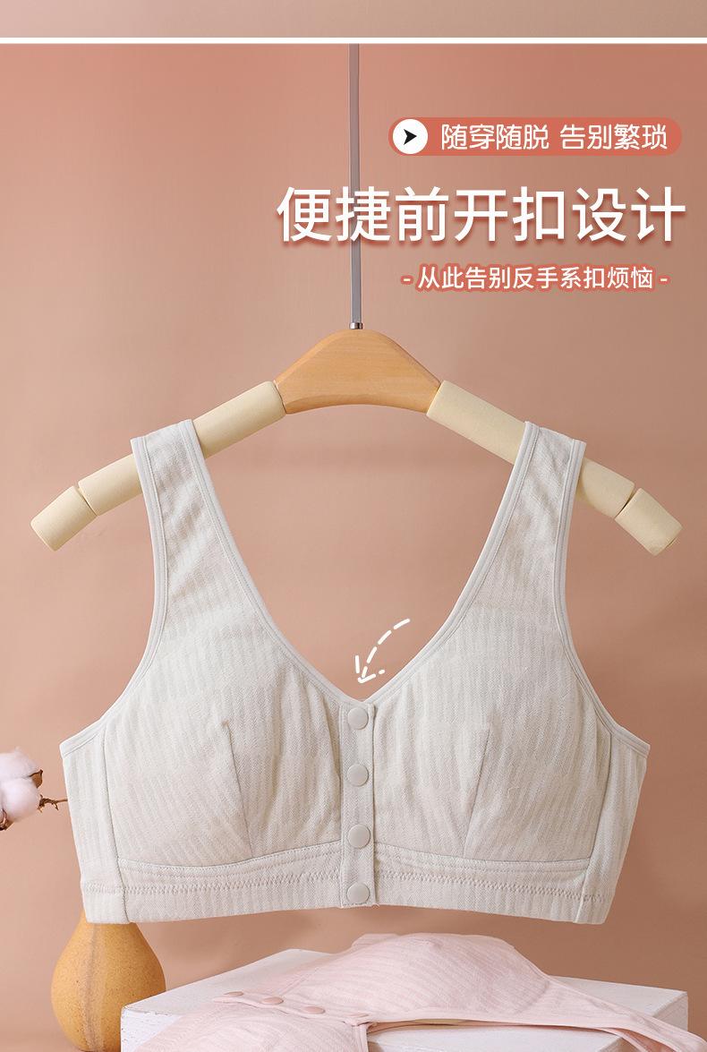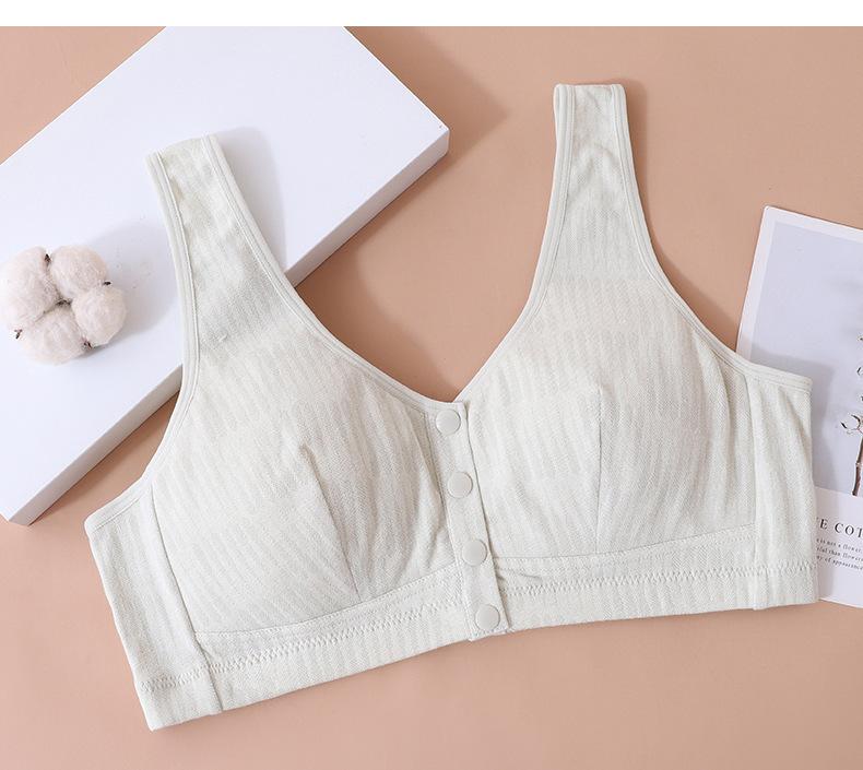 Ropa interior para madres de mediana edad y ancianas con hebilla frontal de algodón amoniaco de Zhangyan, sin aro de acero, con textura de algodón acolchado de colores, cómoda, transpirable y elástica de talla grande