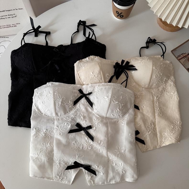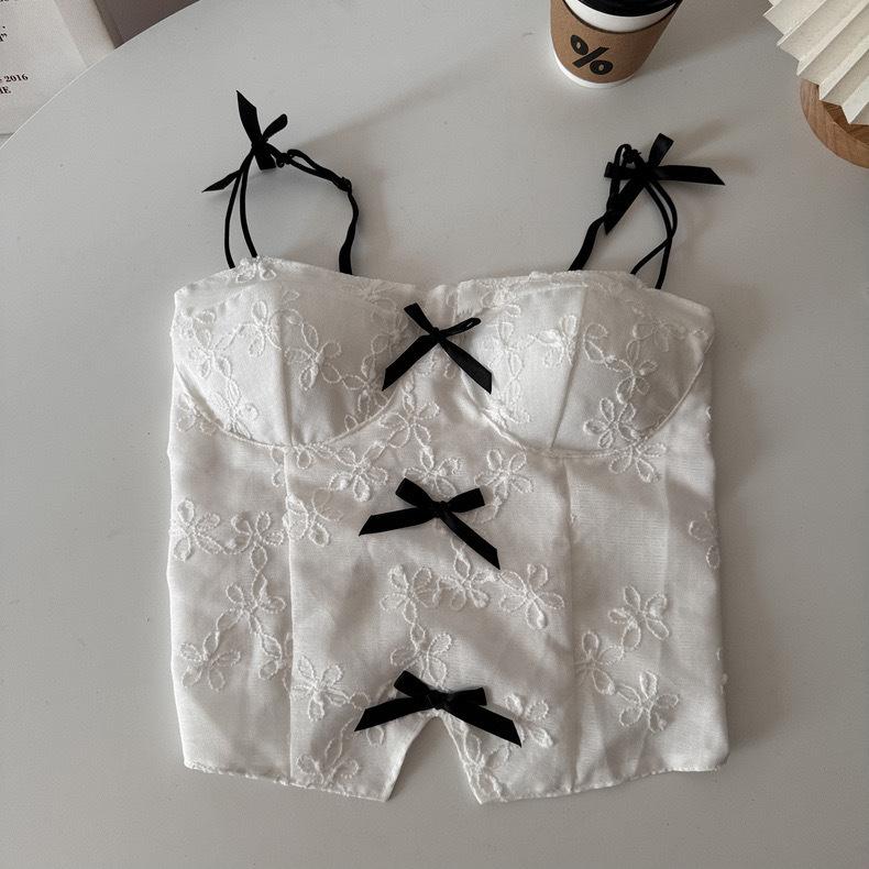 Camisola sexy con lazo de Pure Desire para mujer, ropa interior de primavera y verano con almohadilla para el pecho, parte inferior de tubo elegante y hermosa en la espalda.