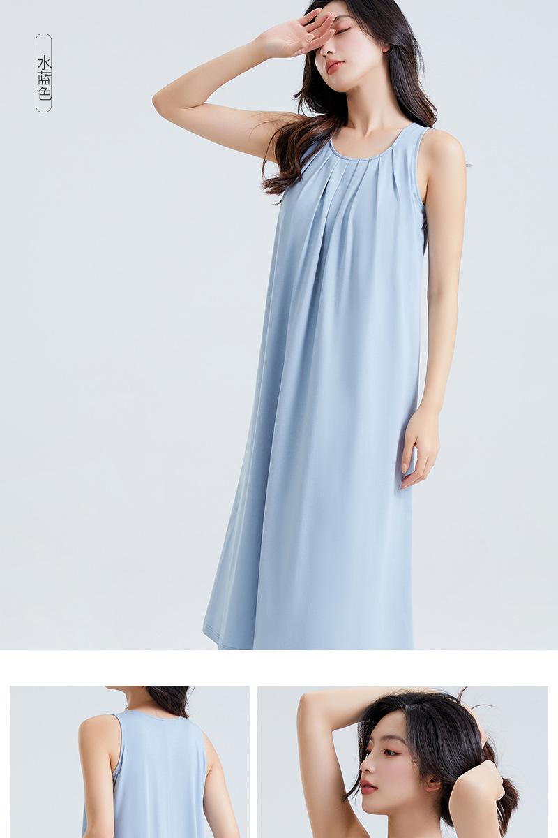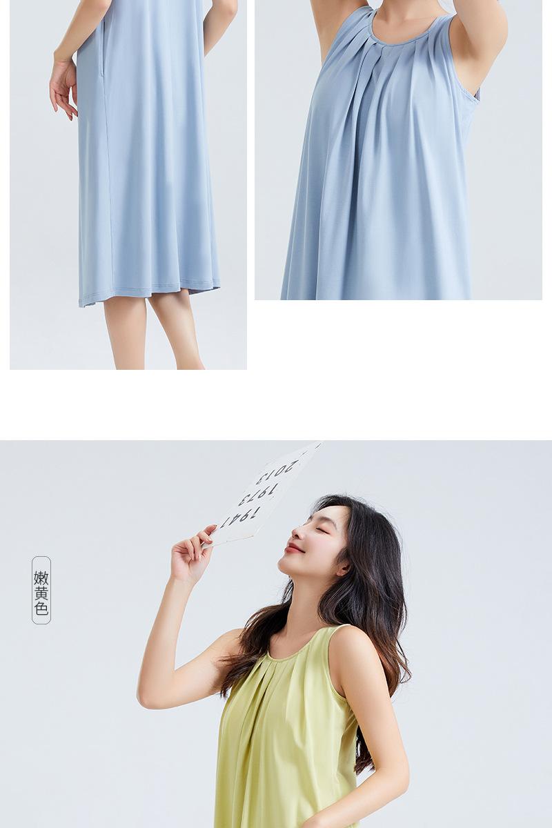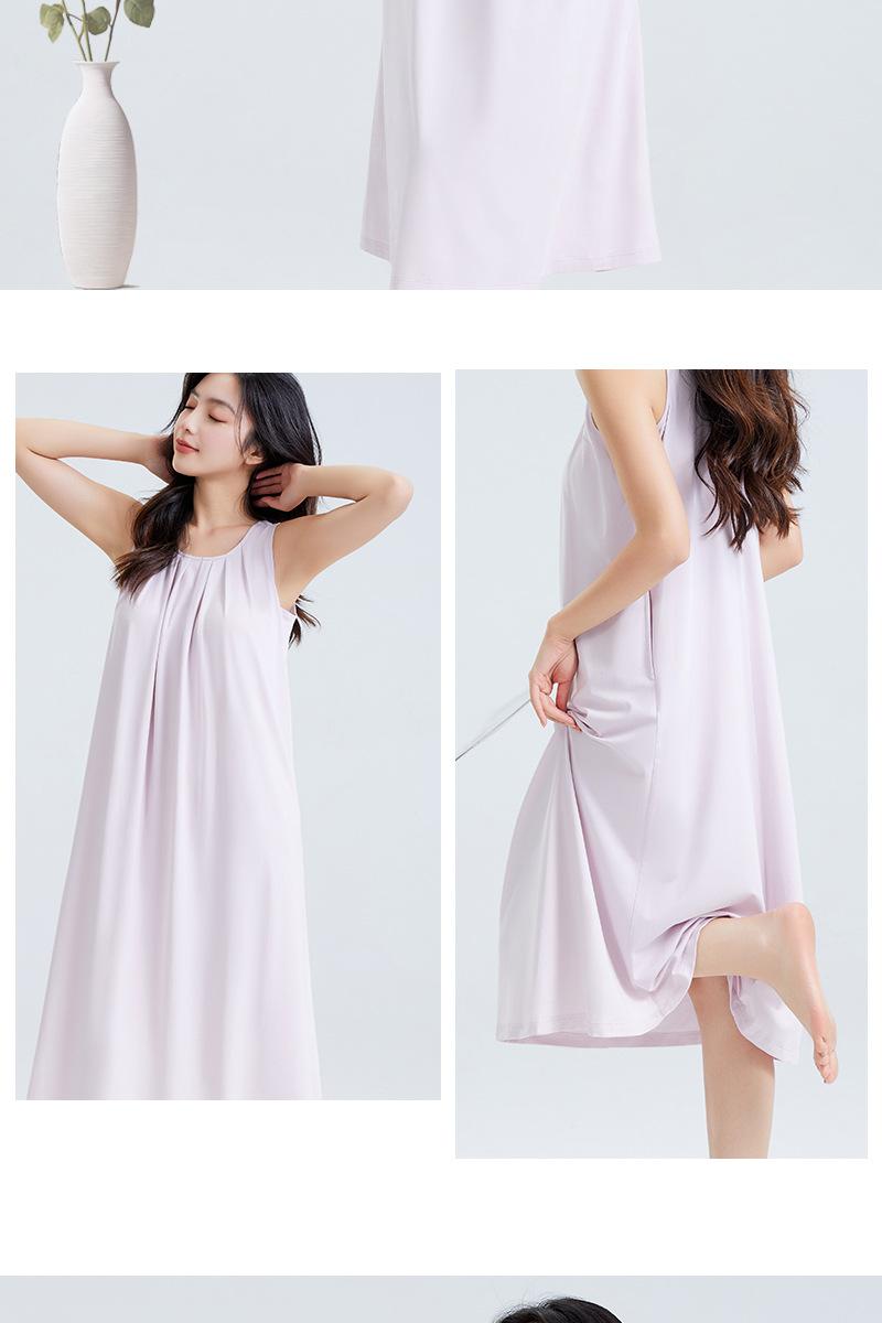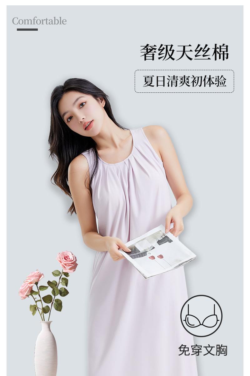 [con Almohadilla para el Busto] Camisón Largo de Una Pieza para Mujer, Pijama de Verano Anti-Exposición que se Puede Usar Afuera, Camisón Holgado y de Alta Gama para Niñas