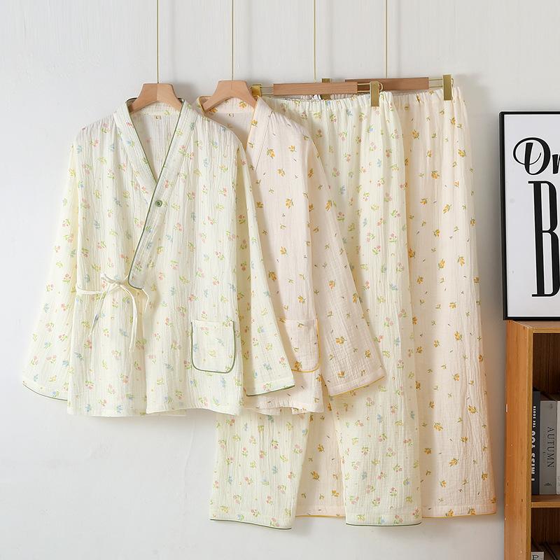 Mujeres embarazadas y bebés algodón algodón gasa de doble capa ropa mensual pijamas primavera y otoño verano delgada manga larga ropa de hogar para lactancia posparto