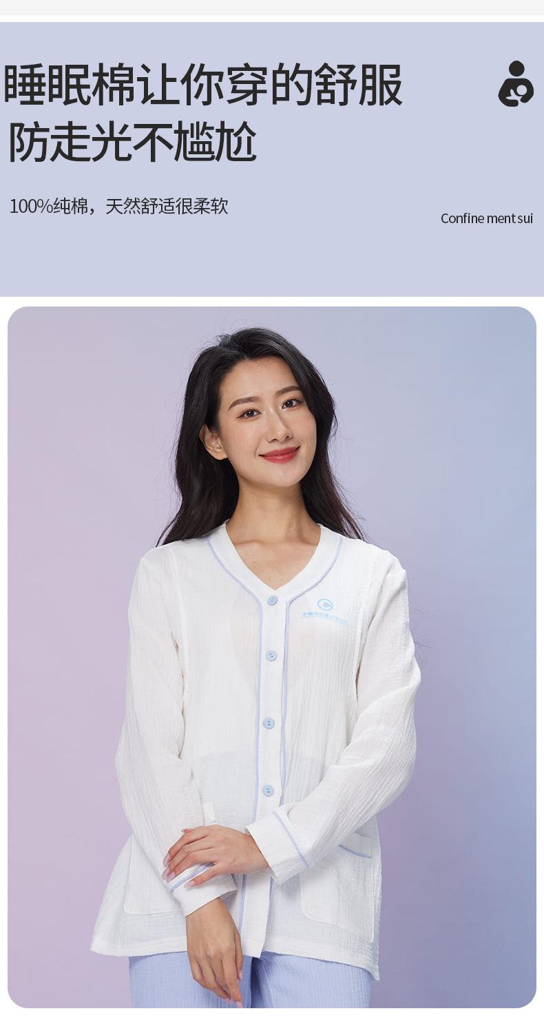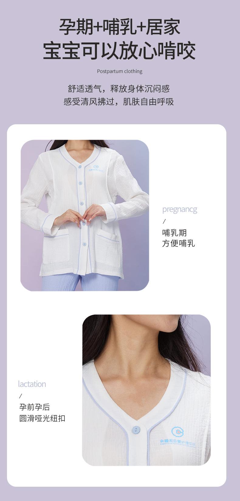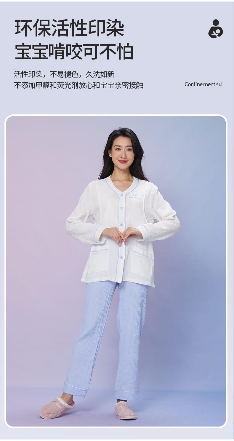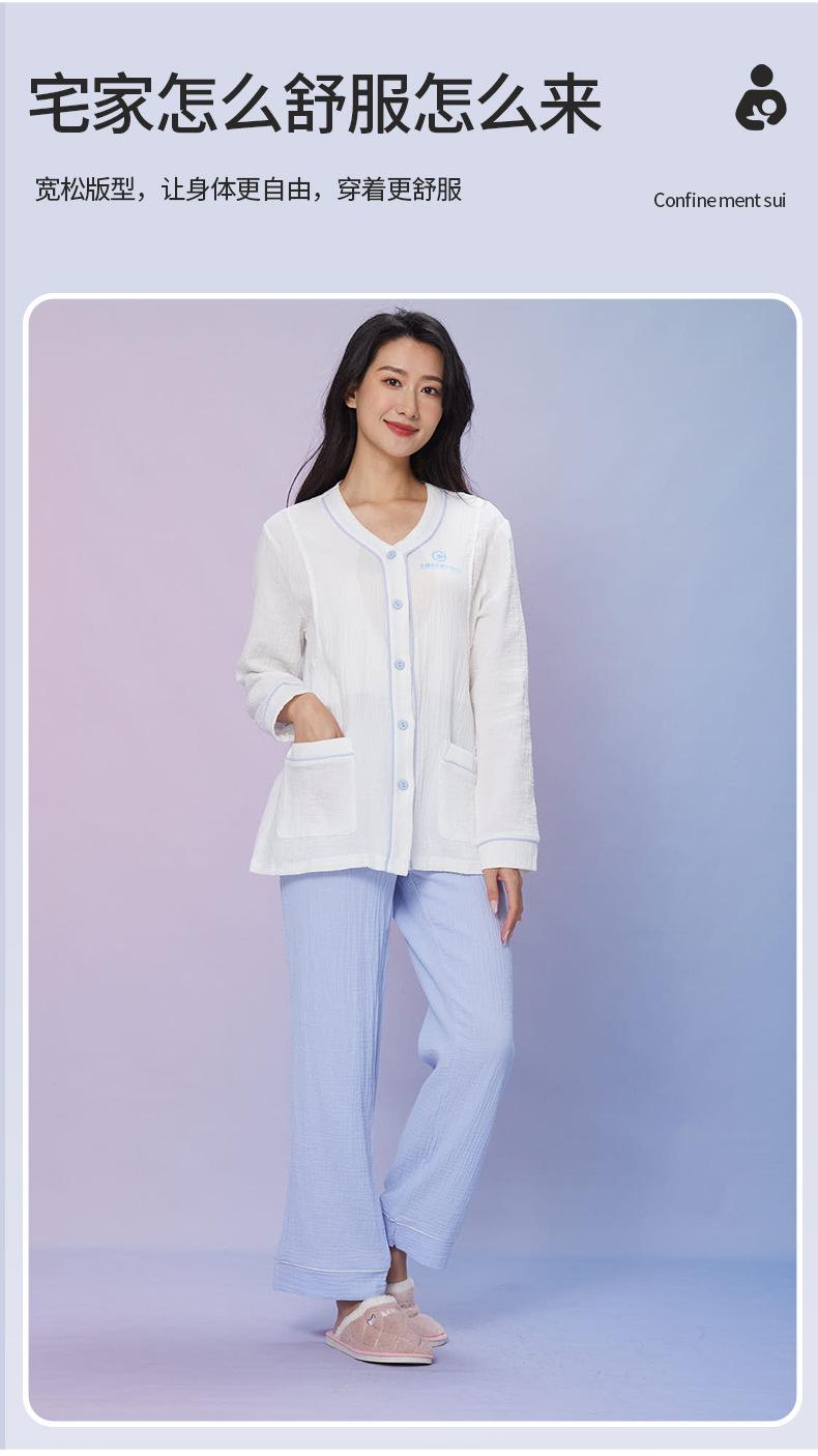 Ropa de Casa para Lactancia Postparto de Primavera y Otoño Transpirable Pijama para Mujeres Embarazadas Algodón Crepé de Doble Gasa Cárdigan Ropa de Luna