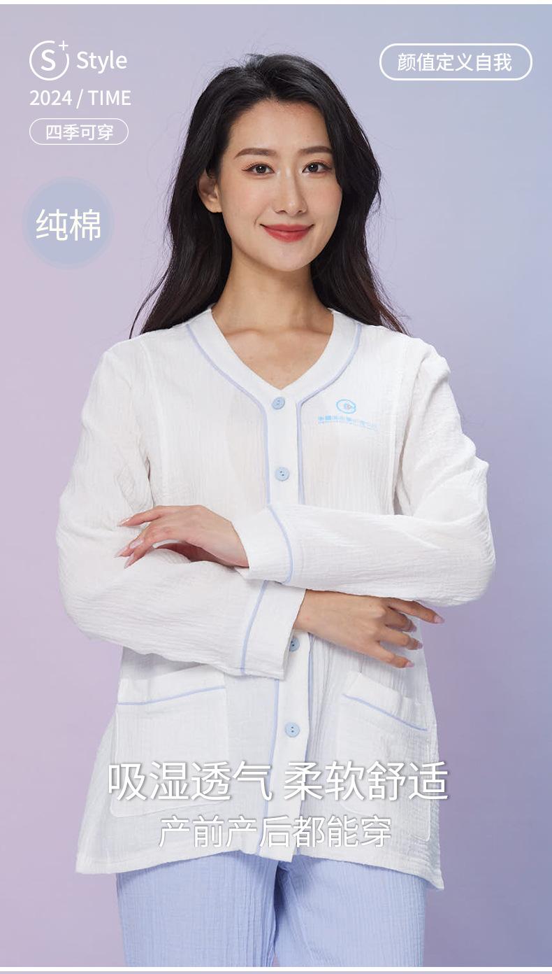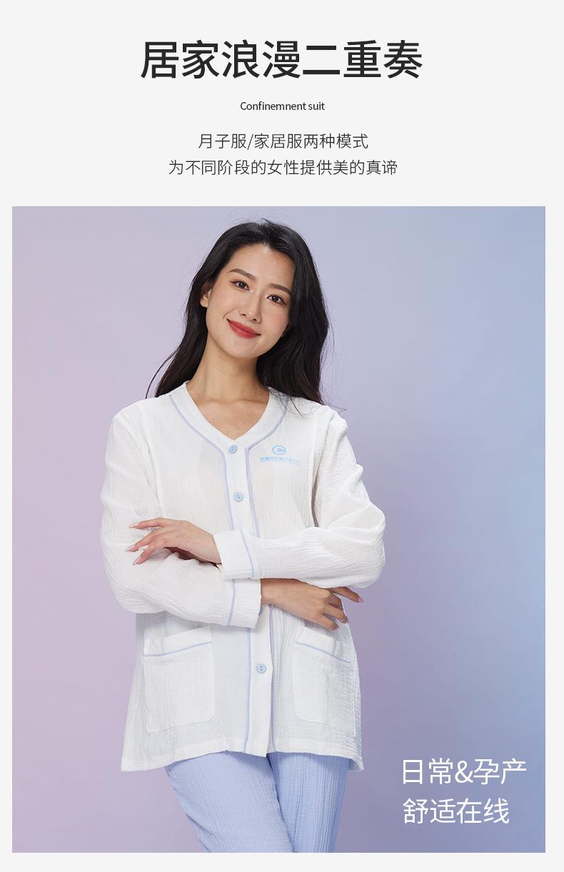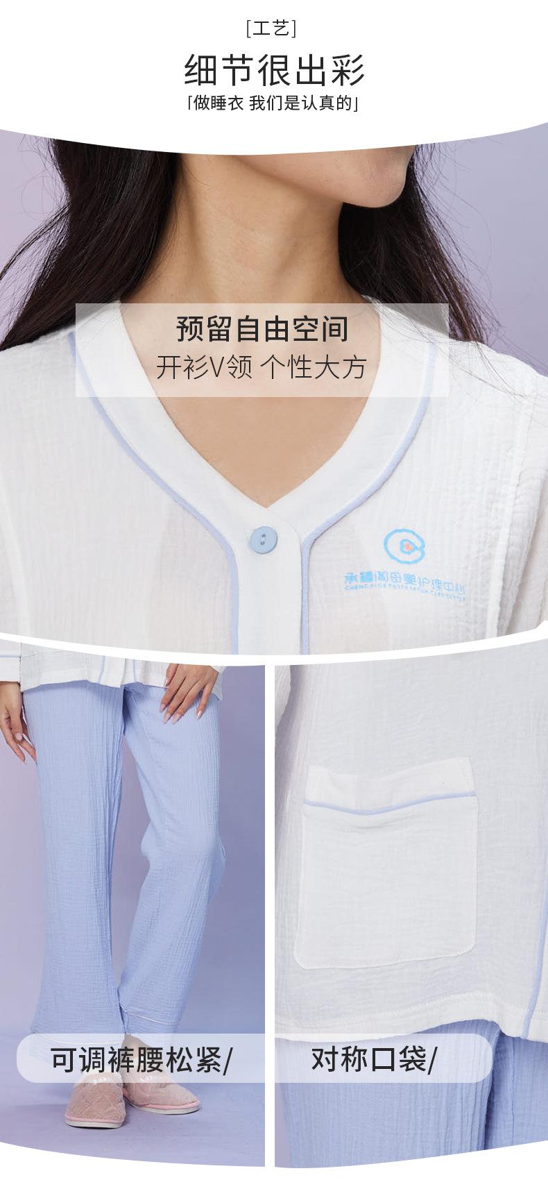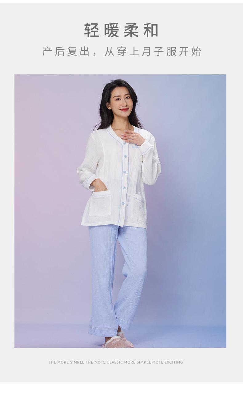Ropa de Casa para Lactancia Postparto de Primavera y Otoño Transpirable Pijama para Mujeres Embarazadas Algodón Crepé de Doble Gasa Cárdigan Ropa de Luna