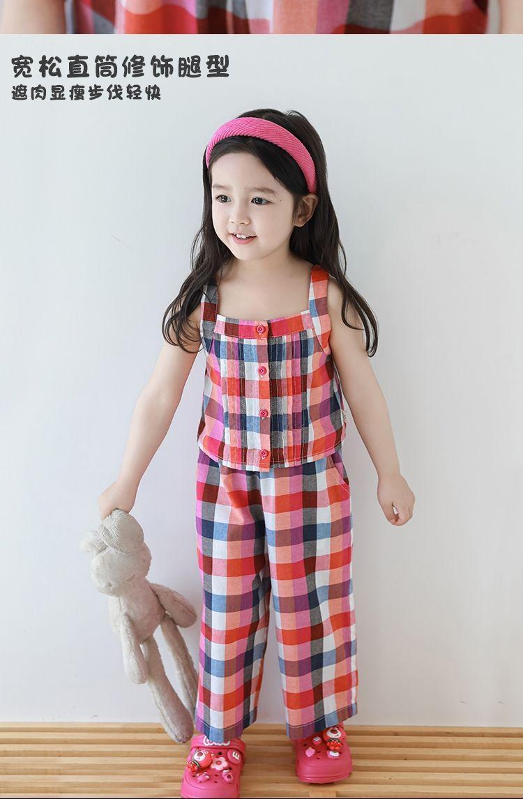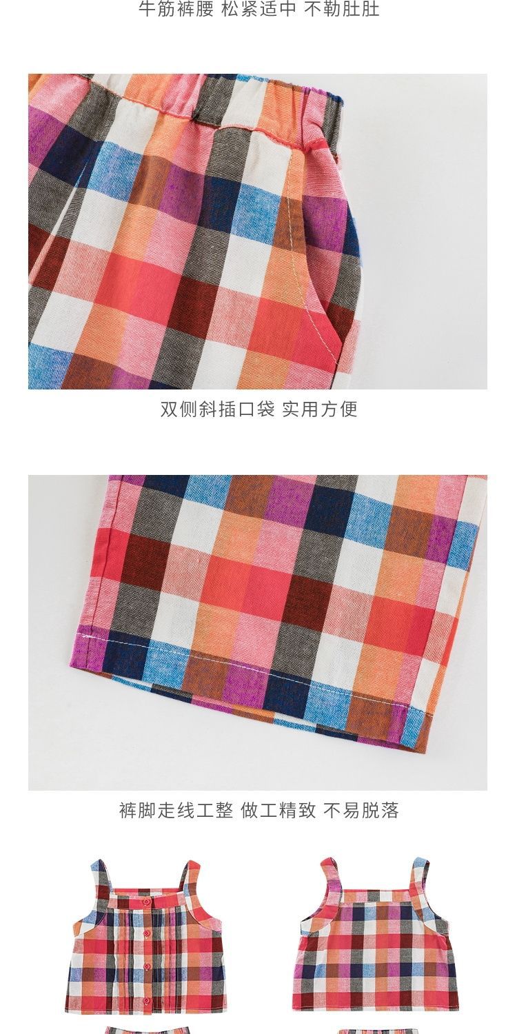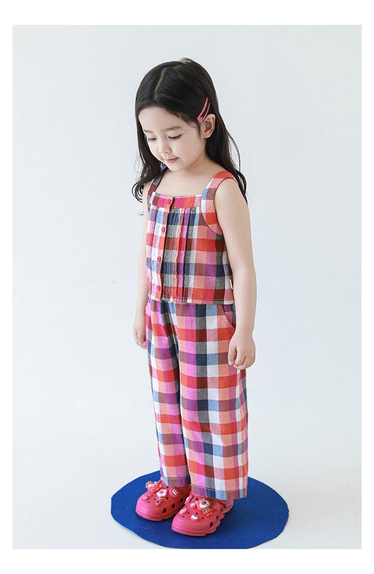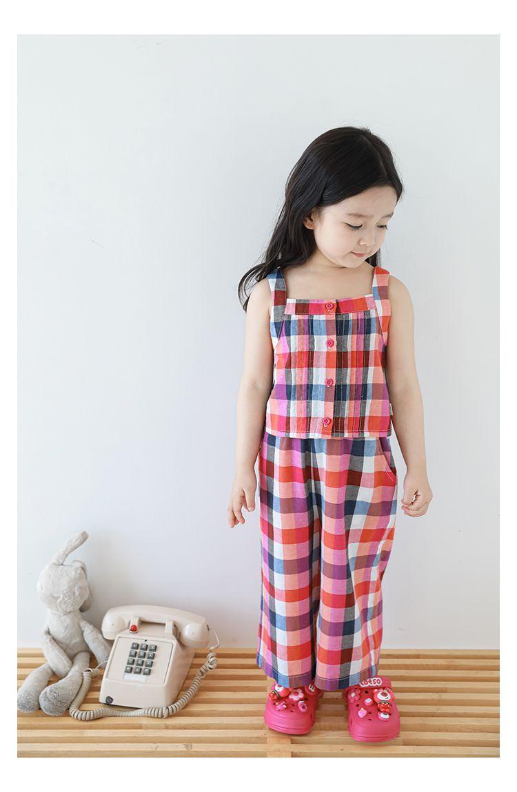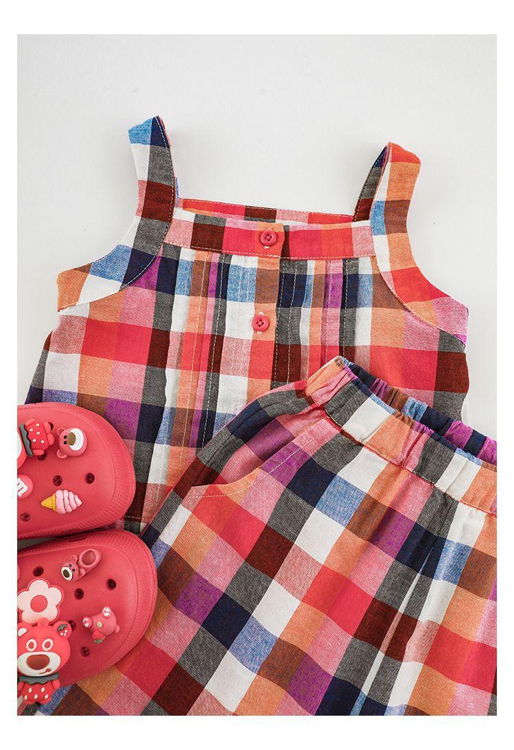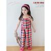 Traje Vintage de Cuadros Arcoíris para Niña Wuri Verano Niños Fresco Tirantes de Ala Ancha Pantalones Rectos Sueltos