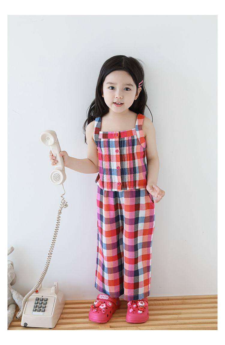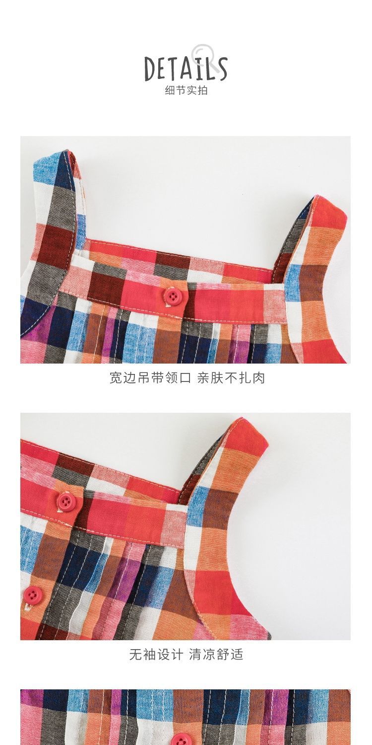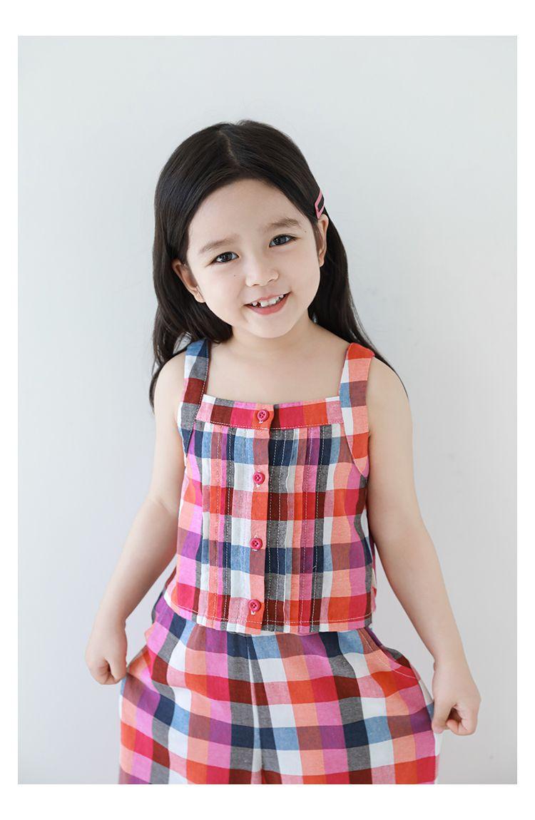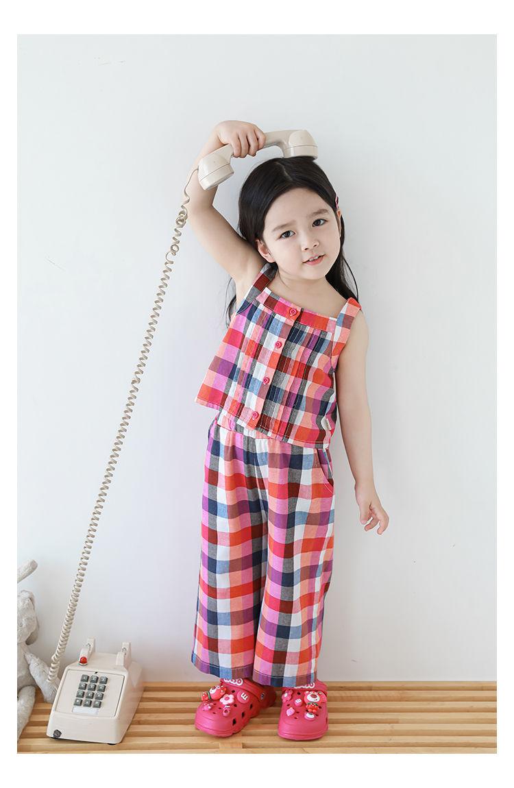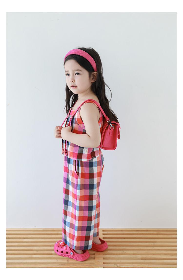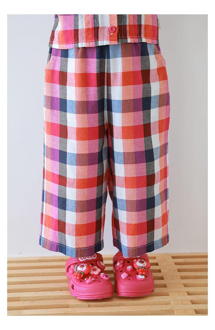 Traje Vintage de Cuadros Arcoíris para Niña Wuri Verano Niños Fresco Tirantes de Ala Ancha Pantalones Rectos Sueltos