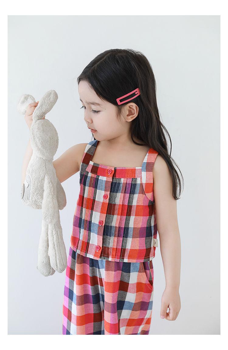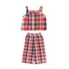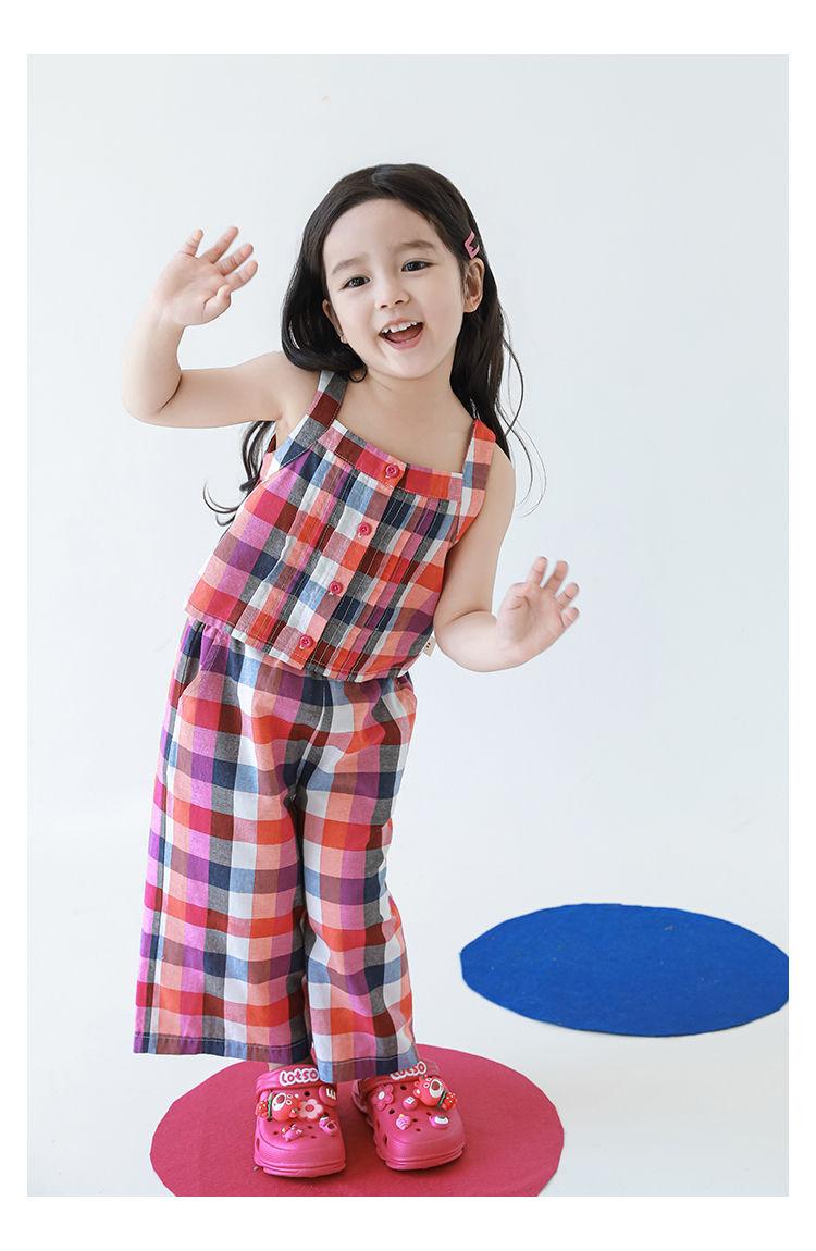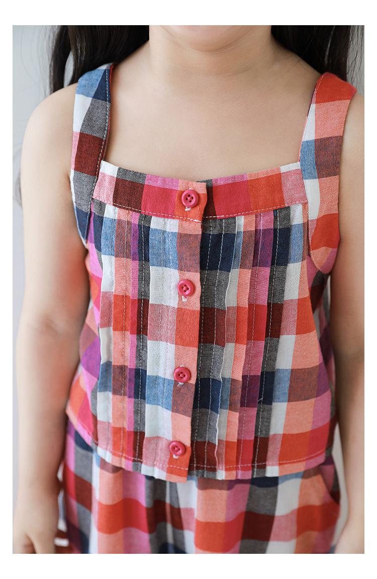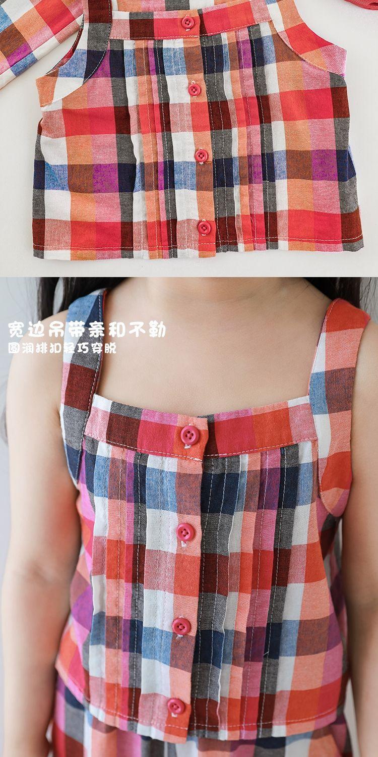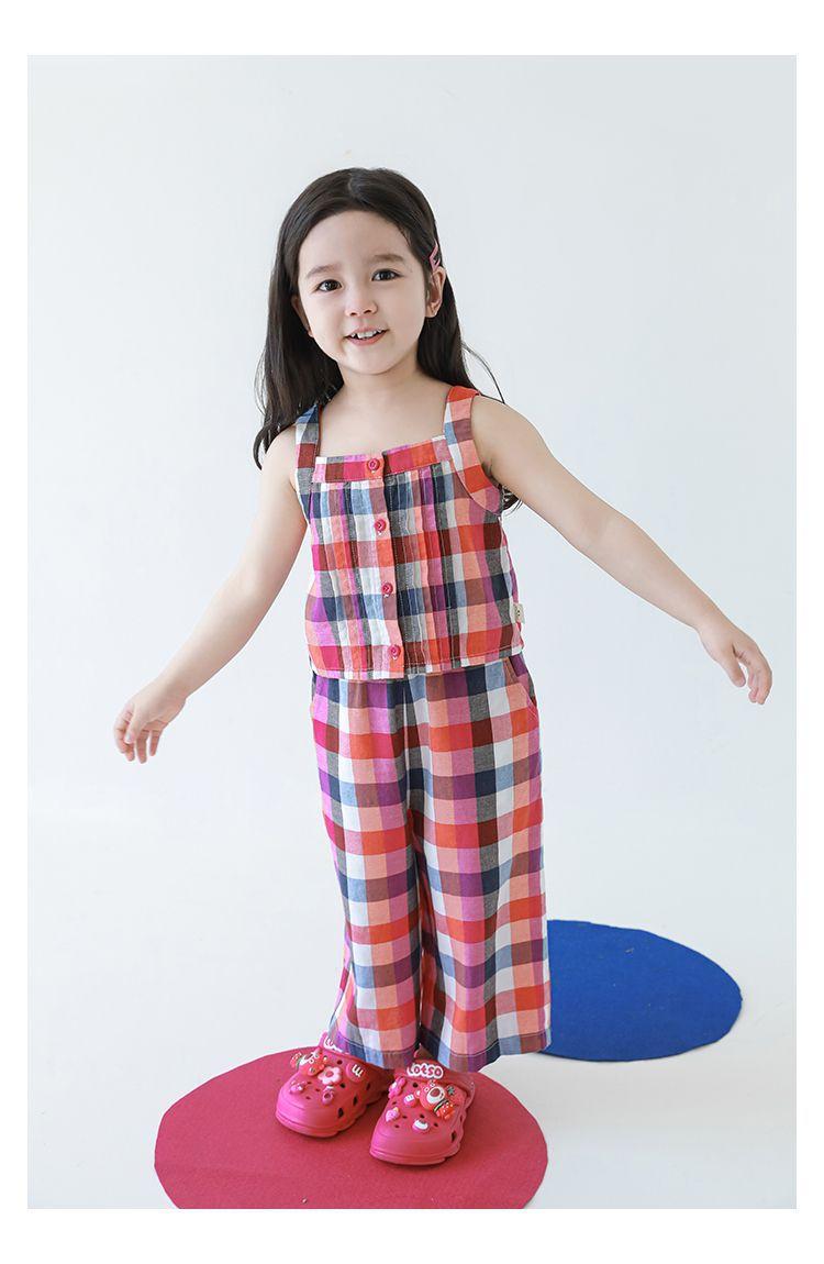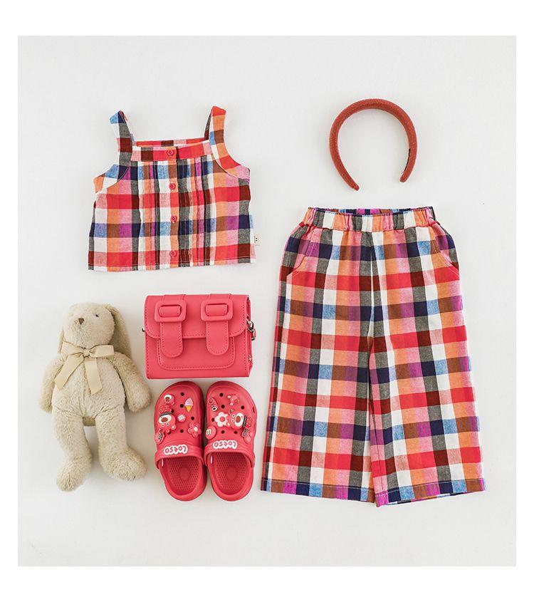 Traje Vintage de Cuadros Arcoíris para Niña Wuri Verano Niños Fresco Tirantes de Ala Ancha Pantalones Rectos Sueltos