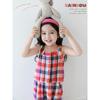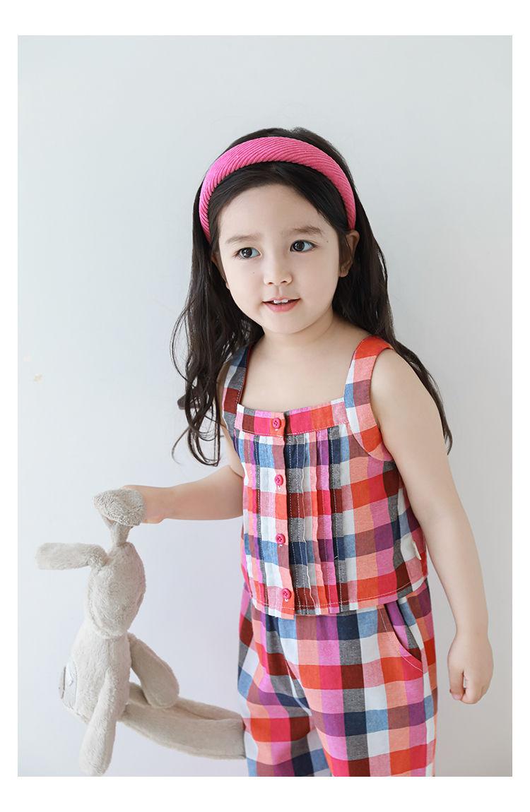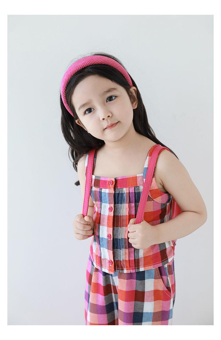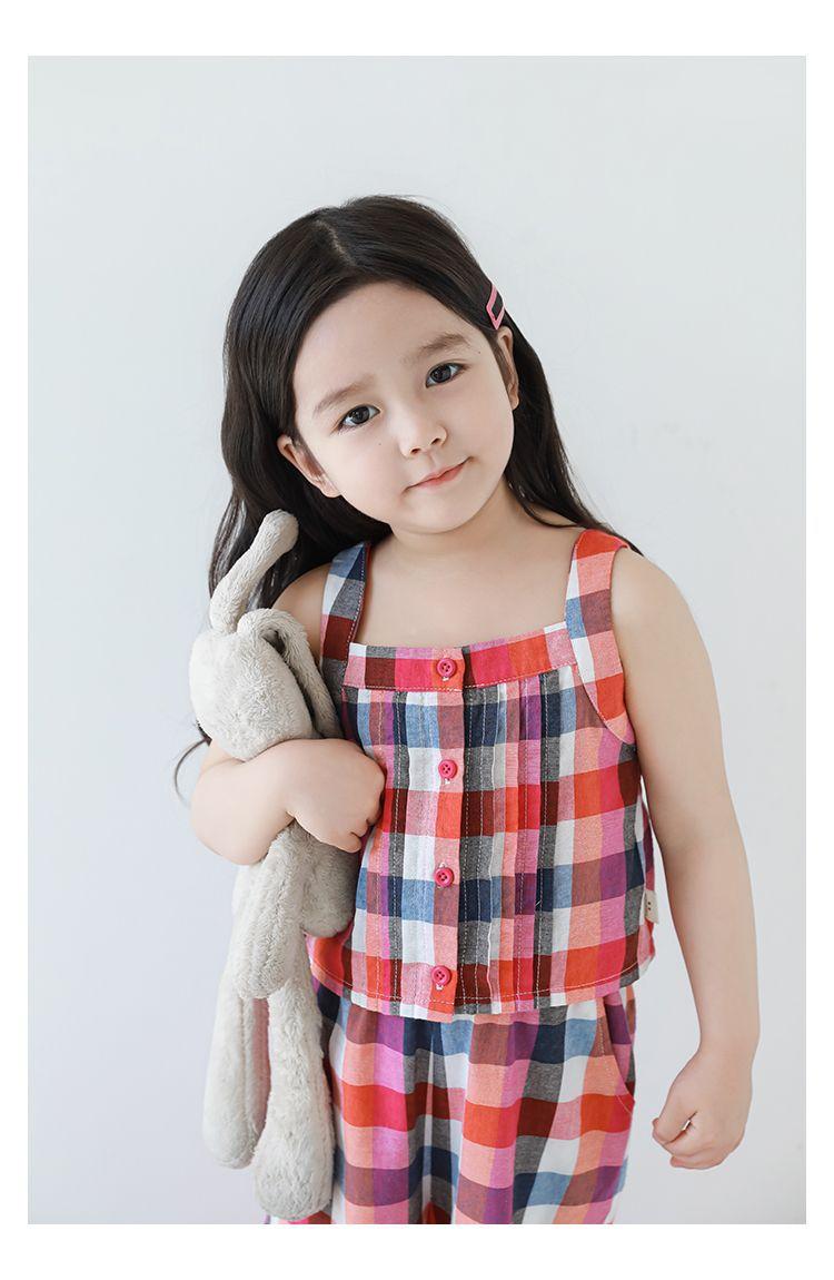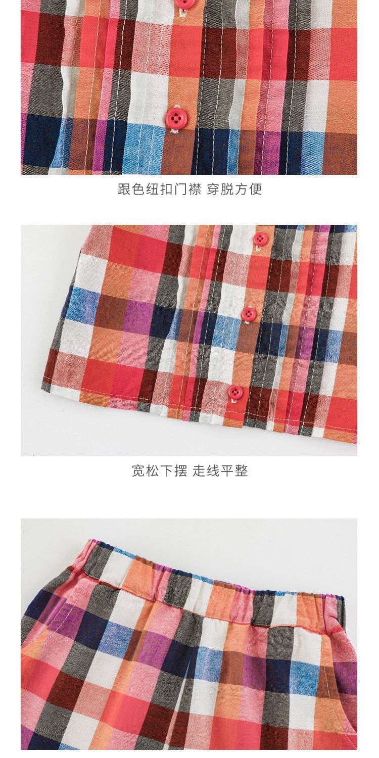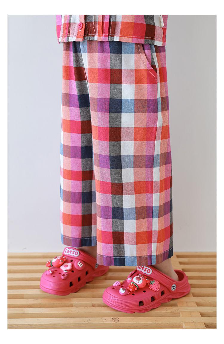 Traje Vintage de Cuadros Arcoíris para Niña Wuri Verano Niños Fresco Tirantes de Ala Ancha Pantalones Rectos Sueltos
