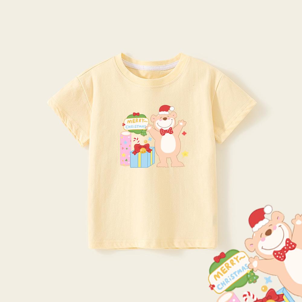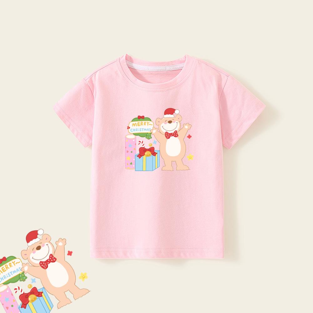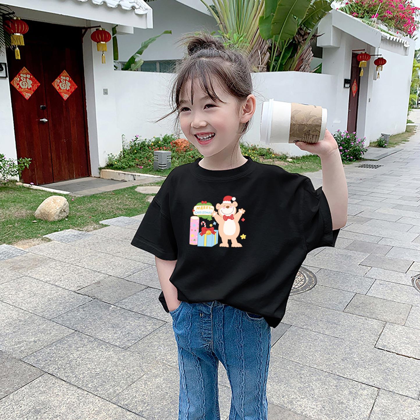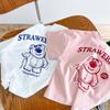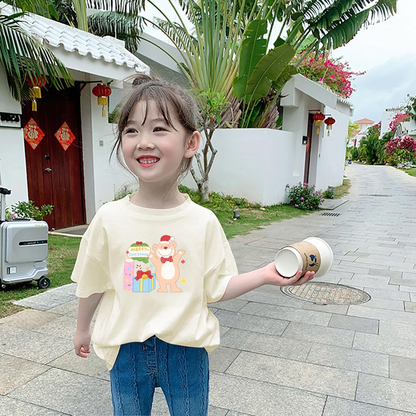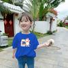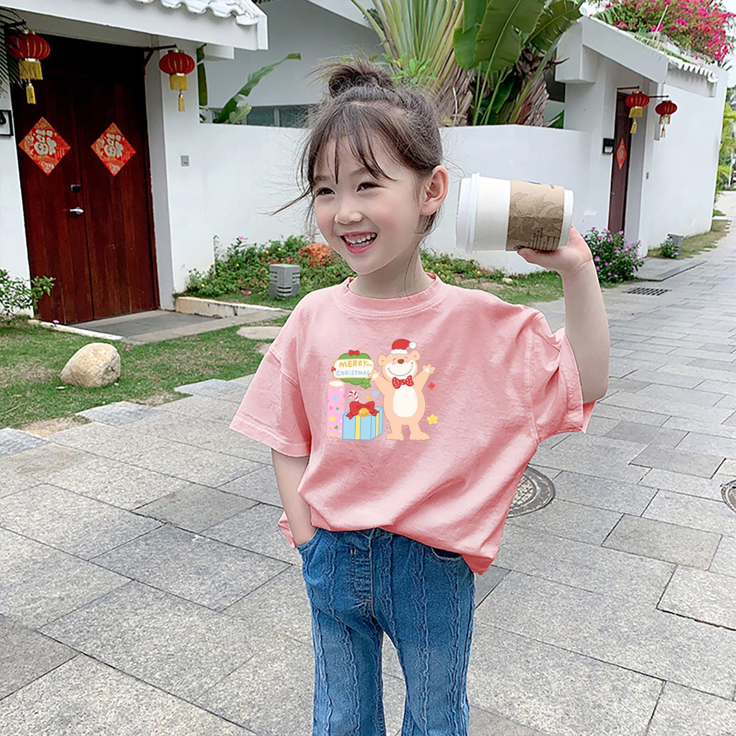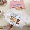 Camiseta de manga corta para niña, estilo coreano, ropa de verano 2024, ropa infantil de dibujos animados, marca de moda, estampado de oso, top para niño