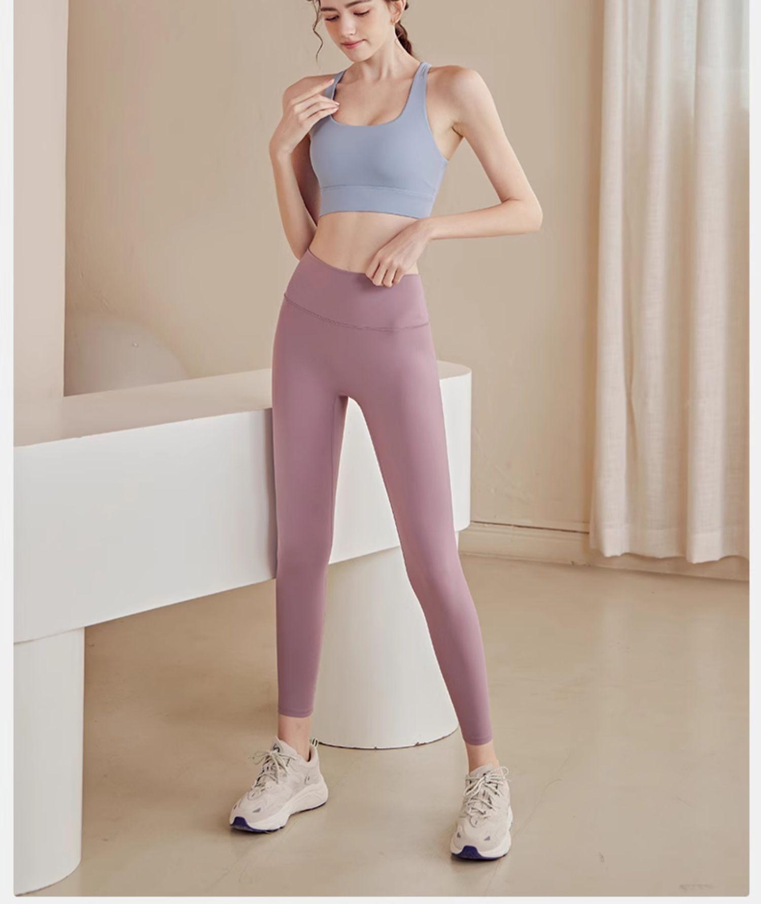 Pantalones de yoga ajustados de cintura alta para mujer, de cintura alta, color melocotón, para correr y fitness