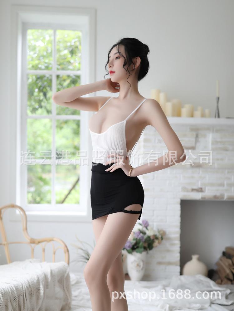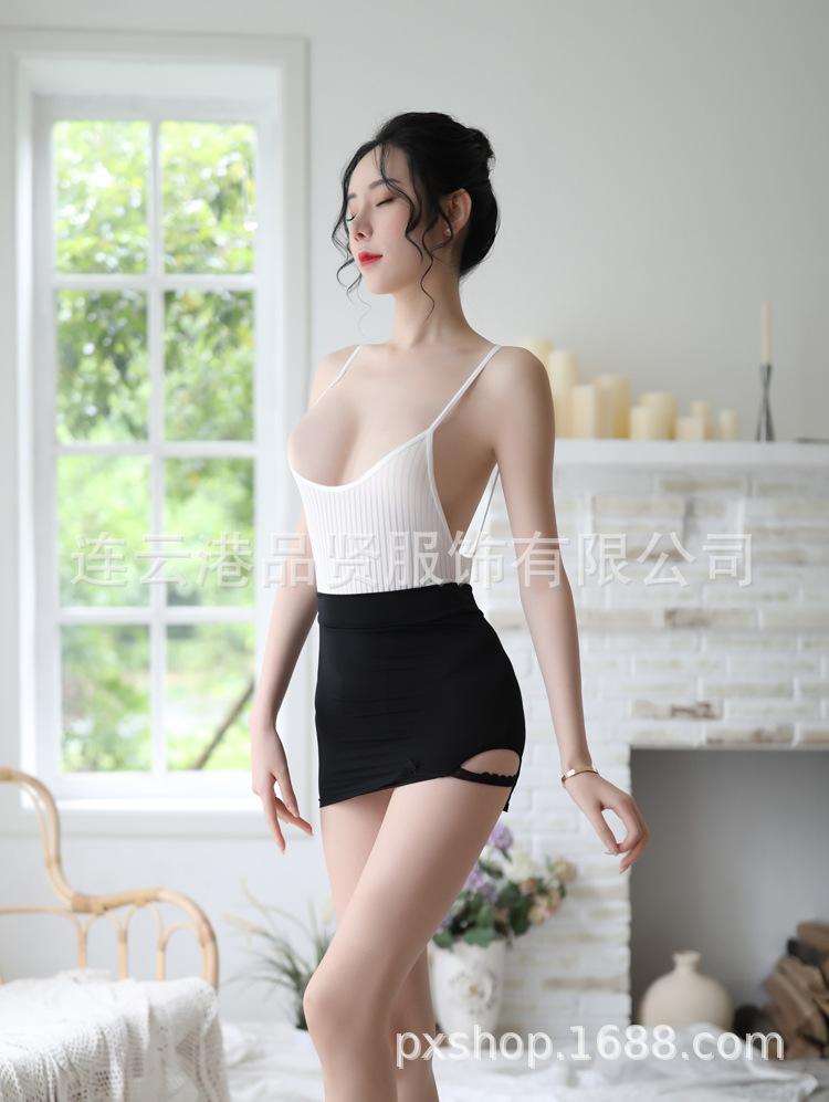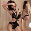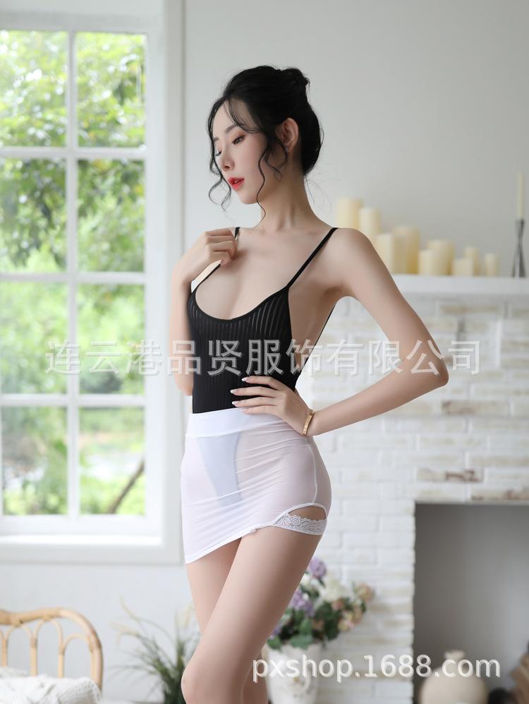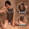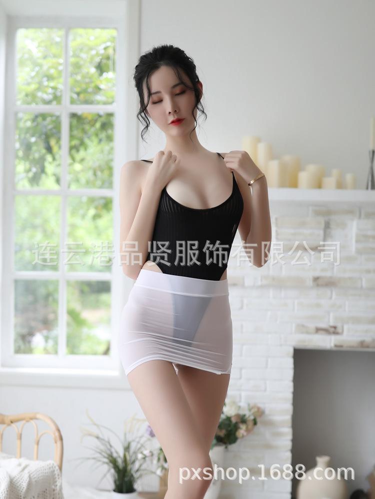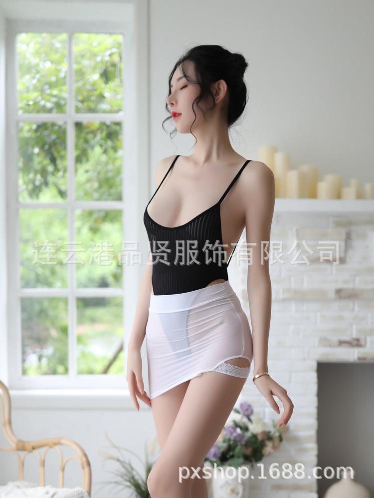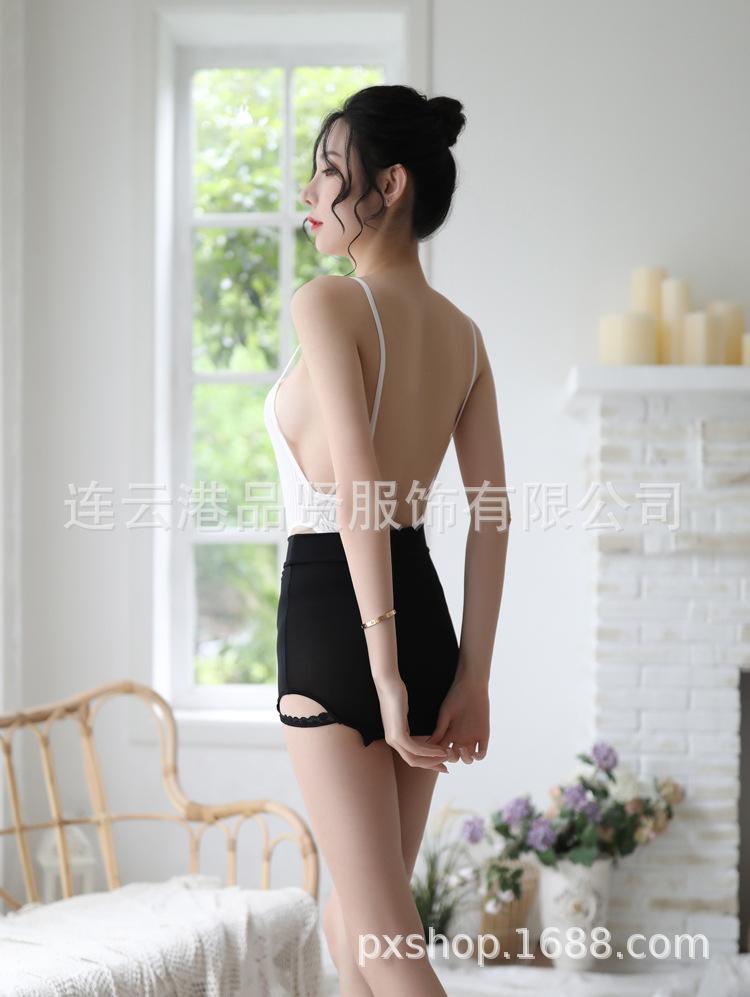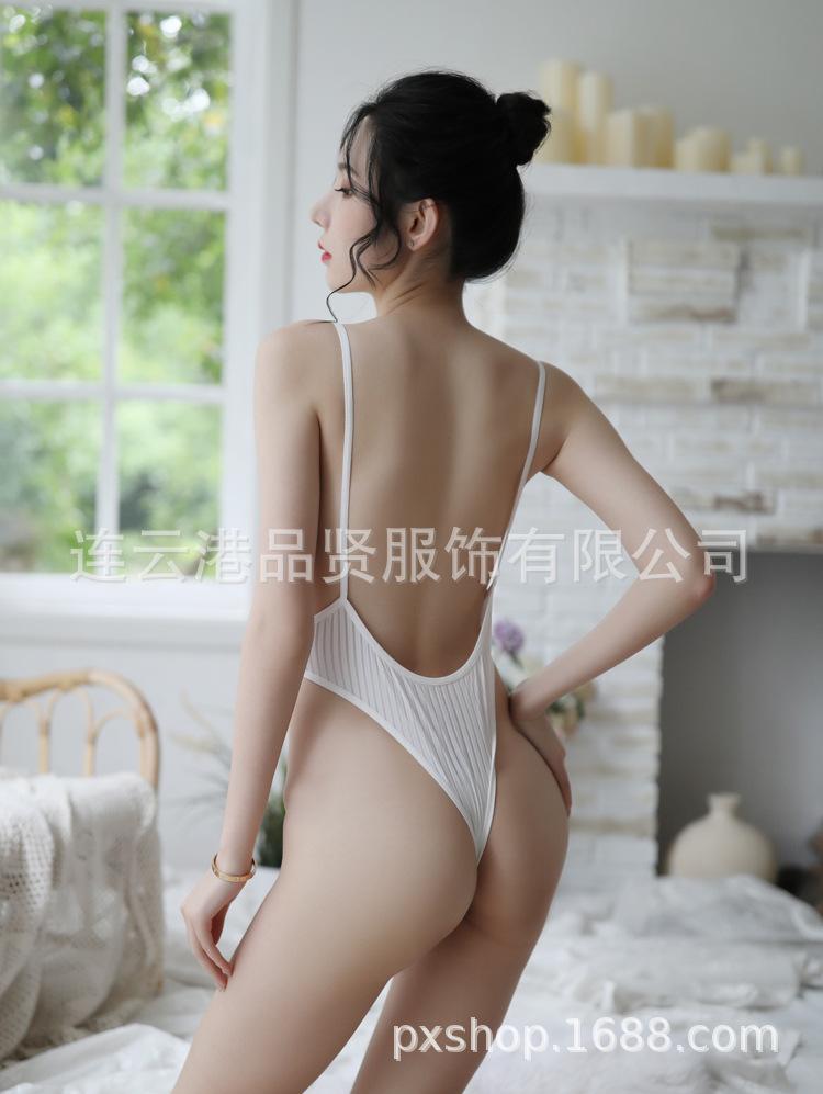 Traje de baño de una pieza con abertura y escote alto, ropa interior sexy Pinxian, traje de baño de una pieza a rayas transparente.
