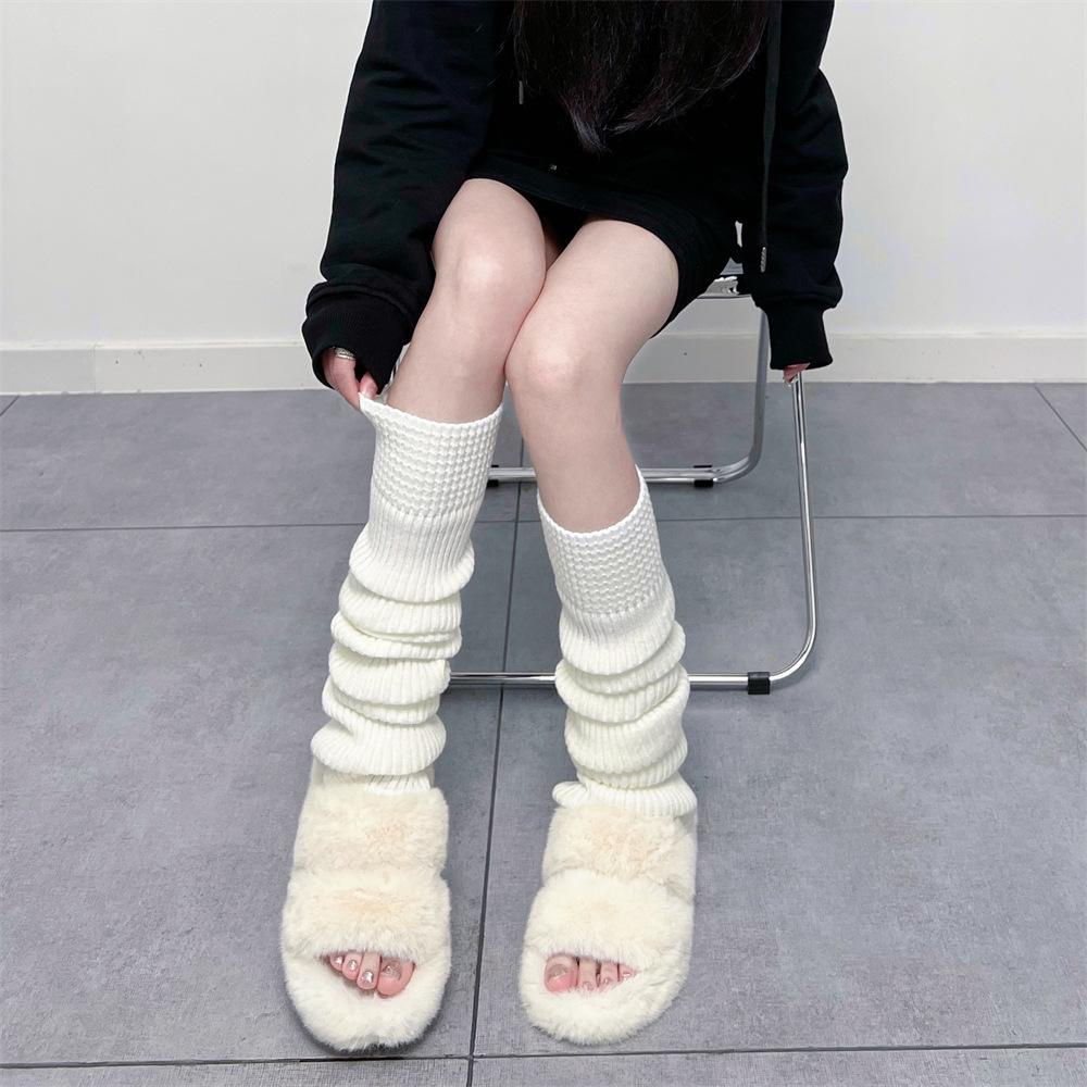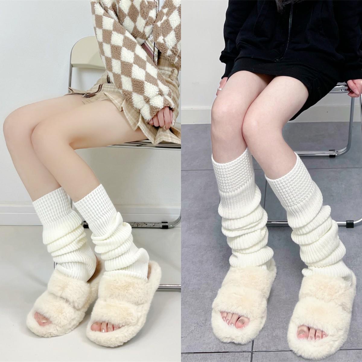 Calcetines de punto por encima de la rodilla para mujer, otoño e invierno, cálidos, gruesos, blancos, JK, para cubrir las piernas, calcetines japoneses para chica sexy, para cubrir las pantorrillas