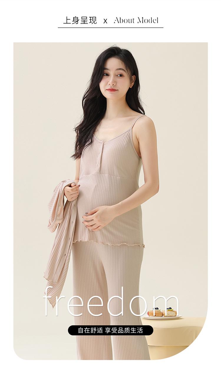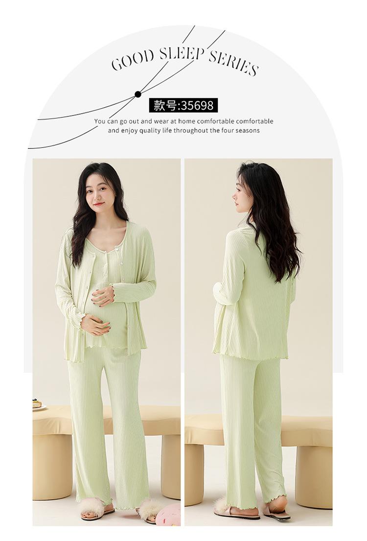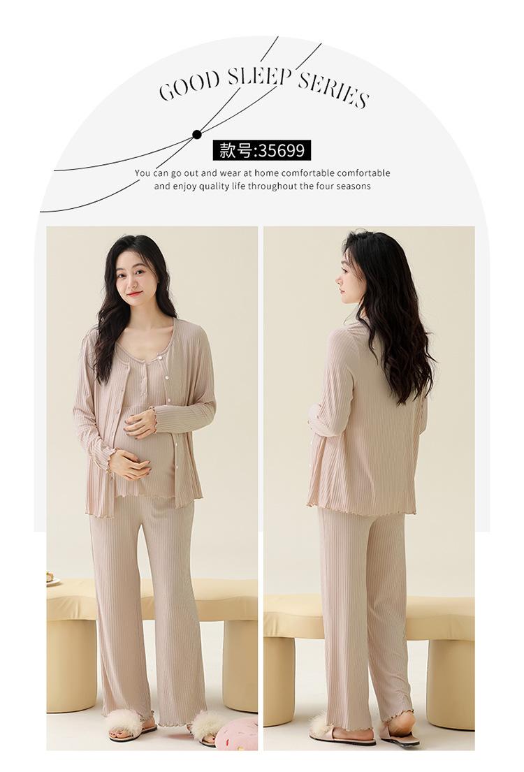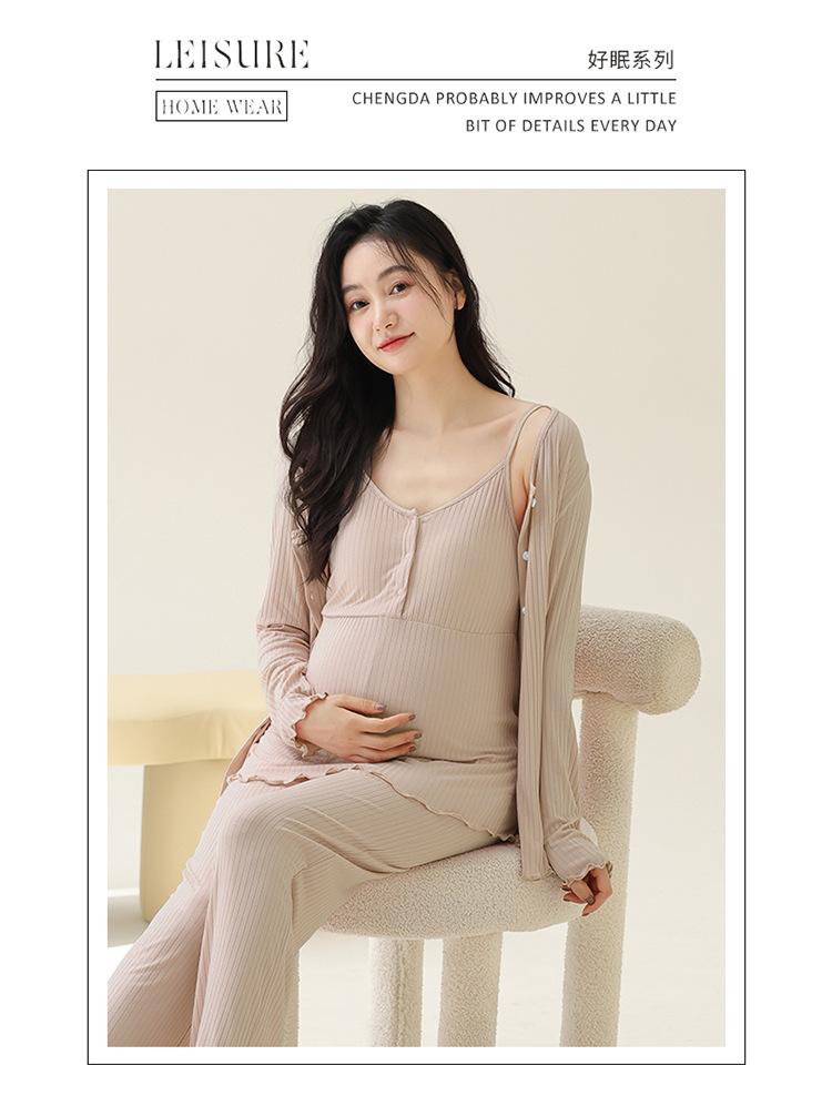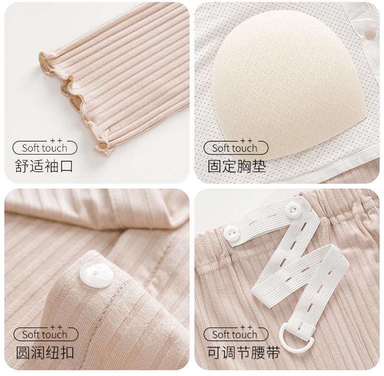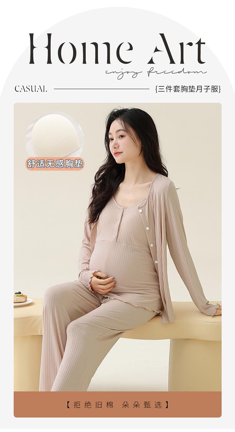 Pijamas de lactancia posparto finos de verano con almohadilla para el pecho para embarazadas. Ropa de casa, modal, de tres piezas.