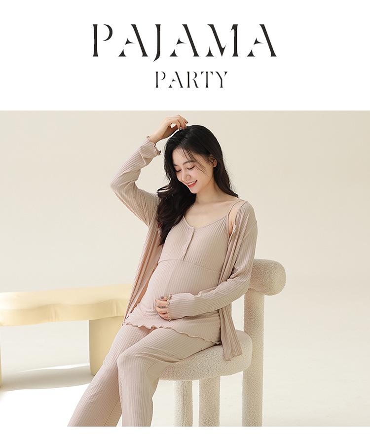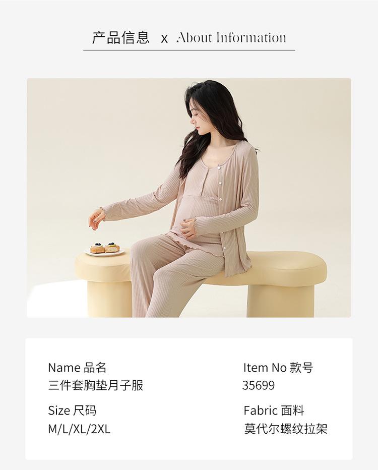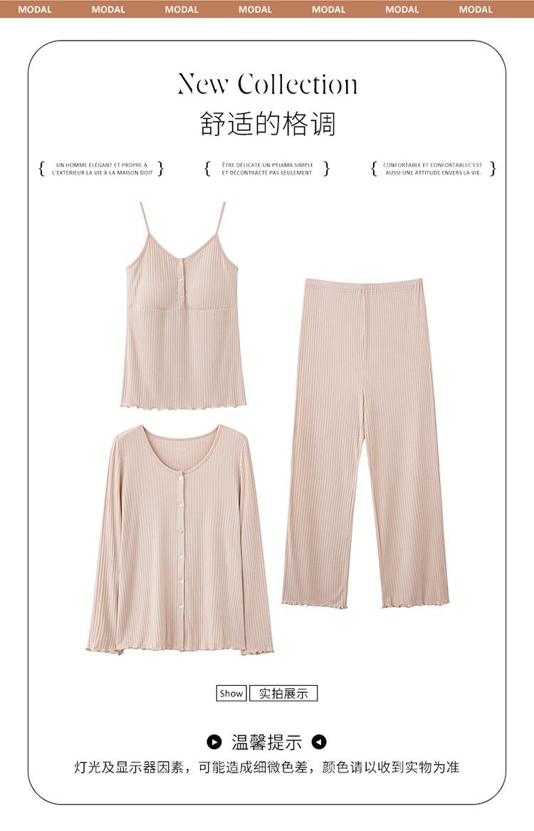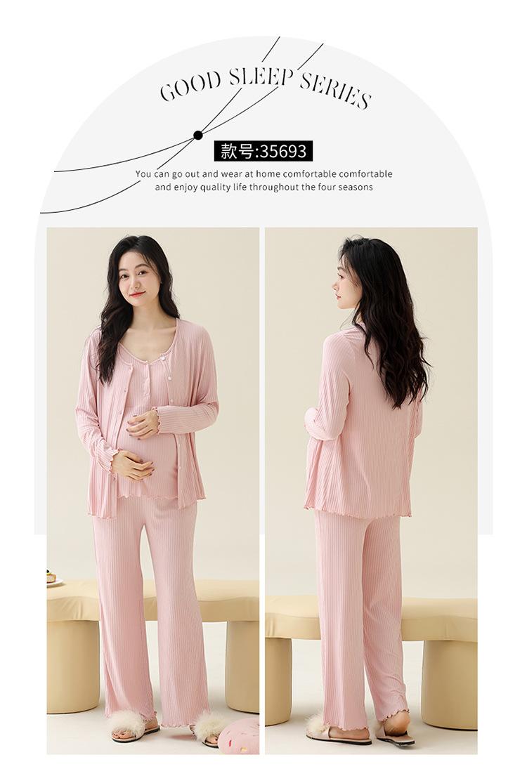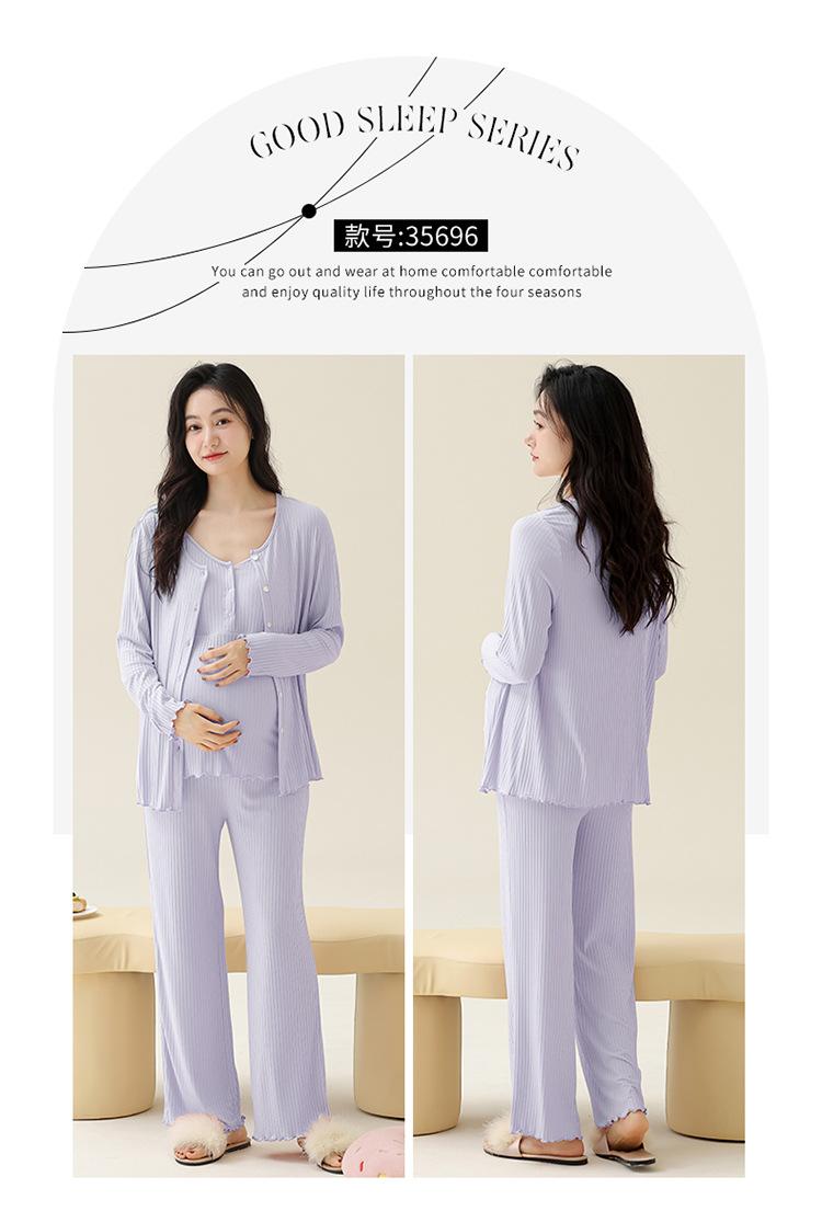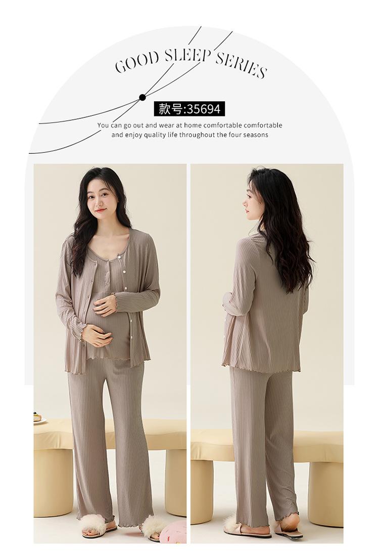 Pijamas de lactancia posparto finos de verano con almohadilla para el pecho para embarazadas. Ropa de casa, modal, de tres piezas.