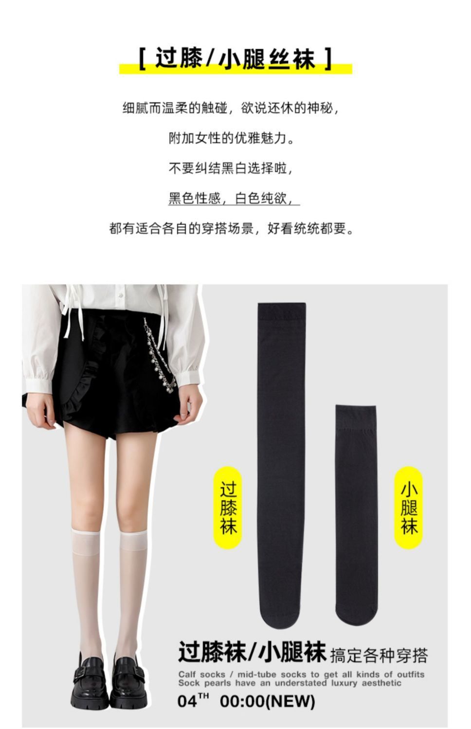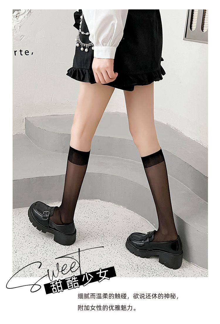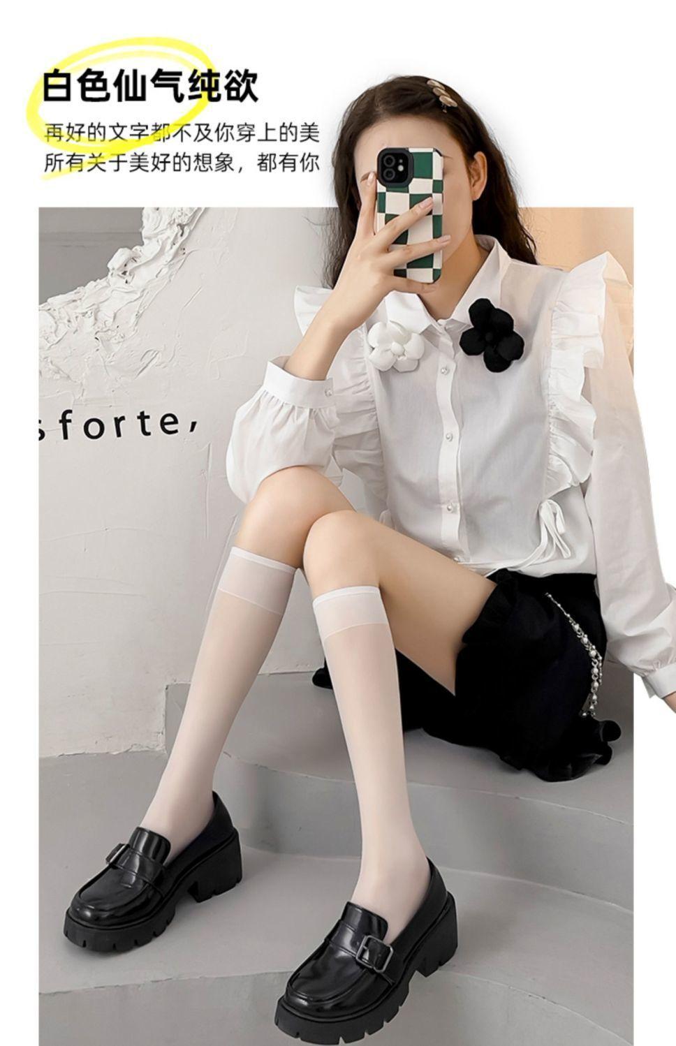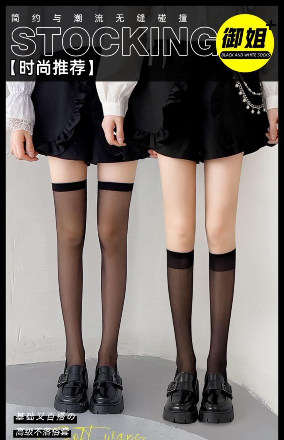 Calcetines Japoneses de Seda Hilada de Verano para Mujer Cómodos Calcetines Hasta la Rodilla Calcetines Finos para Piernas de Campus Calcetines Blancos Lolita Medias Negras
