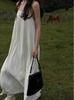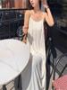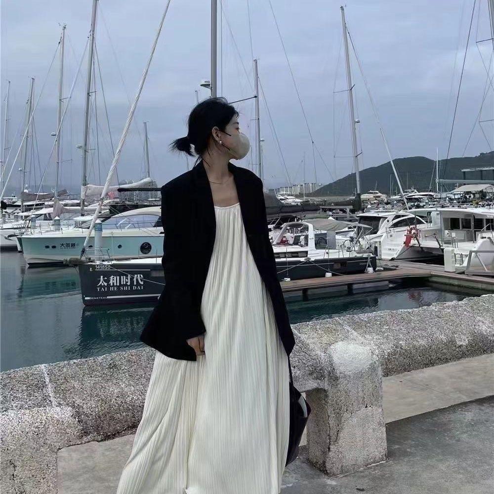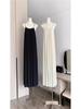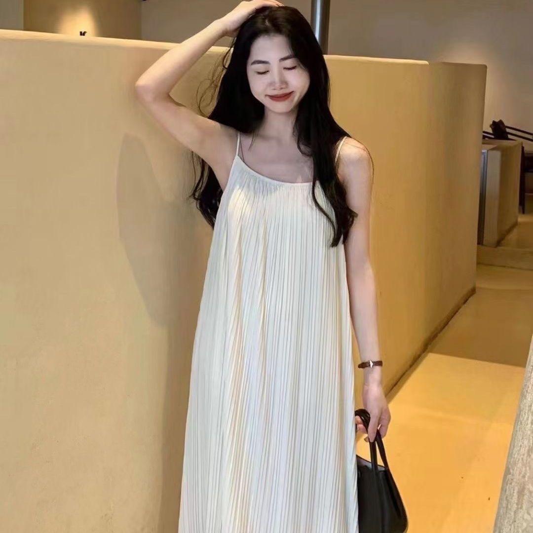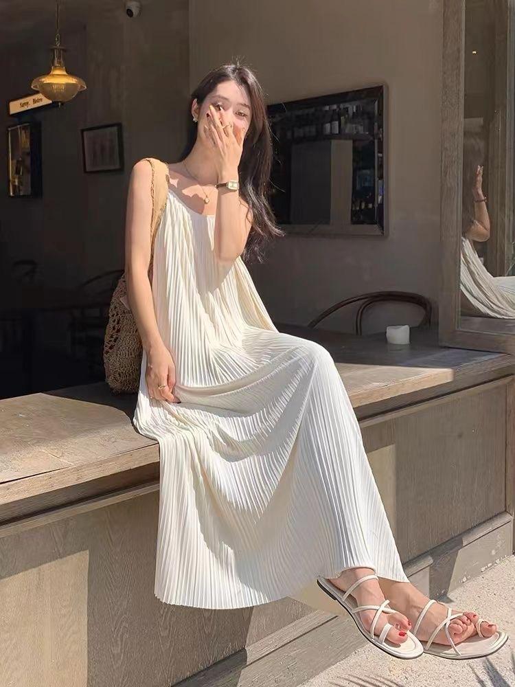 Vestido largo plisado estilo francés con tirantes, espalda hermosa, color sólido, vestido de verano, aspecto delgado y elegante para mujer, ropa exterior que combina con todo.