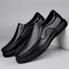 Zapatos de hombre de primera capa de piel de vaca, cuero genuino, suela gruesa, suela suave, zapatos casuales cómodos, punta redonda, zapatos casuales de cuero para negocios para hombre