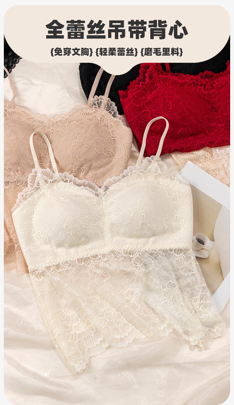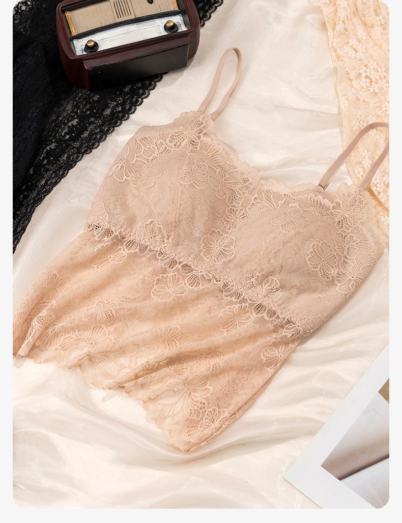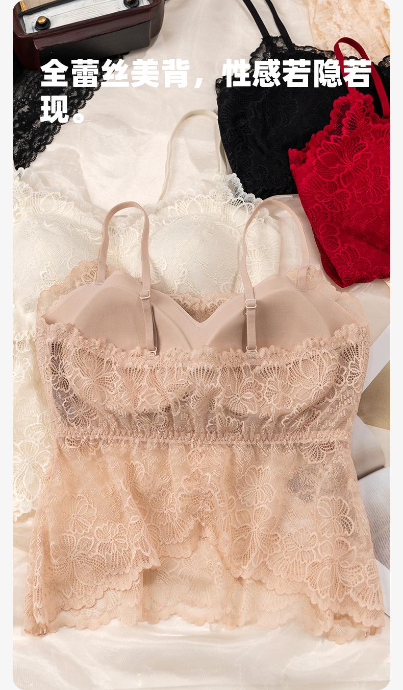 3216 Principios de Otoño Nuevo Sexy Malla Floral Tirantes Interior Copa Fija de Una Pieza Sujetador sin Costuras Encaje Espalda Hermosa