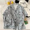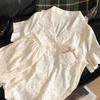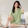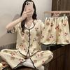 Pijama de algodón de tres piezas con diseño de nubes para mujer, cárdigan informal holgado con rayas de colores y pantalones cortos de manga corta, ropa de casa para mujer