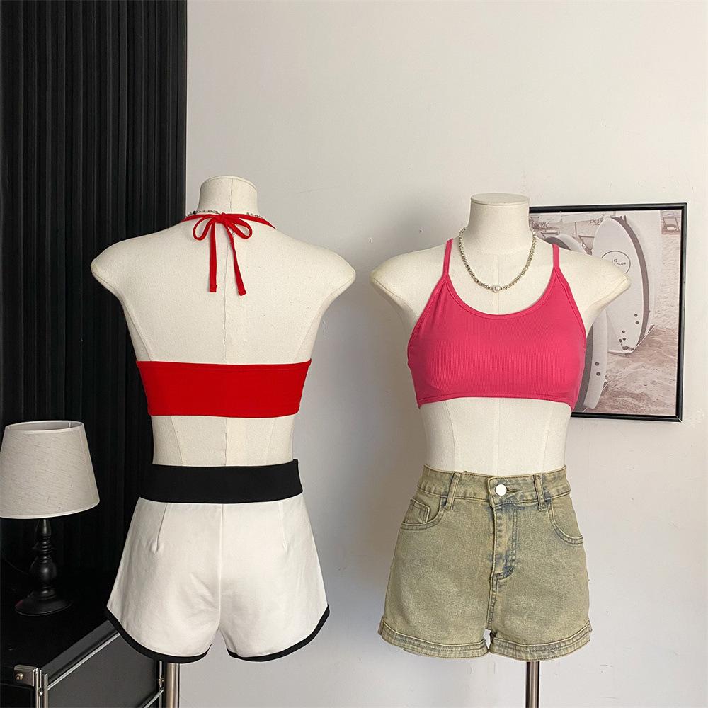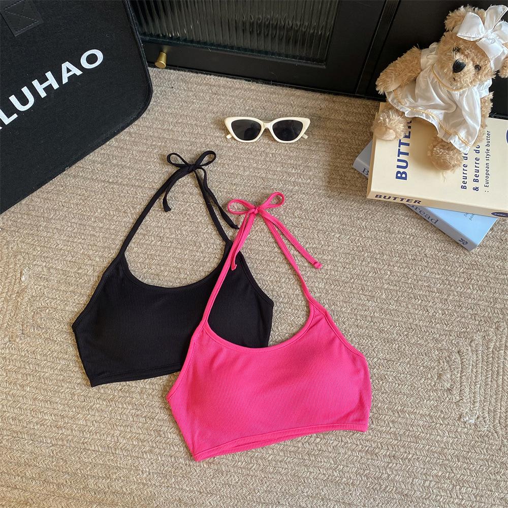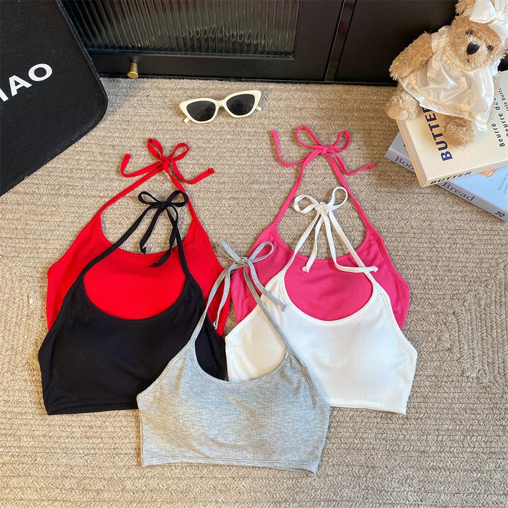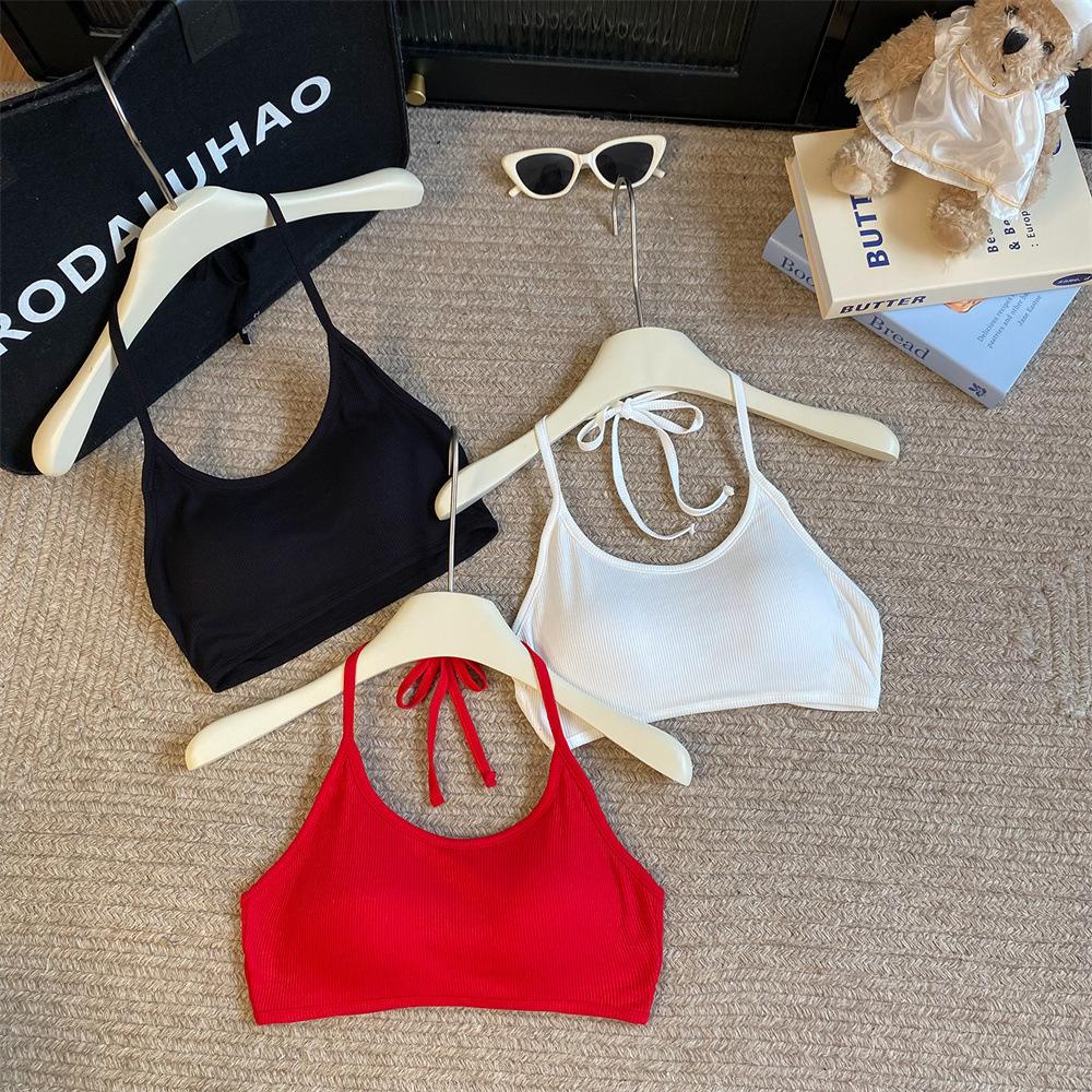 Camisola tipo camisola con copa fija y almohadilla para el pecho, estilo Spice Girl, con escote halter, espalda descubierta y gran interior, para mujer, con tubo cruzado muy sexy.