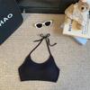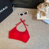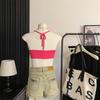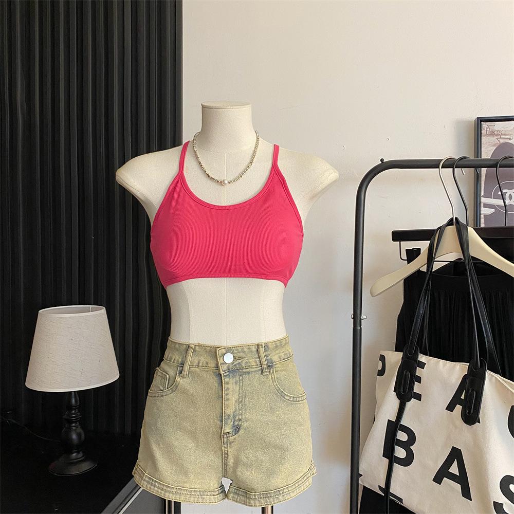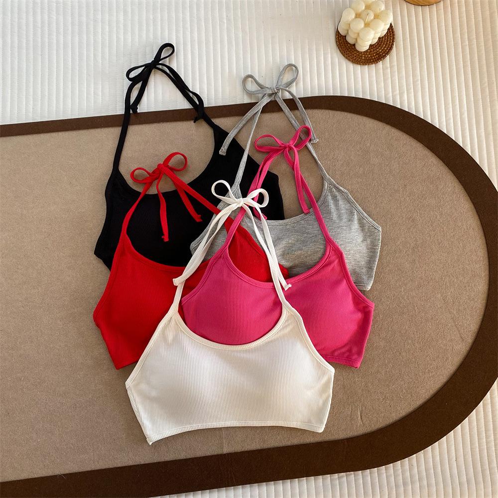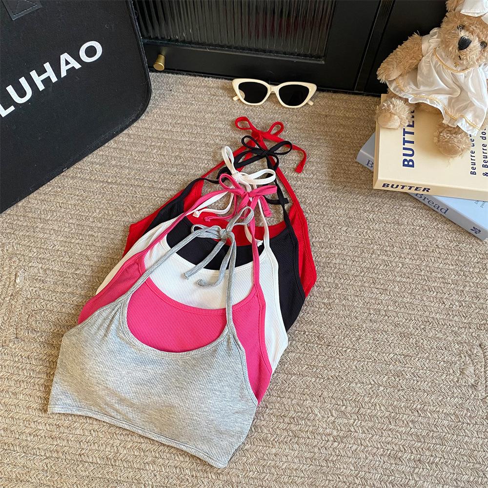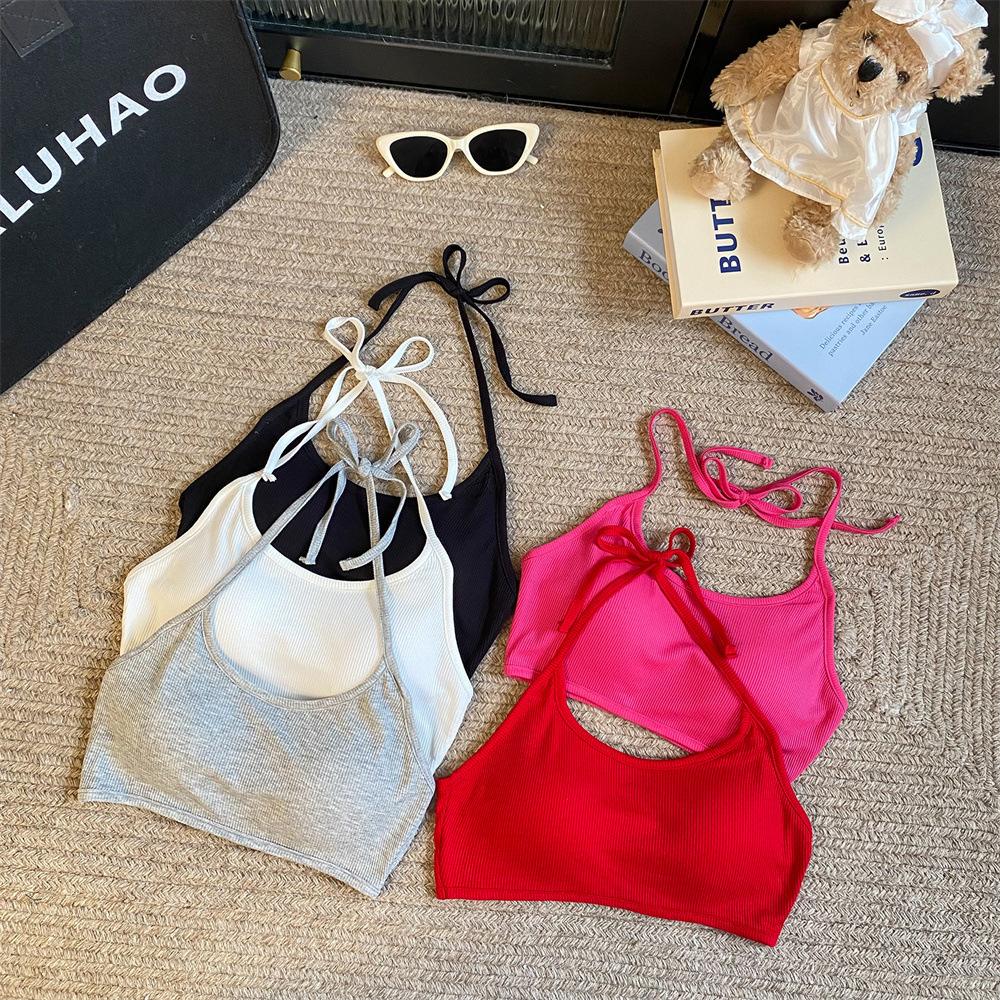 Camisola tipo camisola con copa fija y almohadilla para el pecho, estilo Spice Girl, con escote halter, espalda descubierta y gran interior, para mujer, con tubo cruzado muy sexy.