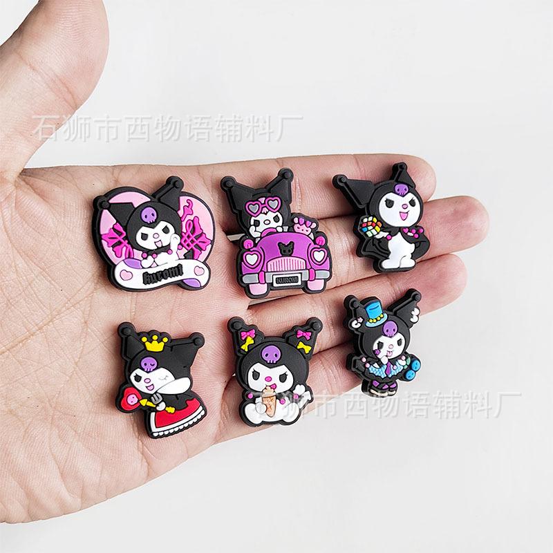 Zapatos de cueva de Sanrio, zapatos, flores, accesorios de bricolaje, hebilla de zapato, hebilla decorativa de goma suave de pvc con dibujos tridimensionales de perro Cinnamomum Kulomi
