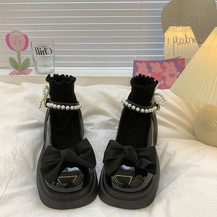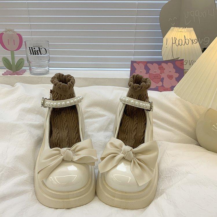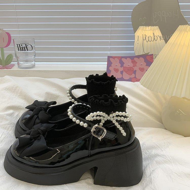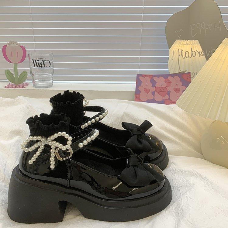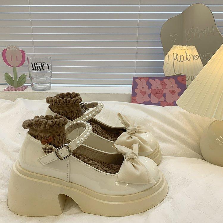 Zapatos Mary Jane de Estilo Británico para Mujer 2024 Otoño Nuevo Tacón Grueso Modernos y Fáciles de Combinar Zapatos Pequeños de Cuero con Lazo Retro