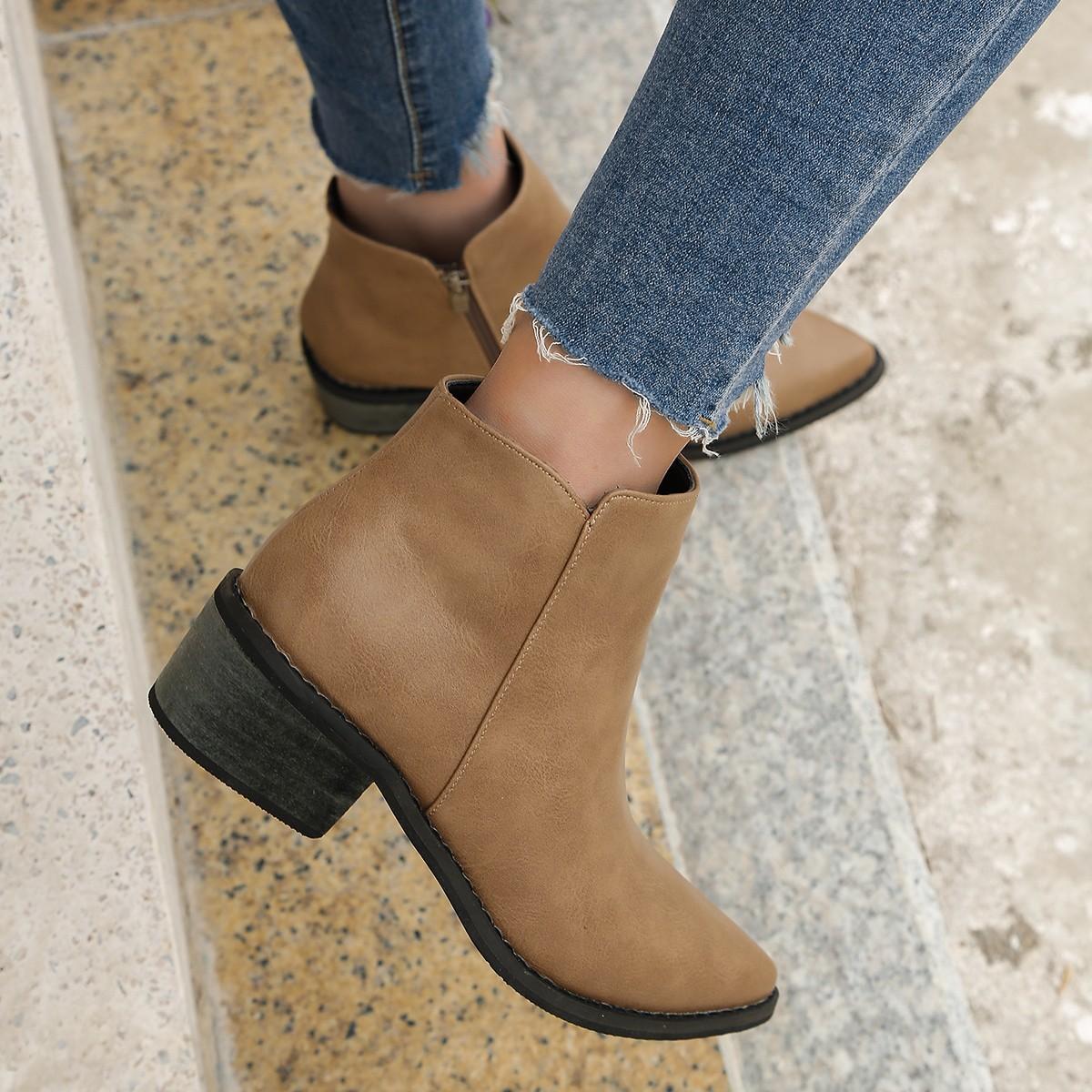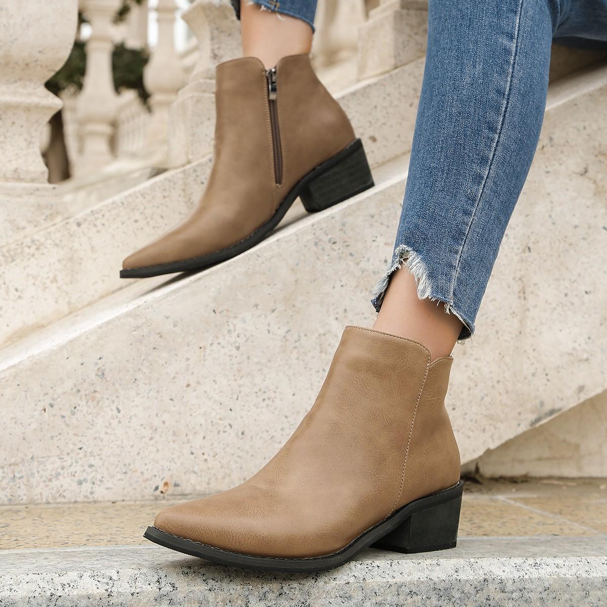 Botas nuevas de mujer de otoño e invierno de comercio exterior 2024, botas de cuero con cremallera lateral, estilo europeo y americano, botas de moda de color sólido para mujer transfronterizas de talla grande