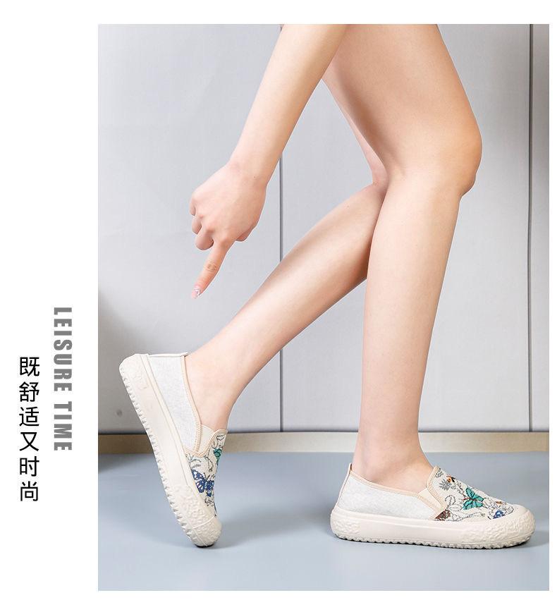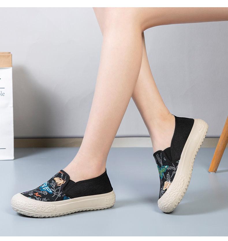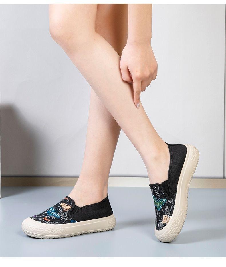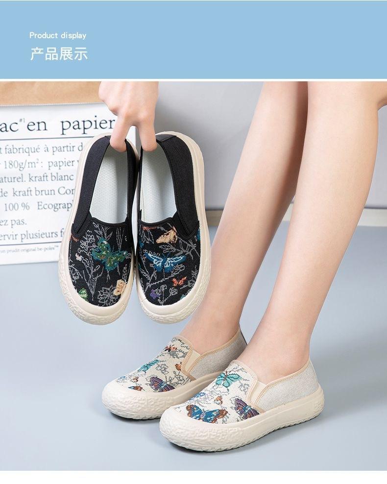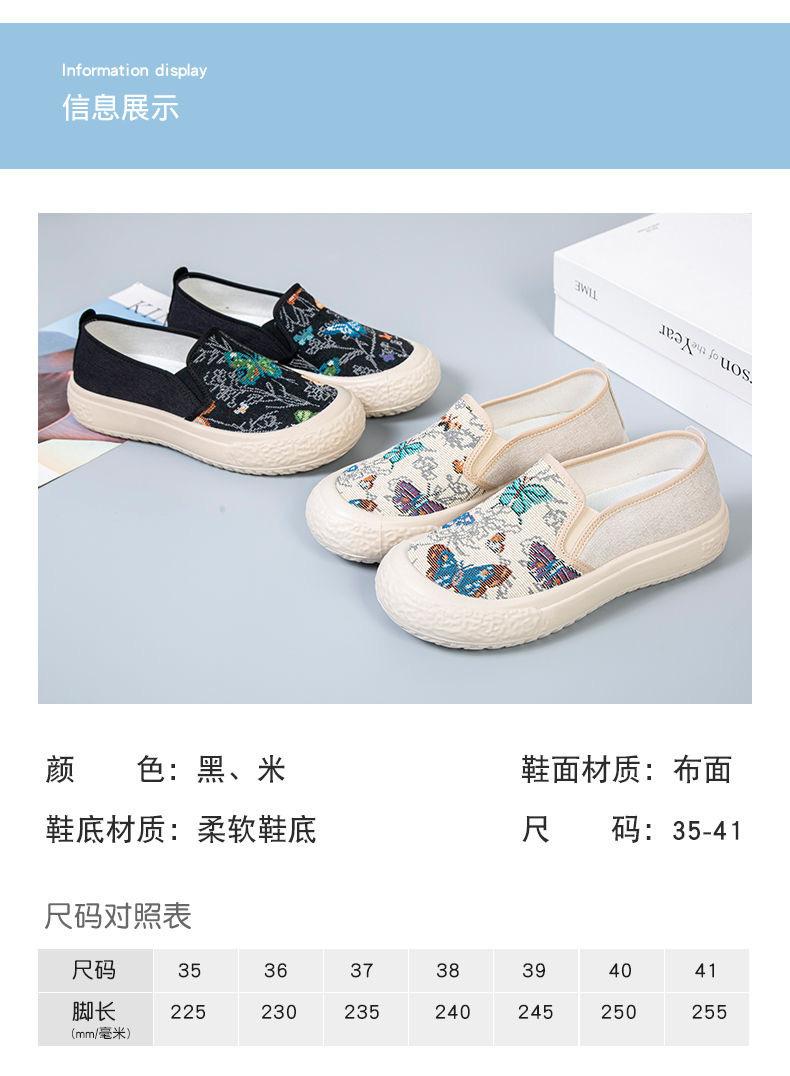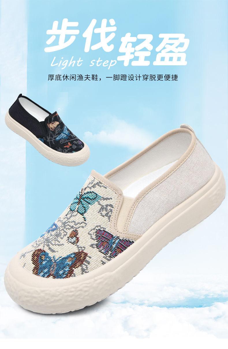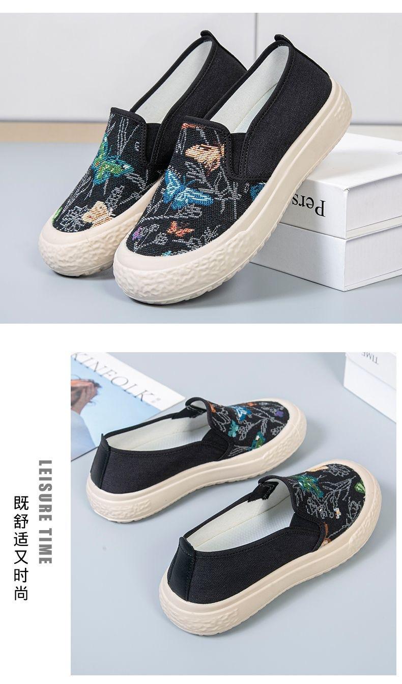 Zapatos de Tela de Pekín Antiguos Verano 2024 Nuevos Zapatos Casuales de Lona Planos para Mujer Moda Estudiantes Tacón Alto Suela Blanda Zapatos Estilo Étnico