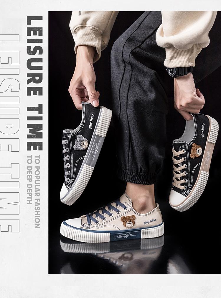 Zapatos de lona de oso para hombre, verano 2023, nuevos, transpirables, combinables, de moda, de caña baja, informales, para estudiantes, zapatos de tela, zapatos de moda.