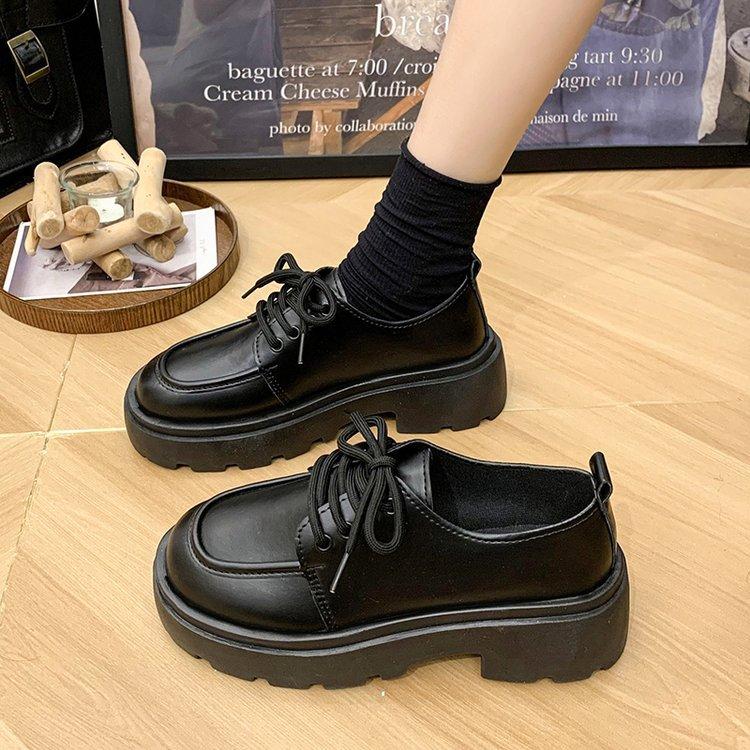 Zapatos de cuero de suela gruesa estilo británico para mujer, mocasines versátiles, primavera 2024 nuevos, zapatos Mary Jane de suela blanda sin cordones