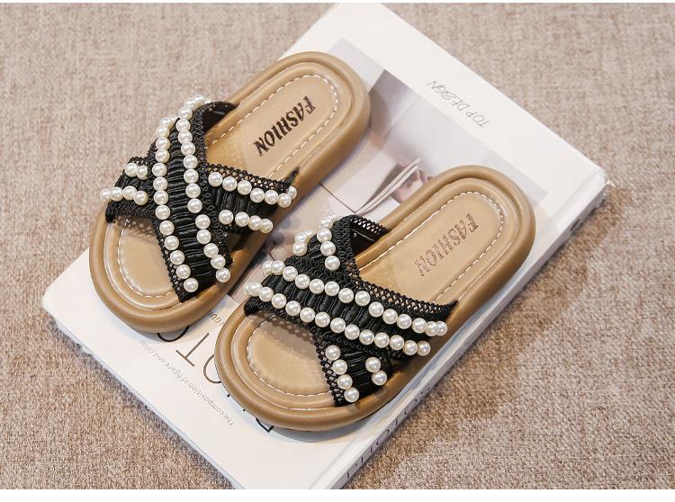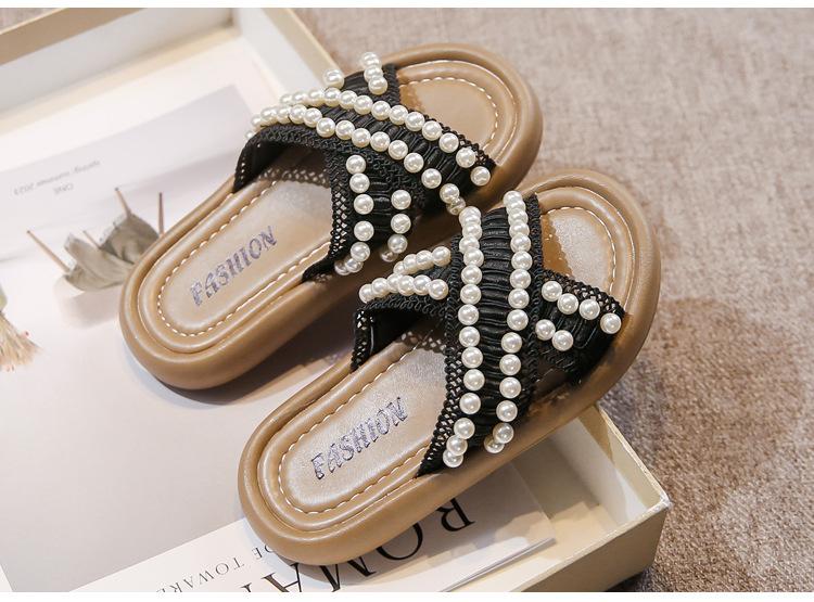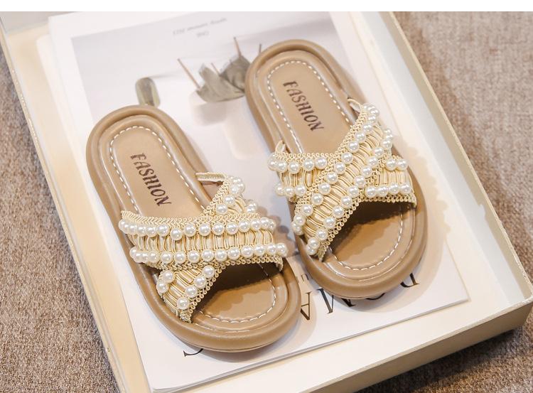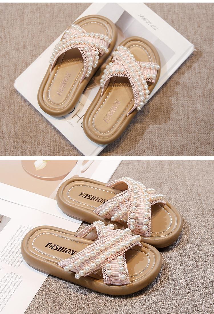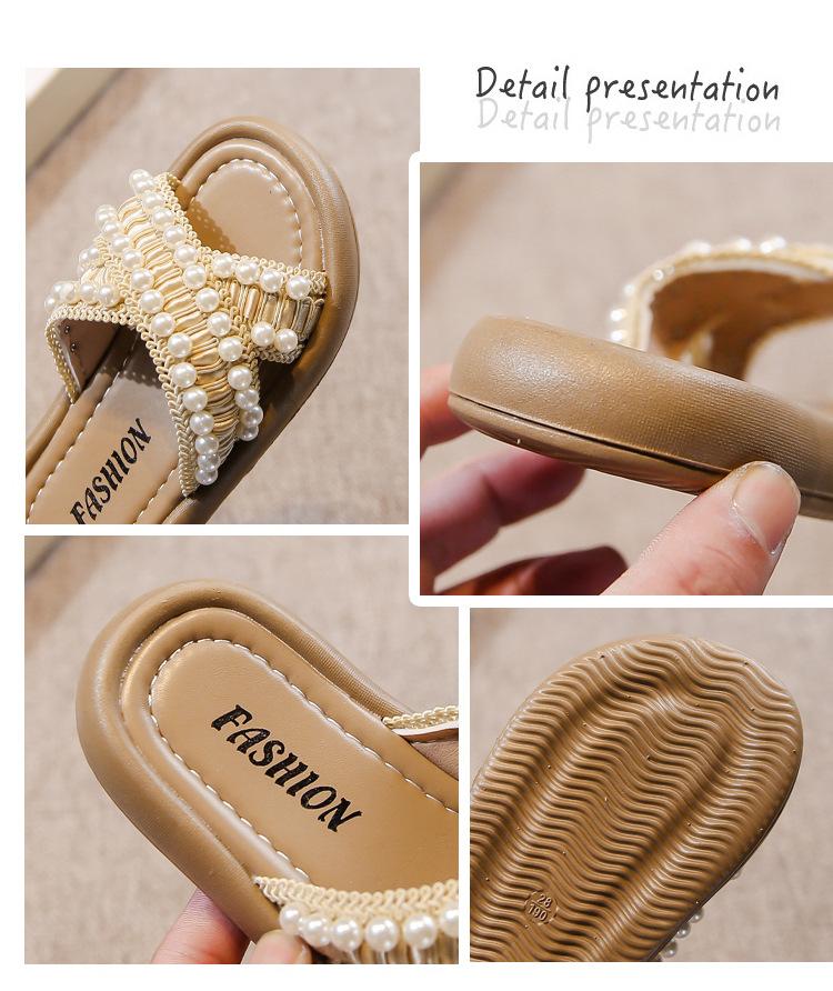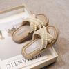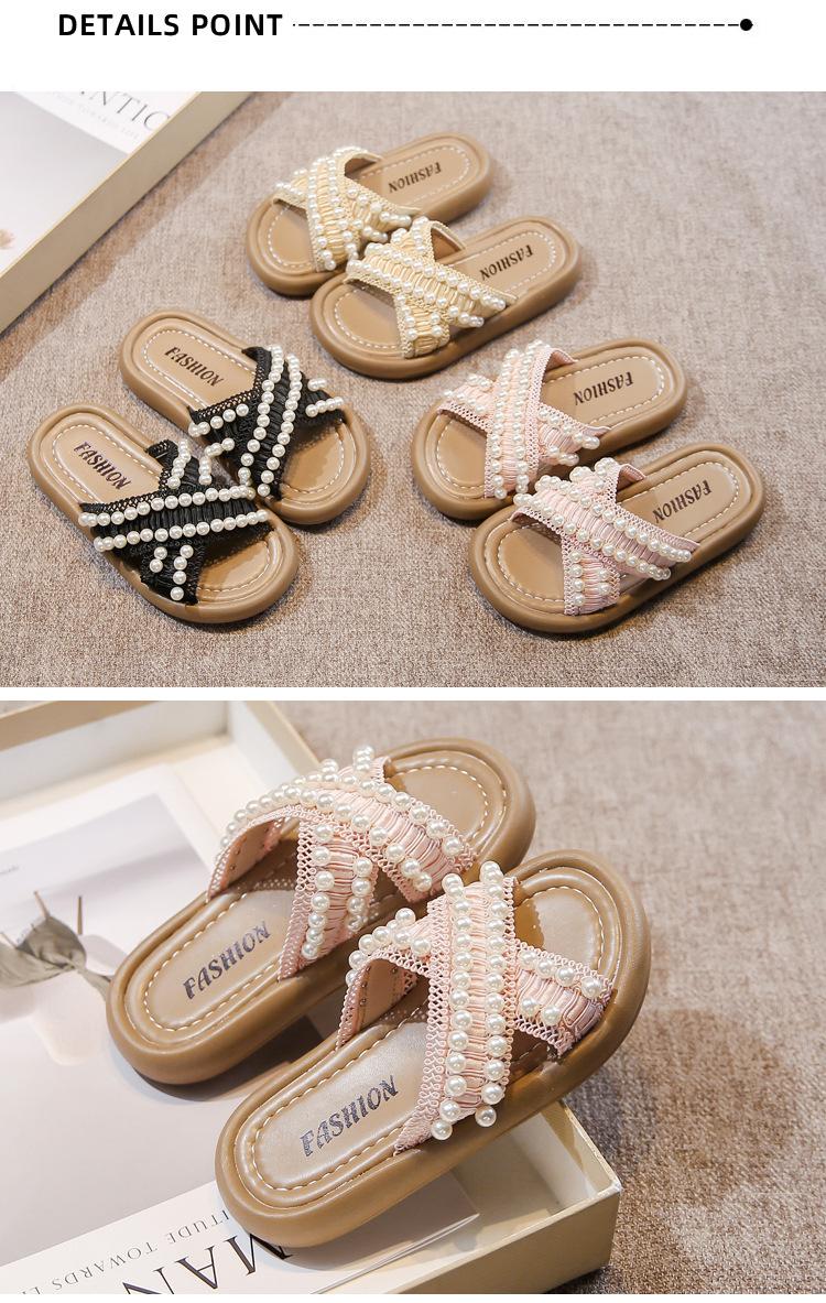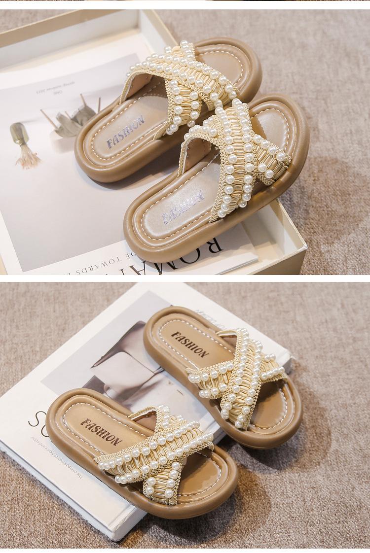 Sandalias y pantuflas de verano 2024 para niñas, zapatos de princesa con perlas que combinan con todo, elegantes pantuflas para niñas pequeñas.