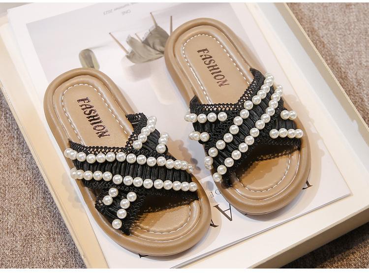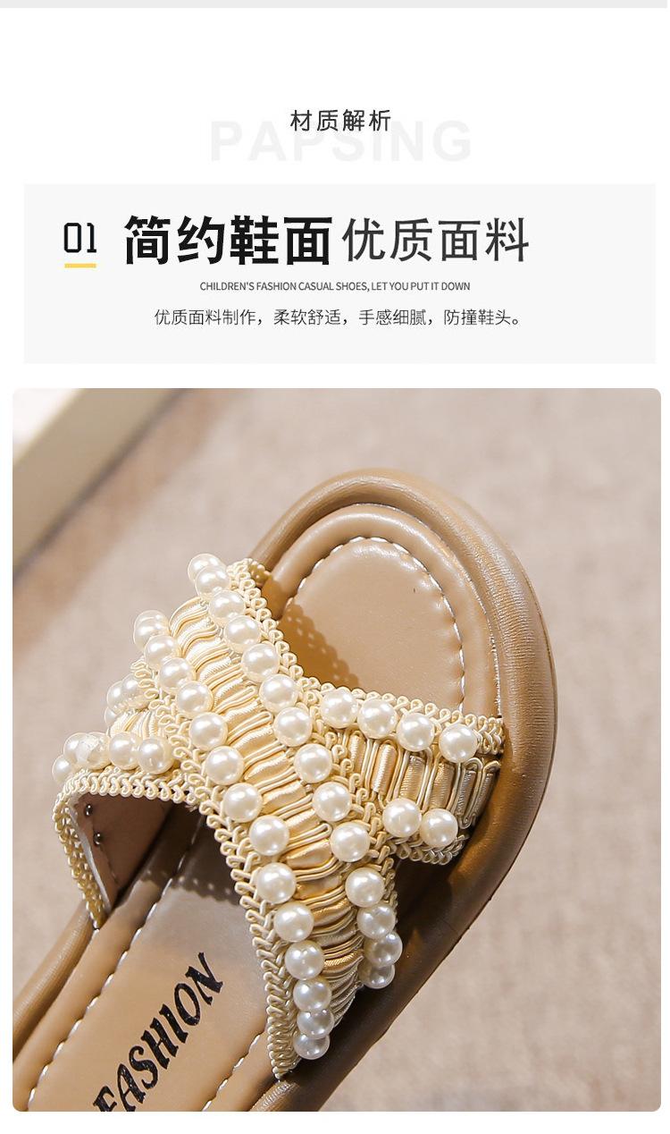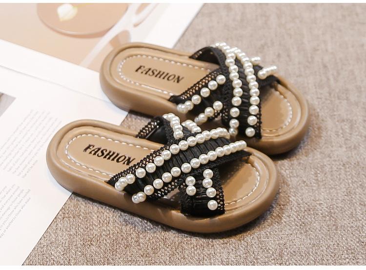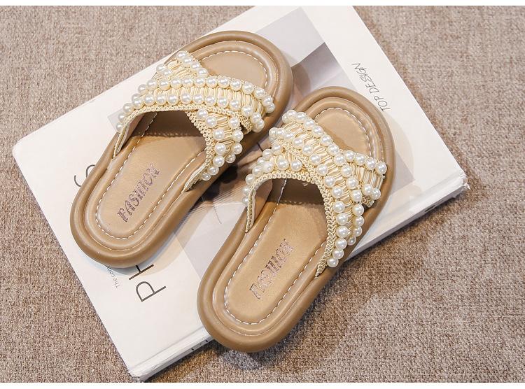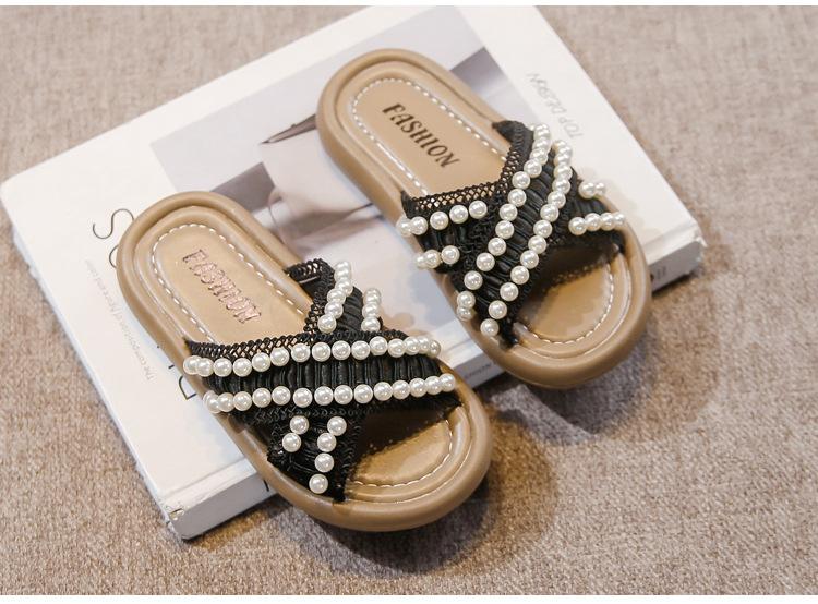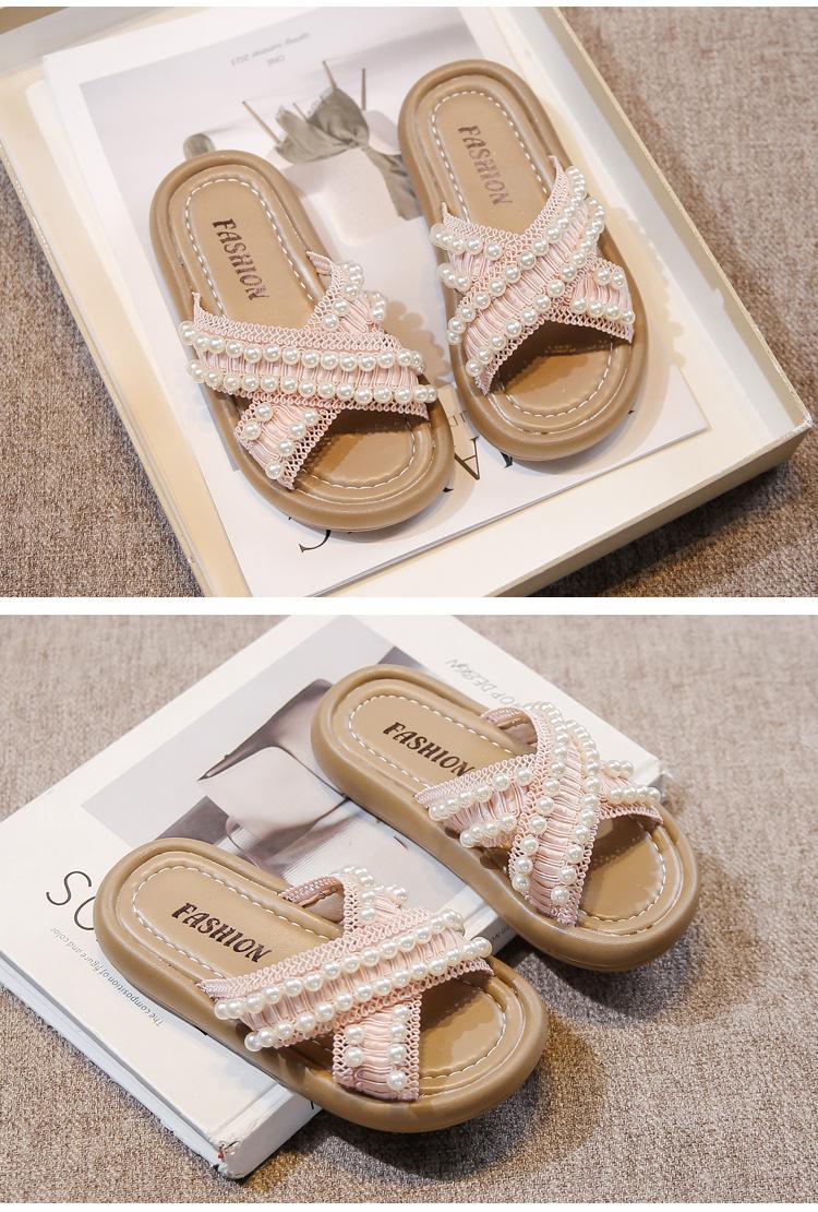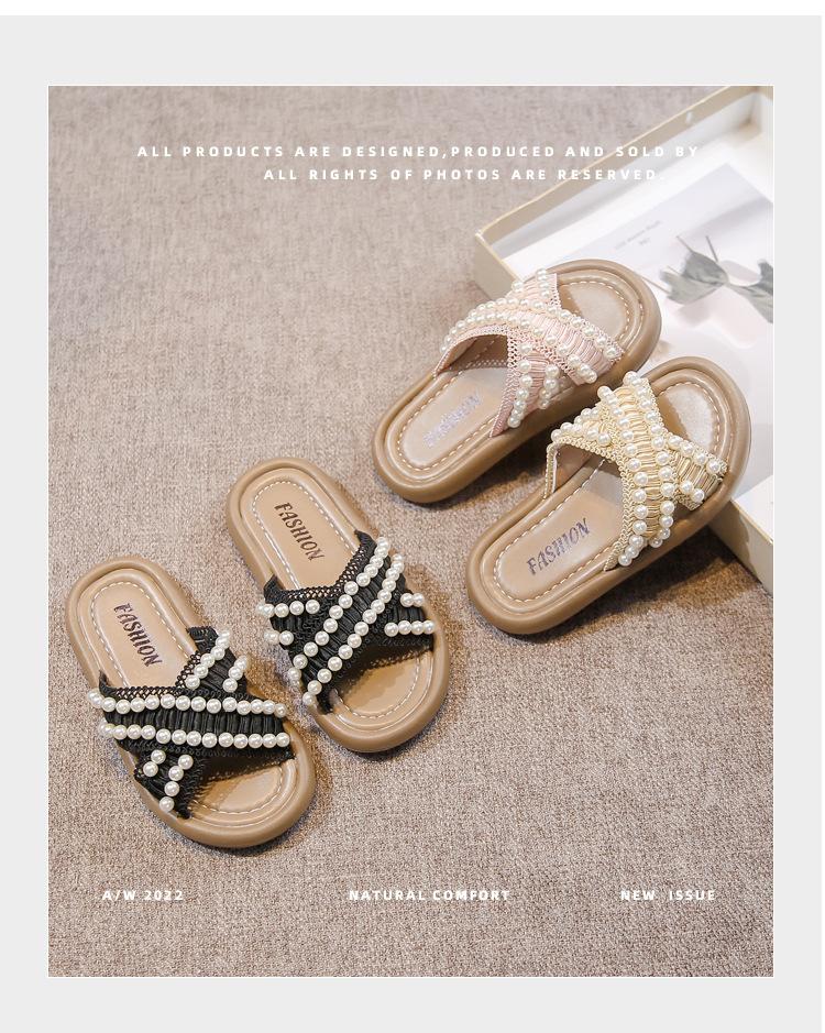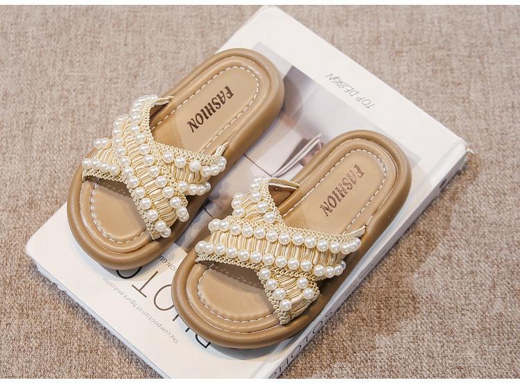 Sandalias y pantuflas de verano 2024 para niñas, zapatos de princesa con perlas que combinan con todo, elegantes pantuflas para niñas pequeñas.