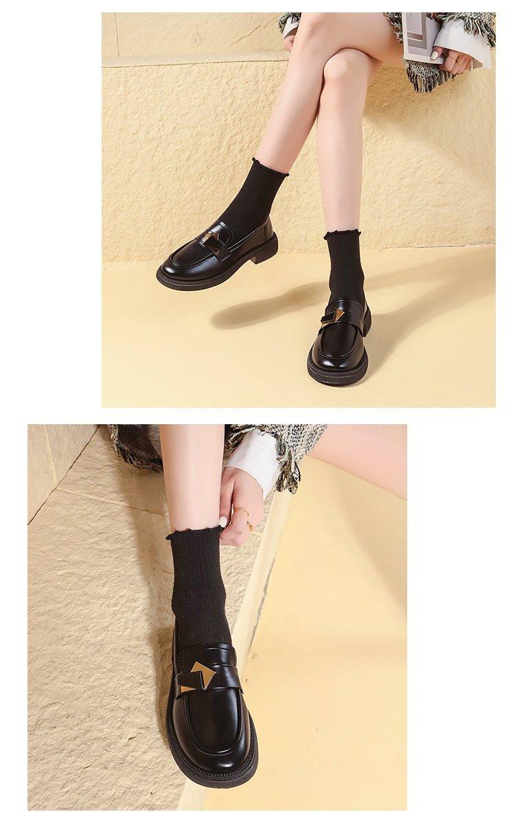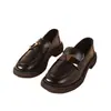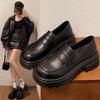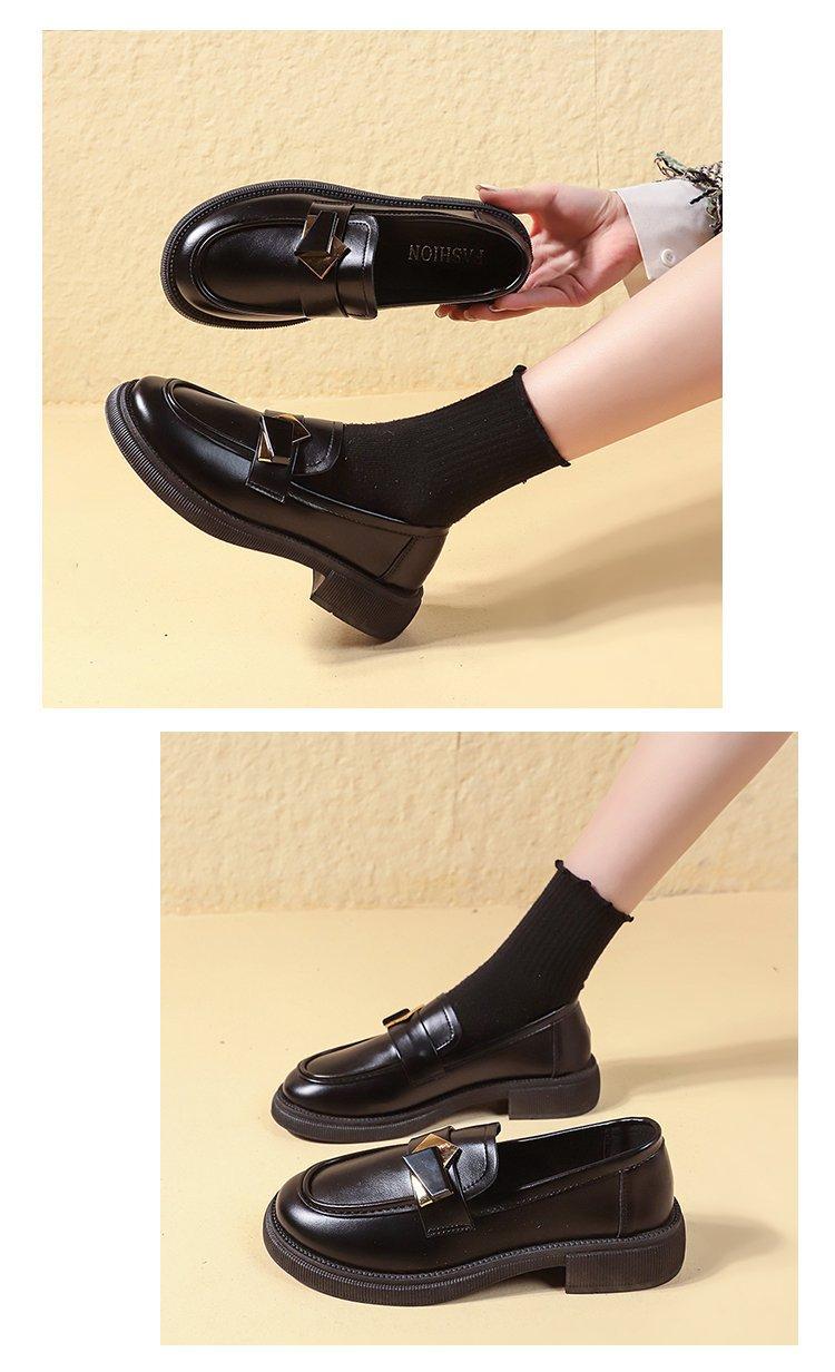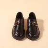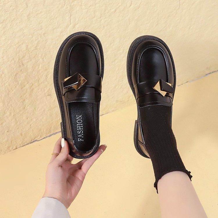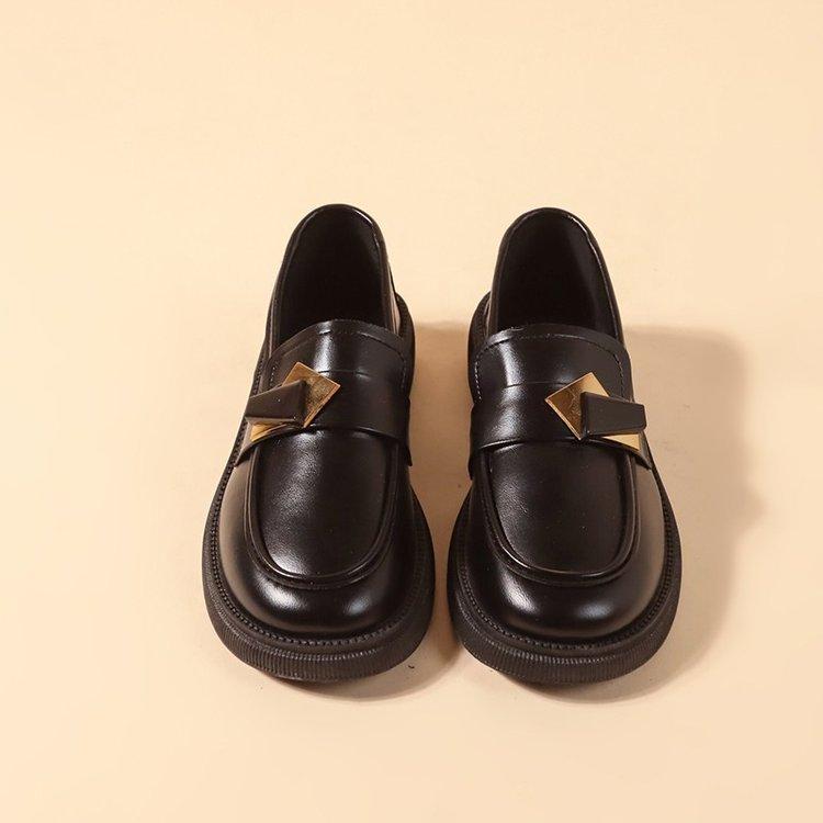 Zapatos pequeños de cuero con suela gruesa para mujer 2024, nuevos mocasines de comercio exterior de un solo paso con tacón grueso Joker de estilo británico de moda retro