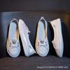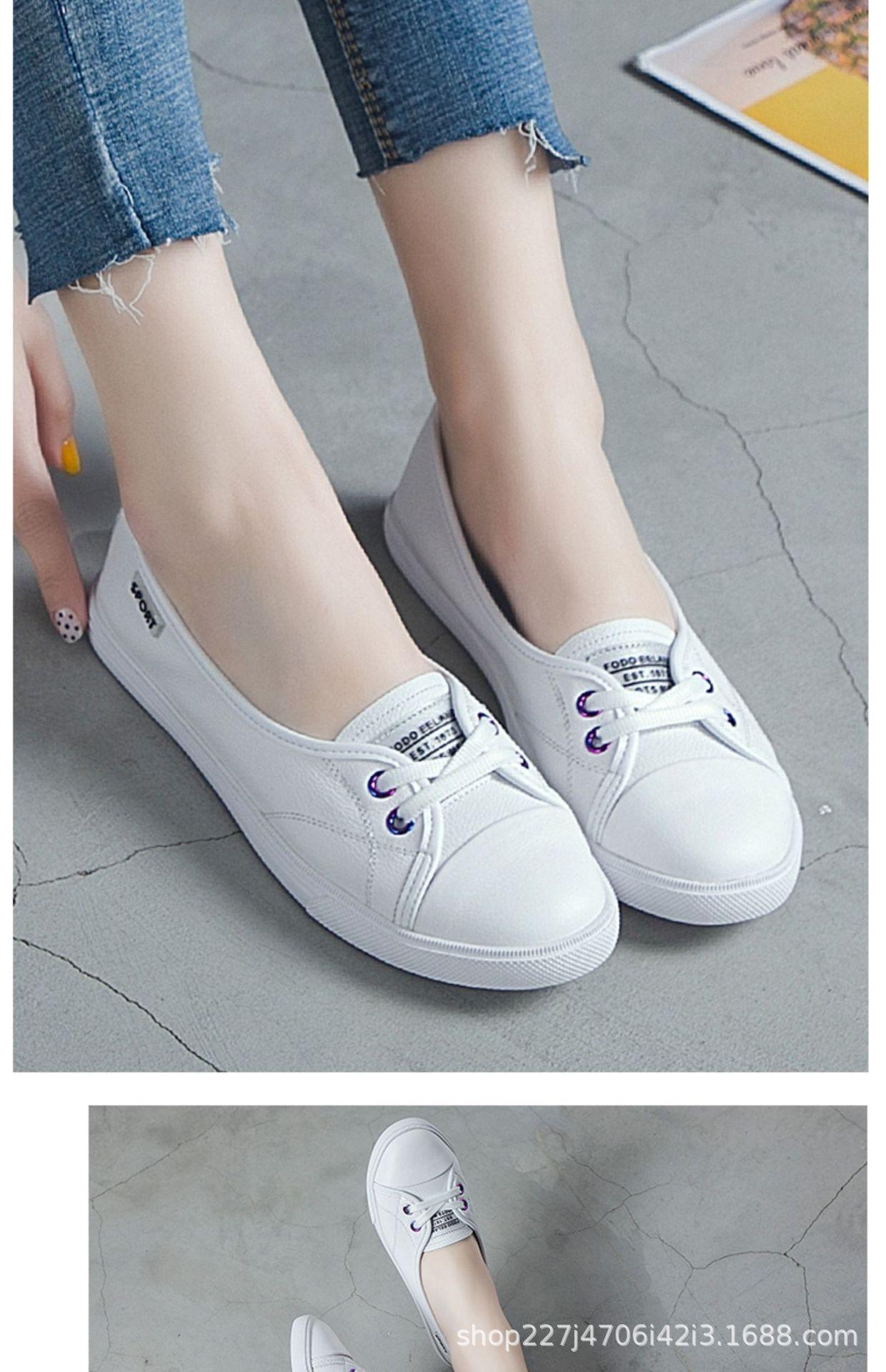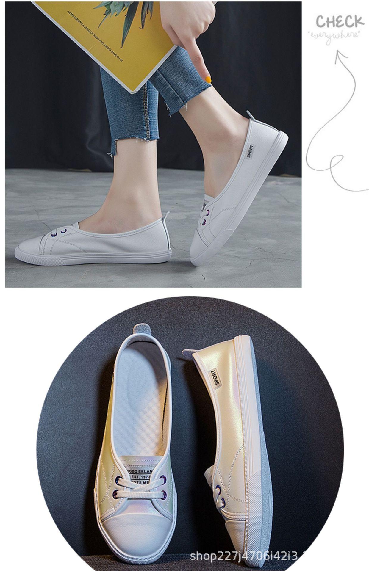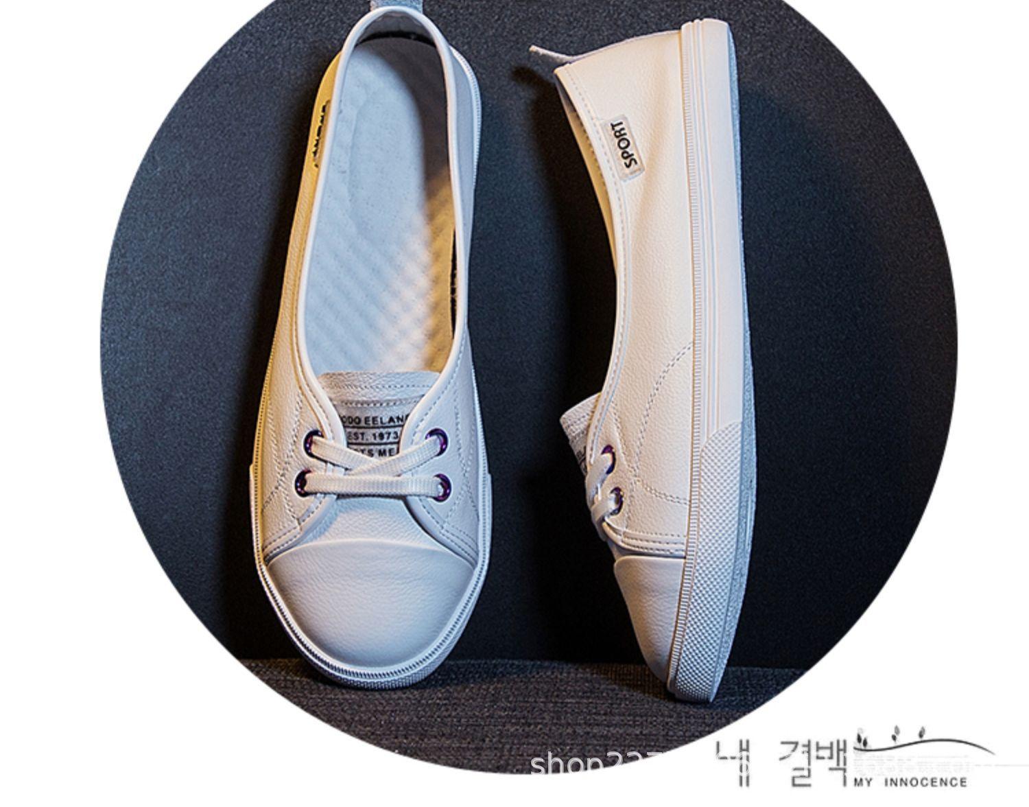 Zapatos Blancos de Cuero Genuino Dos Usos para Mujer Primavera y Otoño 2025 Nuevos Versátiles de Suela Plana Populares Look Adelgazante Slip-On Tenis Casuales para Mujer
