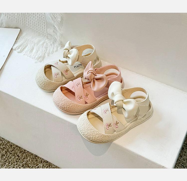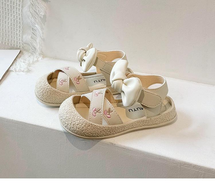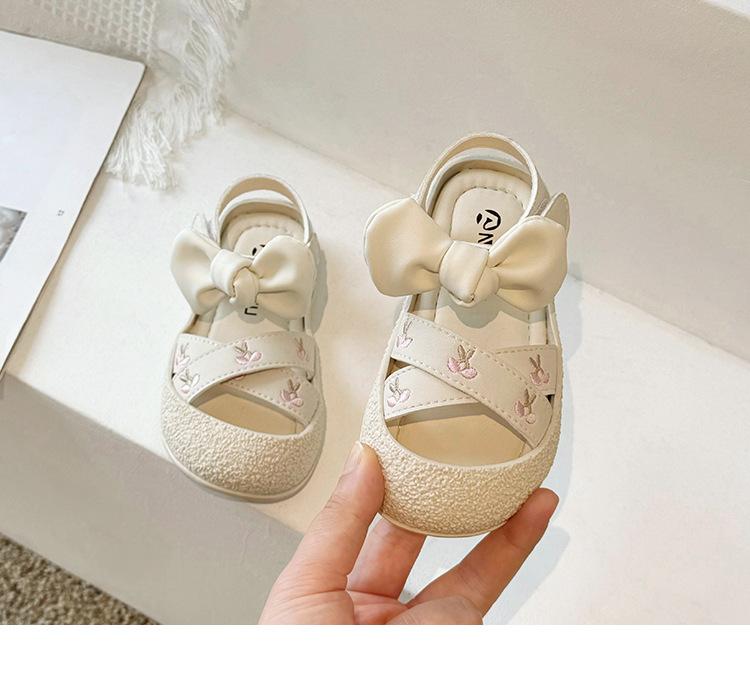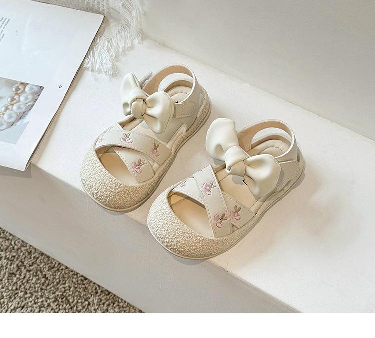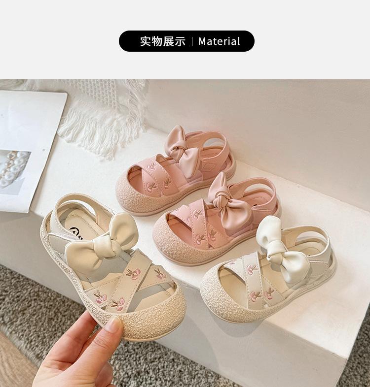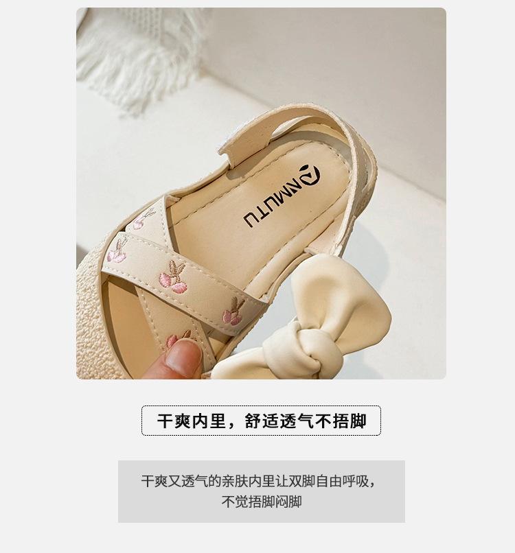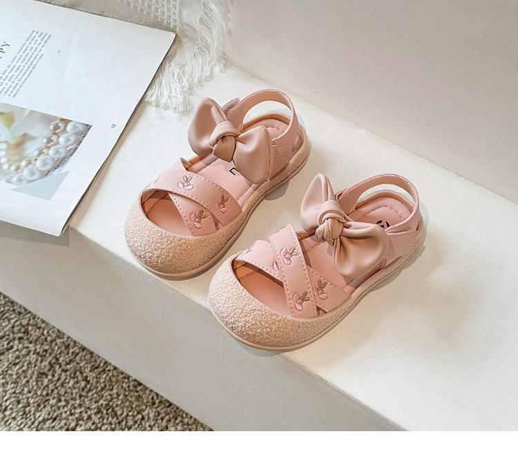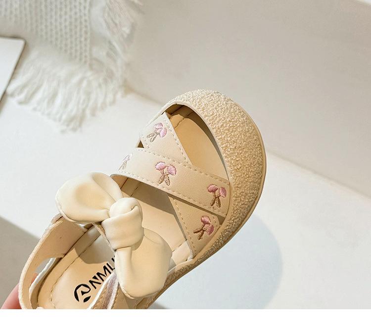 Sandalias para Niñas Verano 2024 Nuevo Estilo Coreano Explosiones Bordadas Zapatos de Princesa Suela Suave Punta Zapatos de Bebé Femeninos