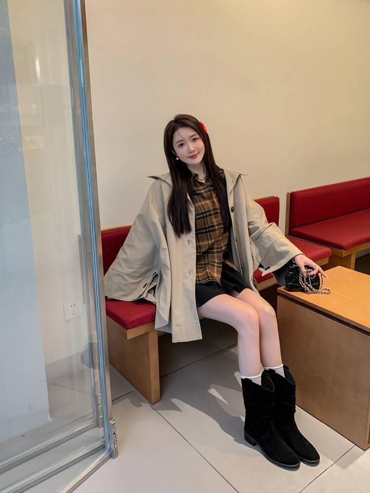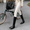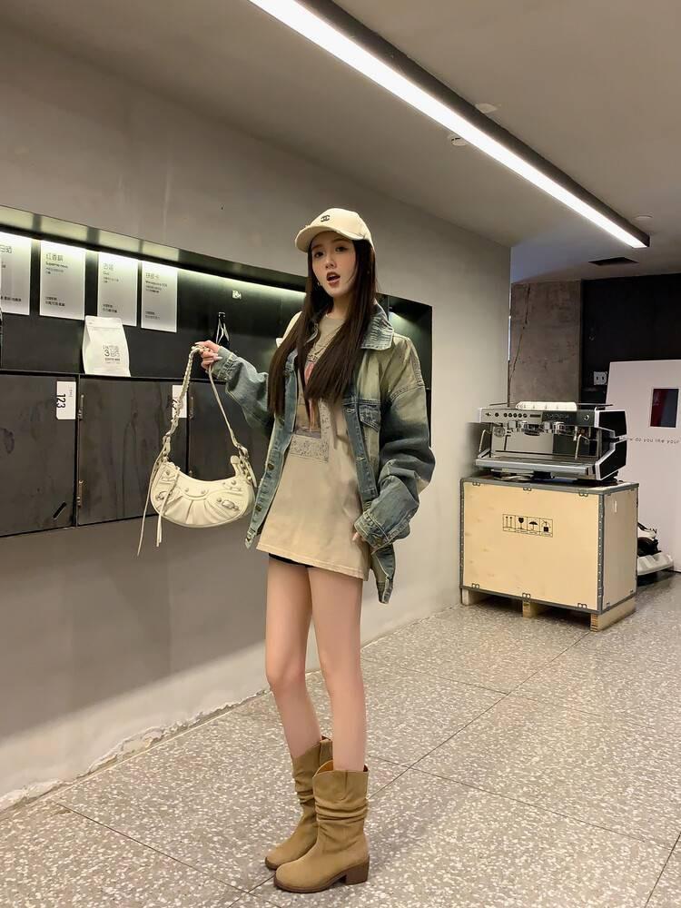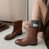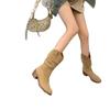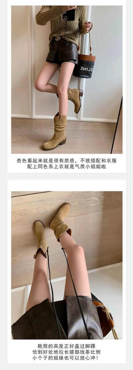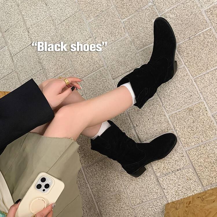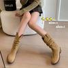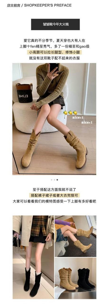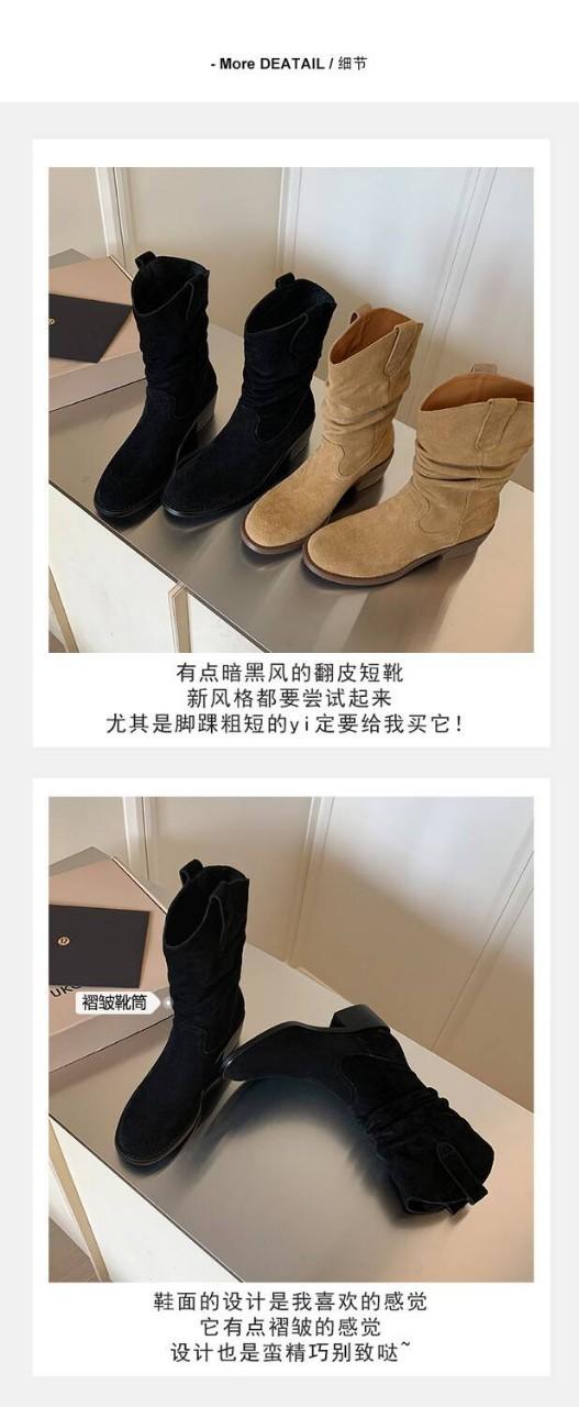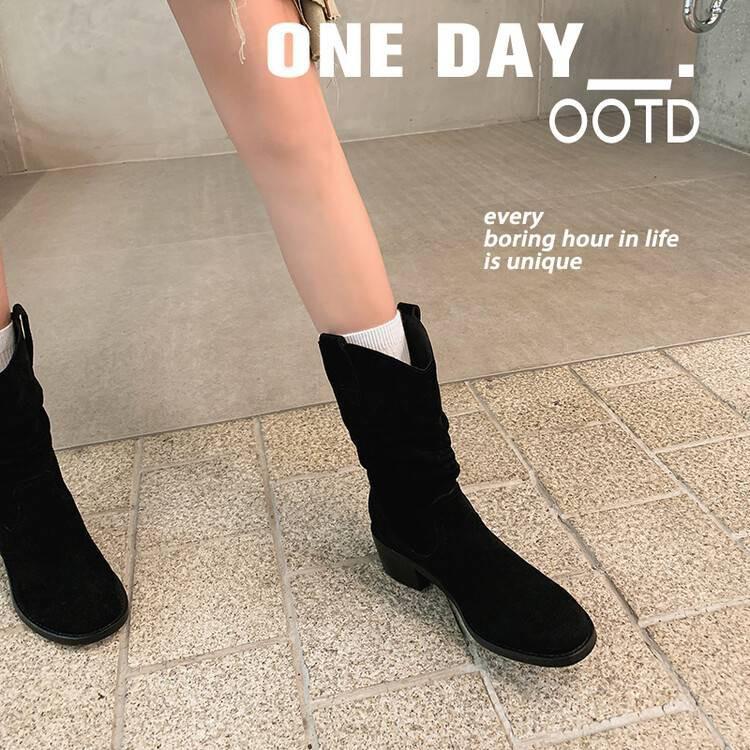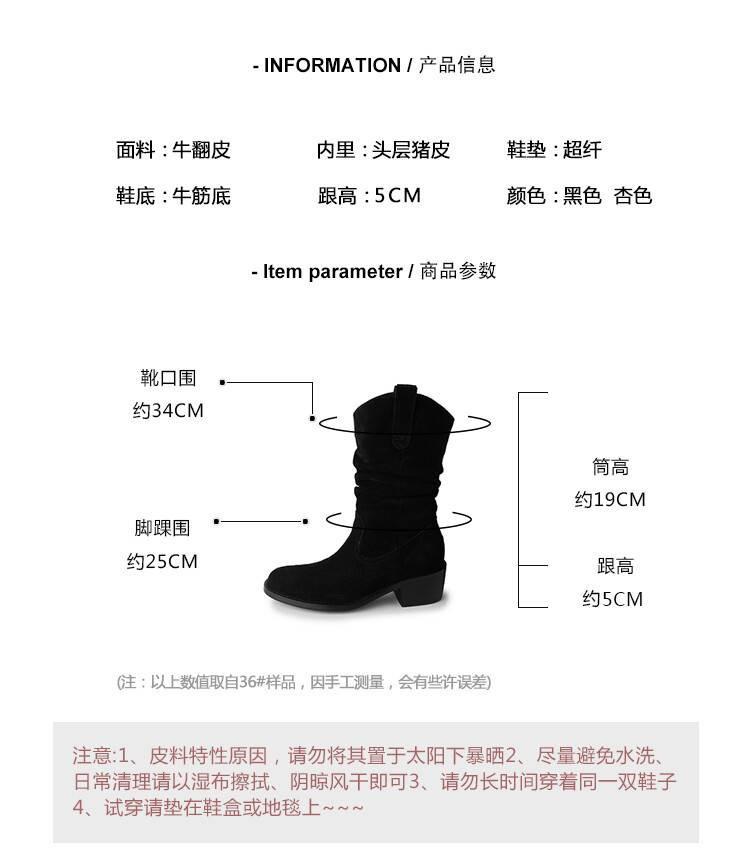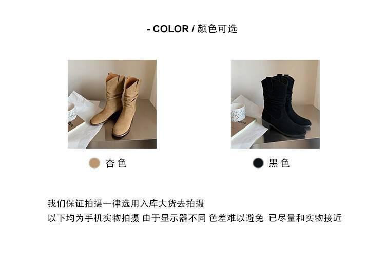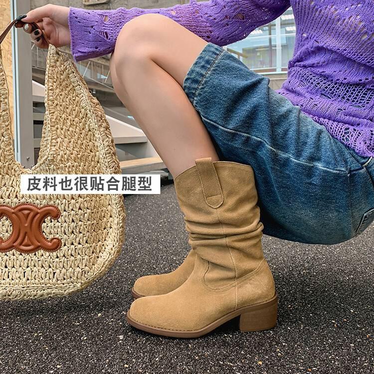Piezas de Artefacto Verano 2024 Montón Suelto Botas Vaqueras Piel de Vacuno Escarchada Tacón Grueso 5cm Aumento Botas Arrugadas