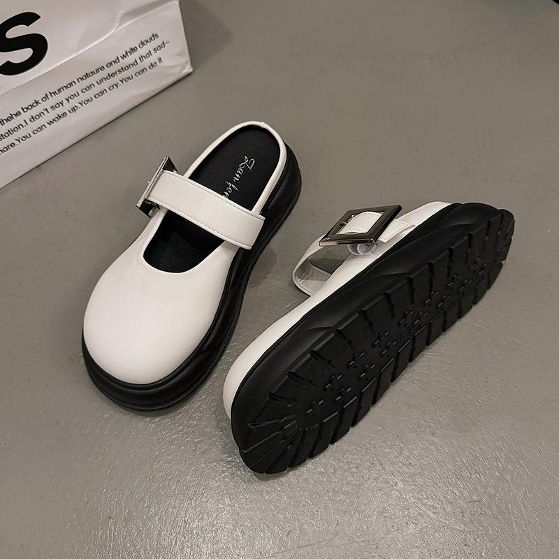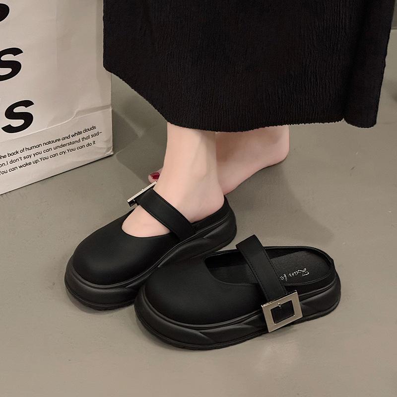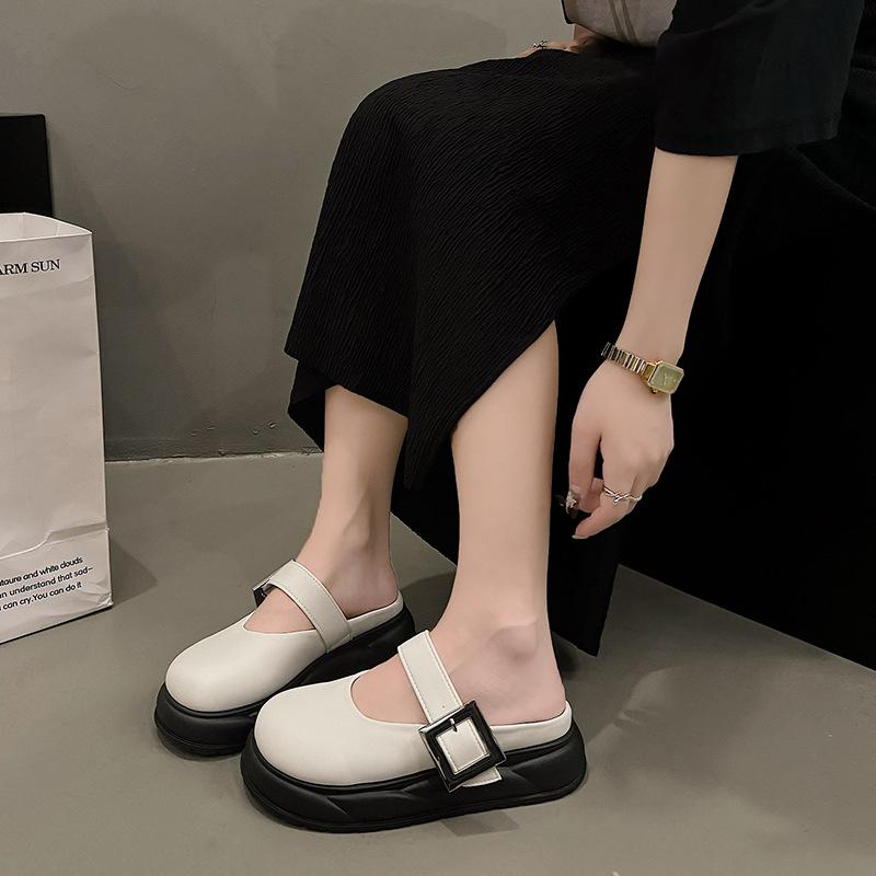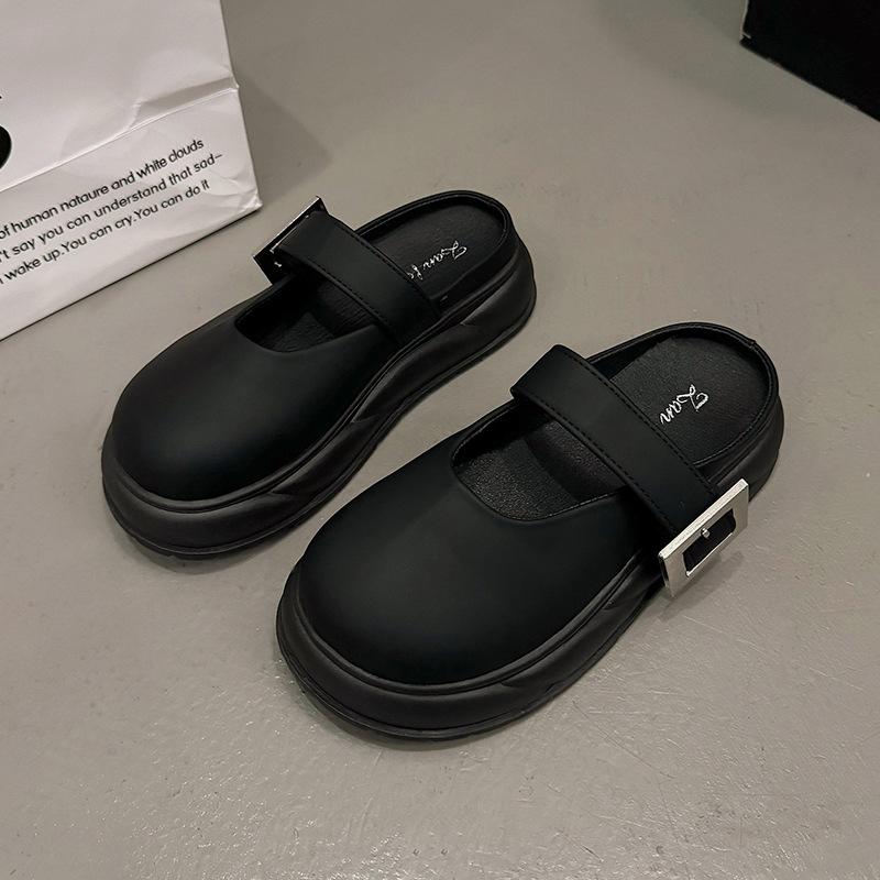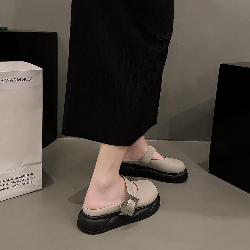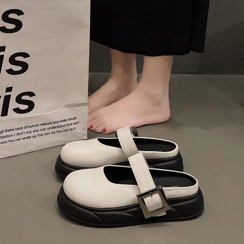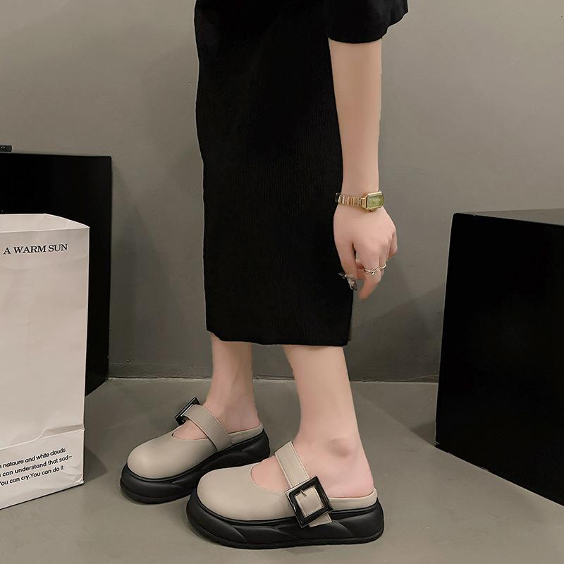 Pantuflas Baotou de suela gruesa para mujer, estilo coreano, de moda, combinables con todo, con hebilla de una sola línea, para verano de 2024.