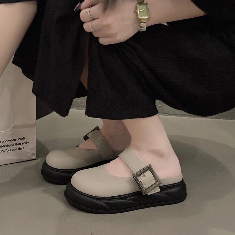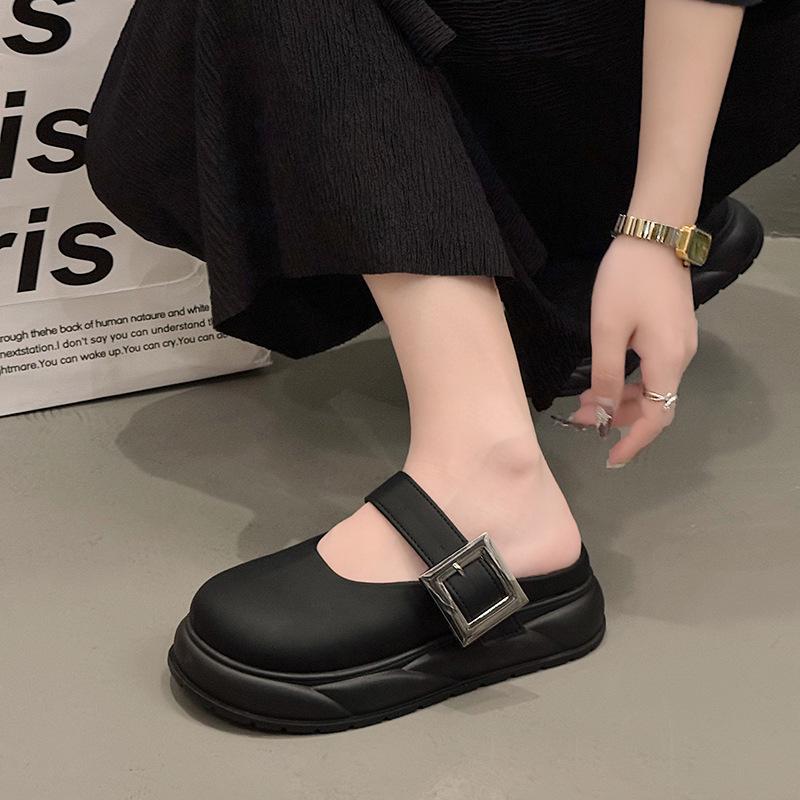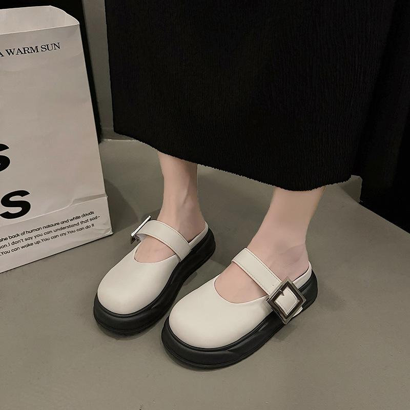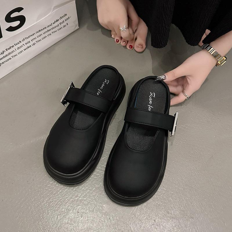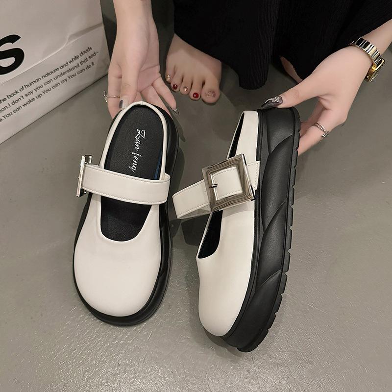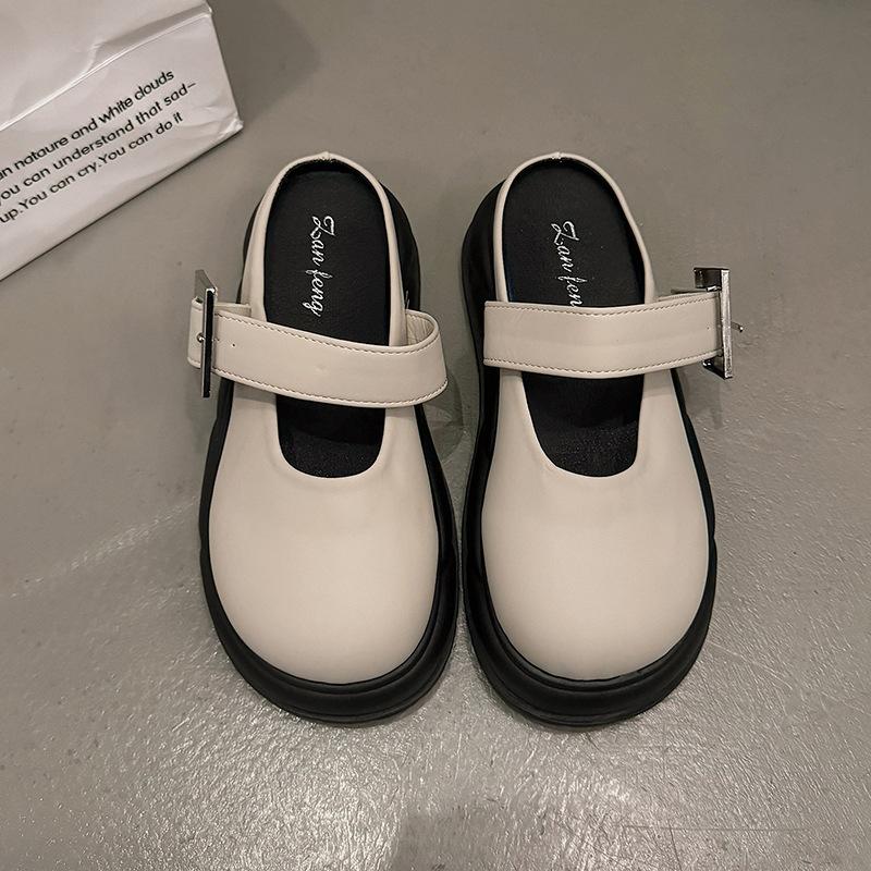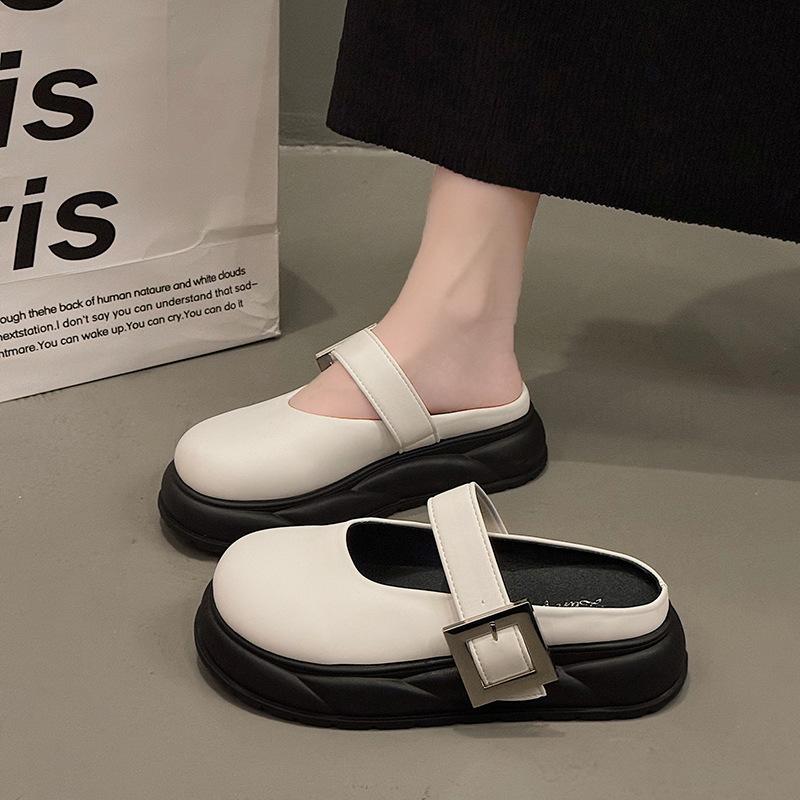 Pantuflas Baotou de suela gruesa para mujer, estilo coreano, de moda, combinables con todo, con hebilla de una sola línea, para verano de 2024.