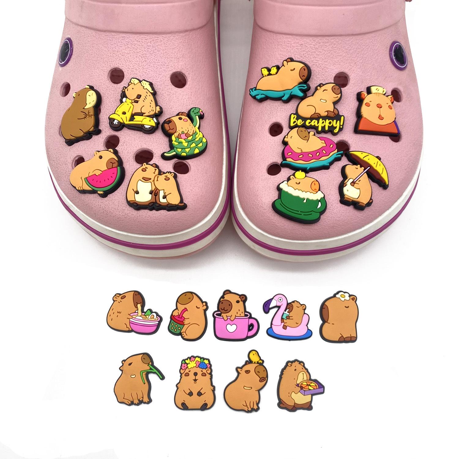 Traje lindo capibara capybara serie zapatos de agujeros zapatos accesorios de flores zapatos de agujeros accesorios diy gota de plástico pvc