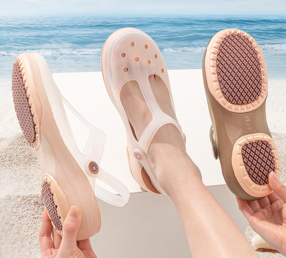 Zapatos de Plataforma con Agujeros para Mujer Verano 2024 Nuevos Zapatos de Playa de Gelatina Antideslizantes Sandalias Mary Jane Baotou