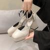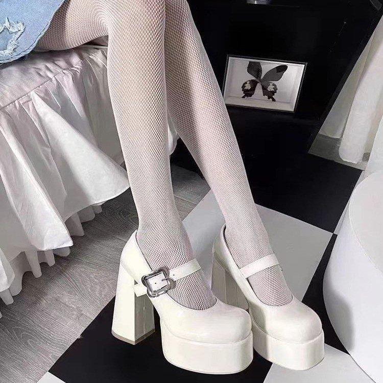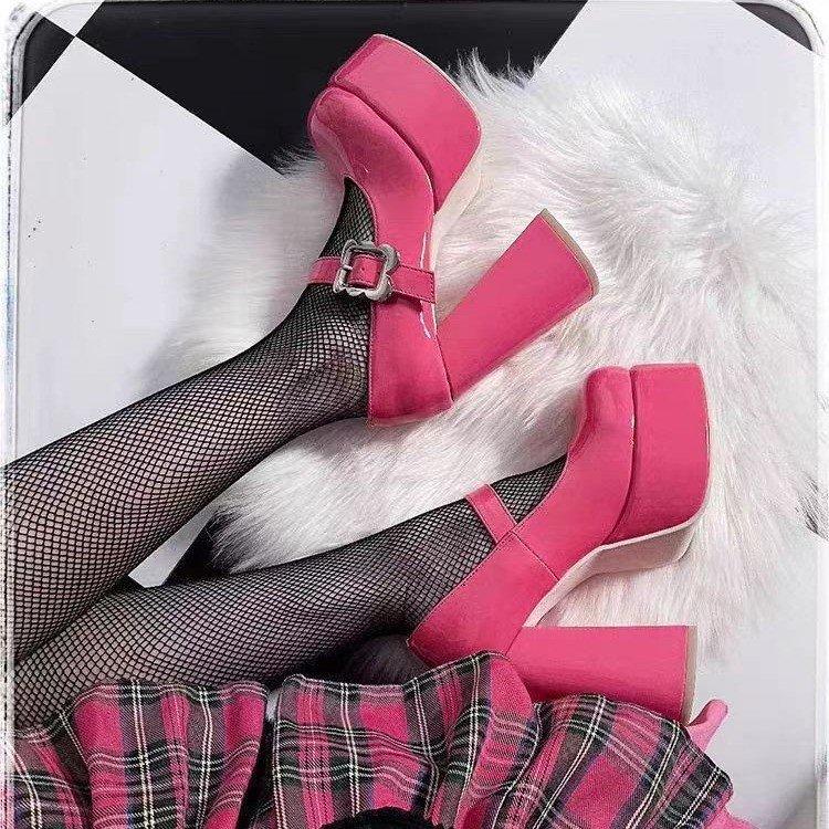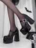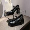 Zapatos Mary Jane 2025 Nuevos Punta Cuadrada Tacón Grueso Flats con Plataforma Impermeable y Tacones Altos Brillantes para Todas las Estaciones