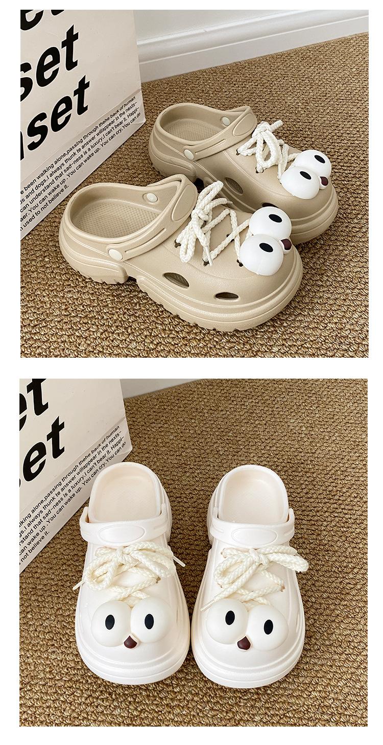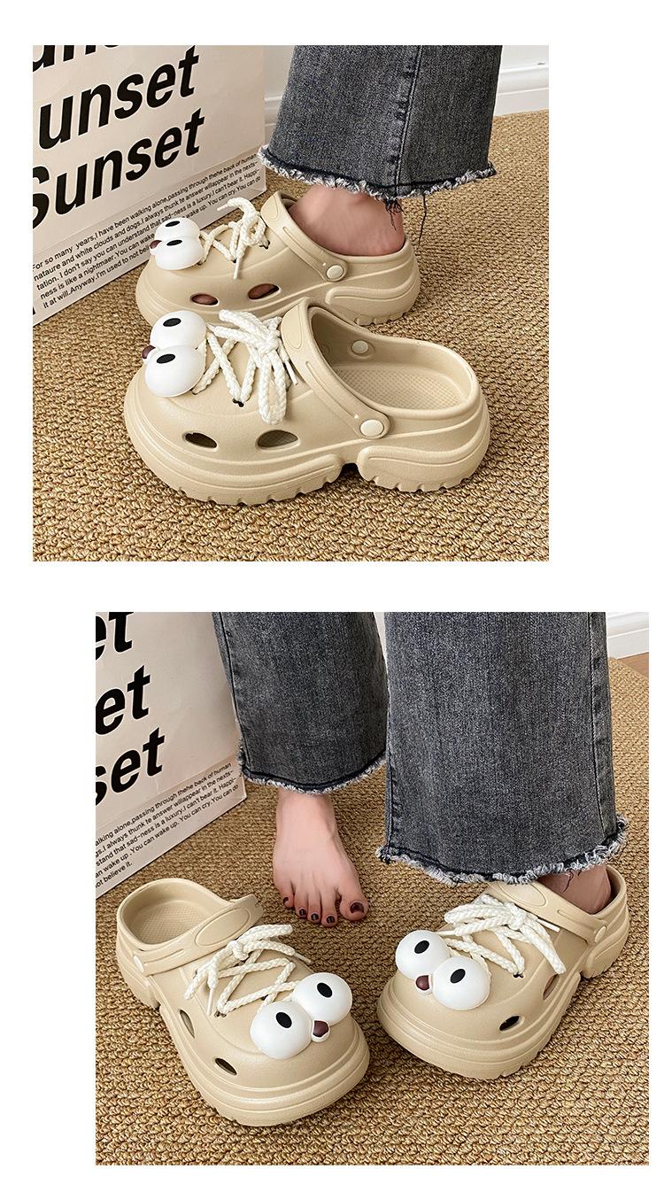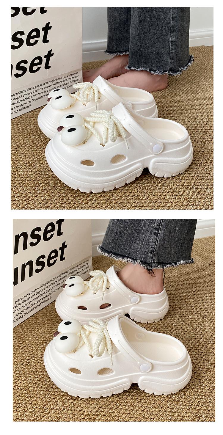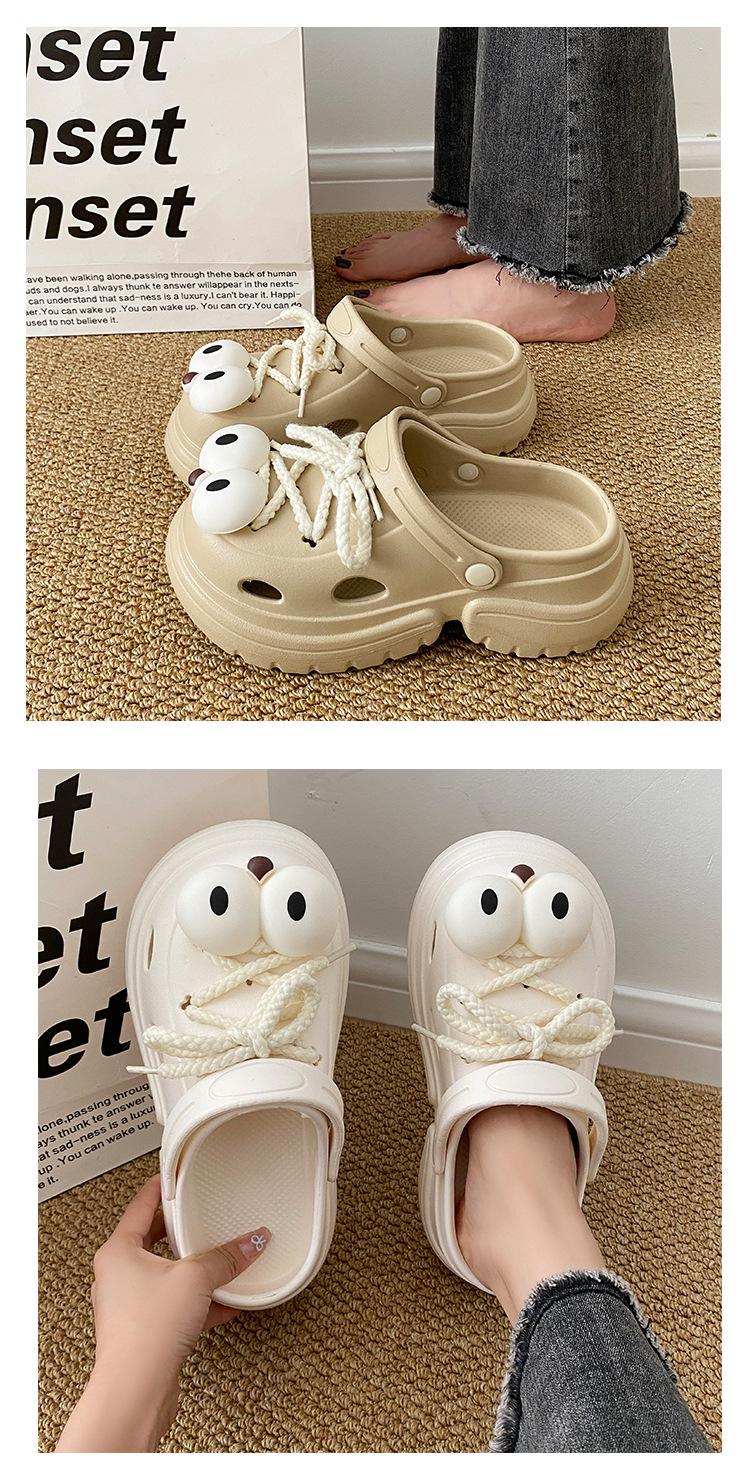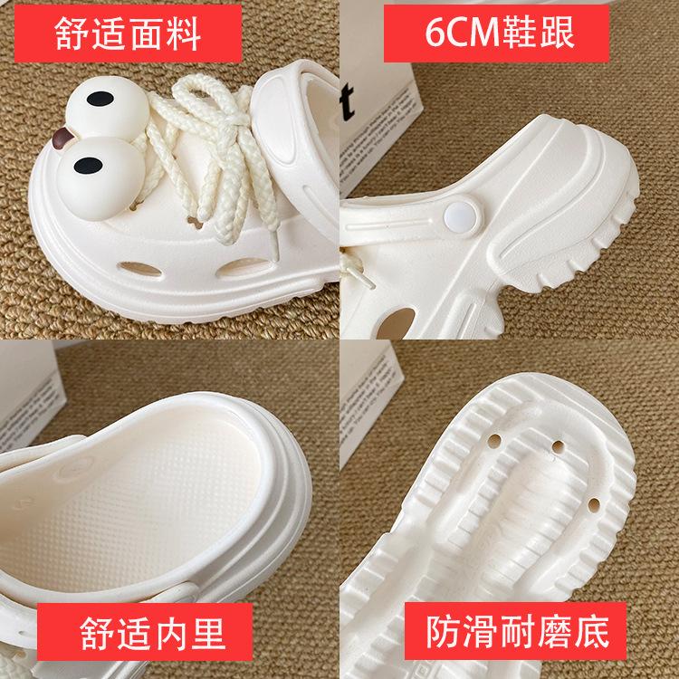 Zapatos de mujer bonitos de suela gruesa con realce y ojos grandes, nuevas zapatillas de verano para exteriores, zapatos de playa con cordones y agujeros