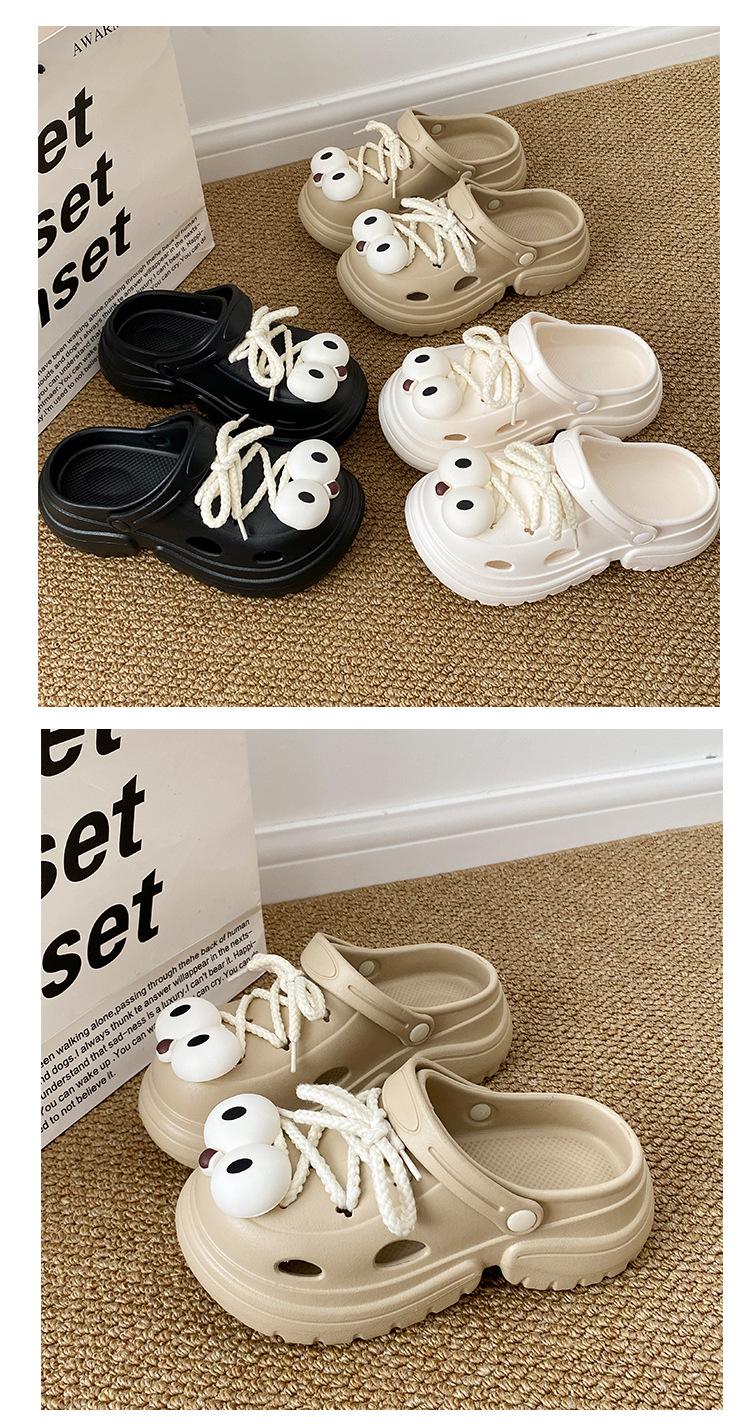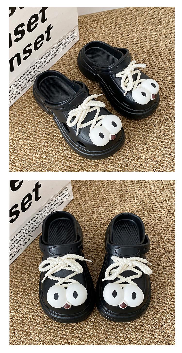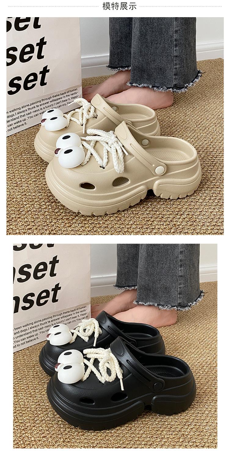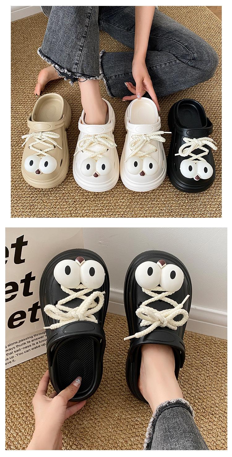 Zapatos de mujer bonitos de suela gruesa con realce y ojos grandes, nuevas zapatillas de verano para exteriores, zapatos de playa con cordones y agujeros