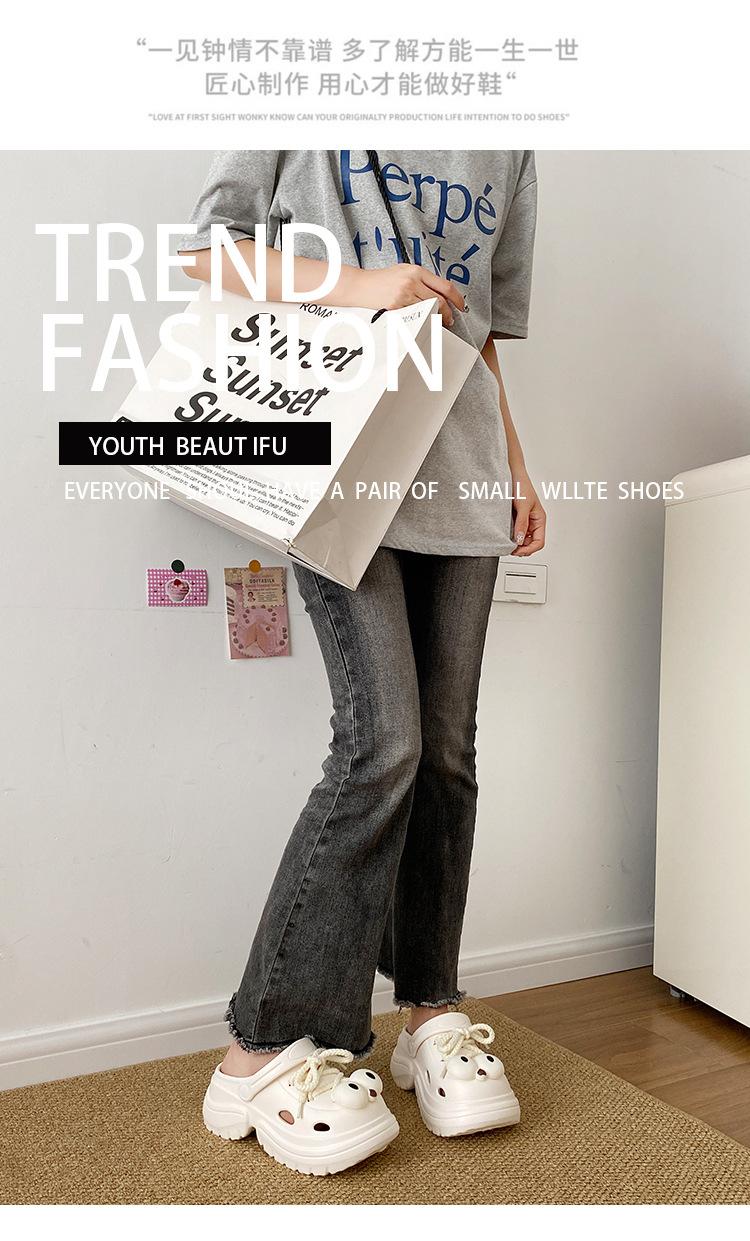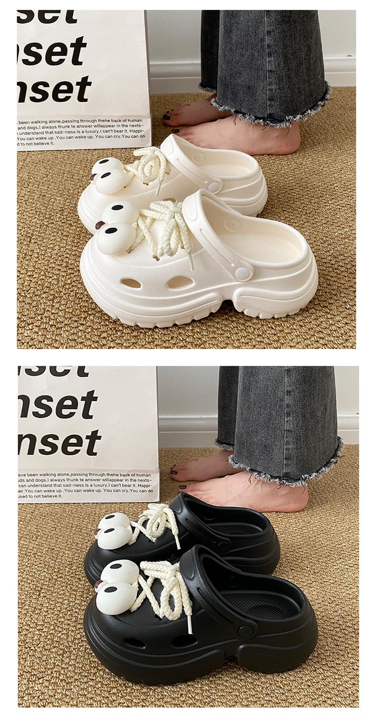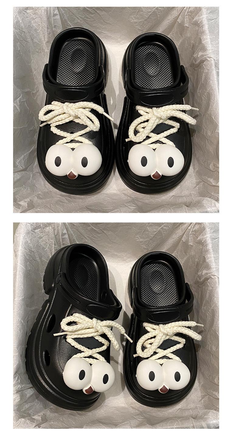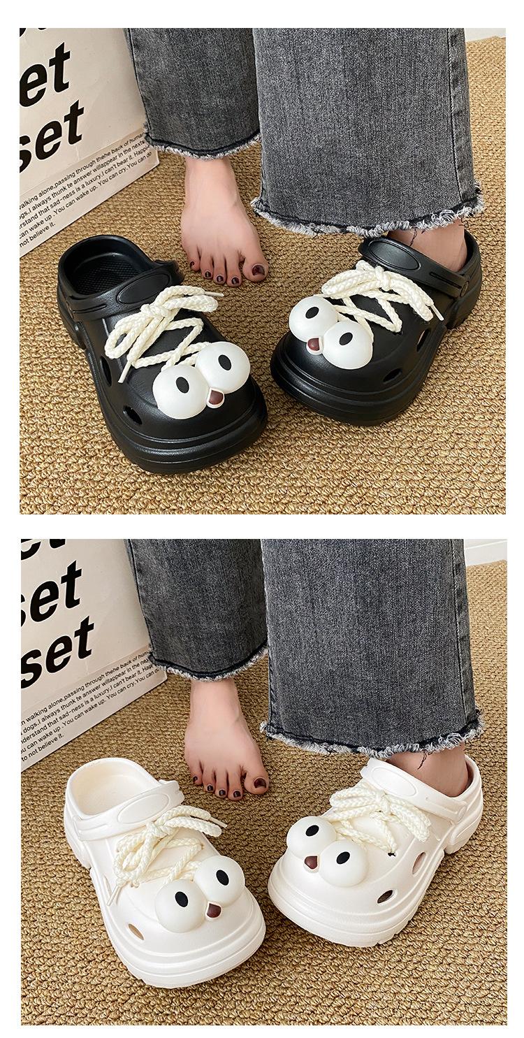 Zapatos de mujer bonitos de suela gruesa con realce y ojos grandes, nuevas zapatillas de verano para exteriores, zapatos de playa con cordones y agujeros