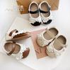Atacado transfronteiriço sapatos de bebê e criança pequena sola macia sapatos PU femininos não caem sapatos de princesa macios com laço sola macia antiderrapante